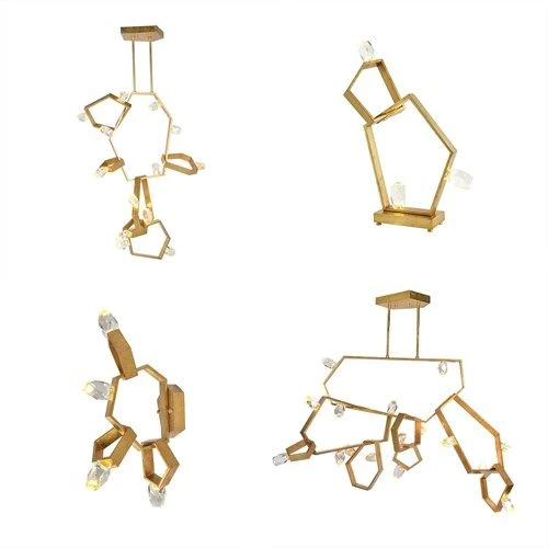 Faceted crystal shapes are illuminated by LED from within to create a stunning effect in our Ashton Sconce. An abstract geometric body is highlighted with a gilded gold leaf finish and pairs perfectly with the cut crystal stones. Add drama to any space with a pair of our Ashton Sconces.
