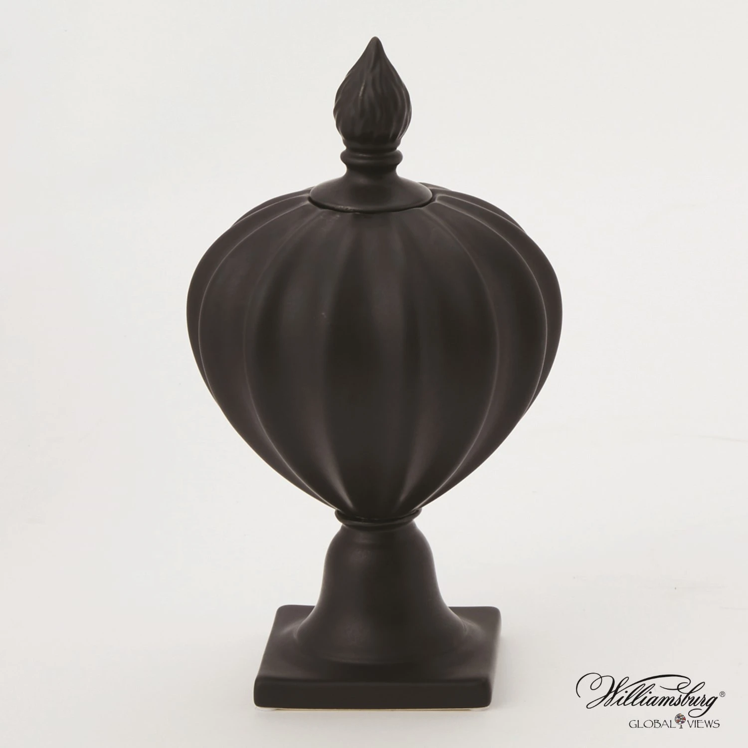The Beaufort collection of ceramic urns was inspired by the fluted urn-shaped finials that crown a green japanned bedstead in the Governor’s Palace in Colonial Williamsburg’s Historic Area. The cornice and finials for the bed are based on a Hepplewhite design for a “Venetian” bedstead.