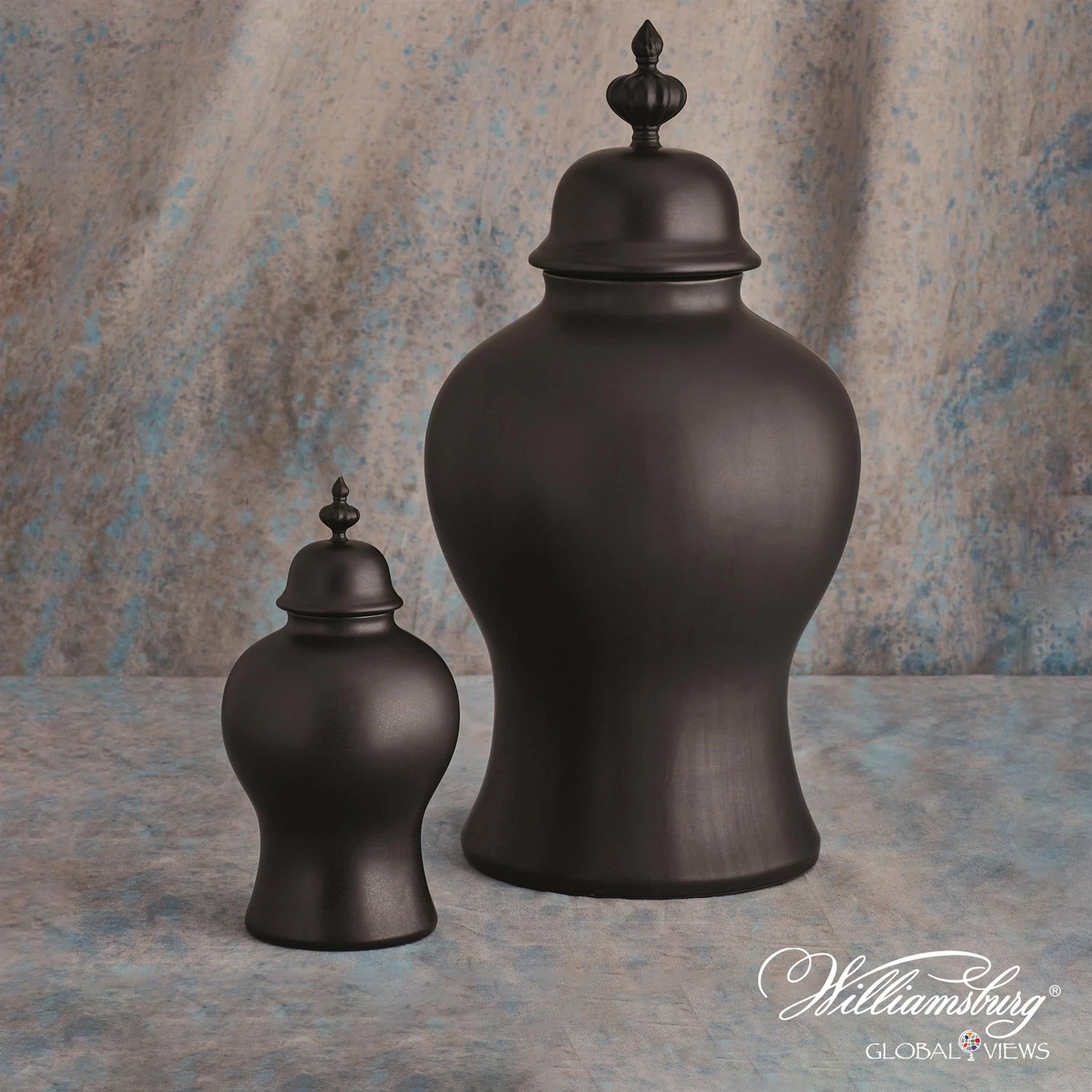The Beaufort collection of ceramic urns was inspired by the fluted urn-shaped finials that crown a green japanned bedstead in the Governor’s Palace in Colonial Williamsburg’s Historic Area. The cornice and finials for the bed are based on a Hepplewhite design for a “Venetian” bedstead.
