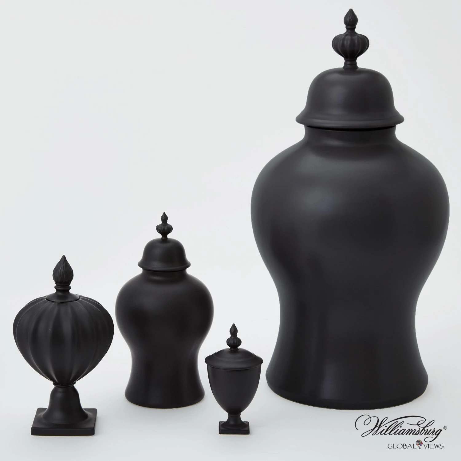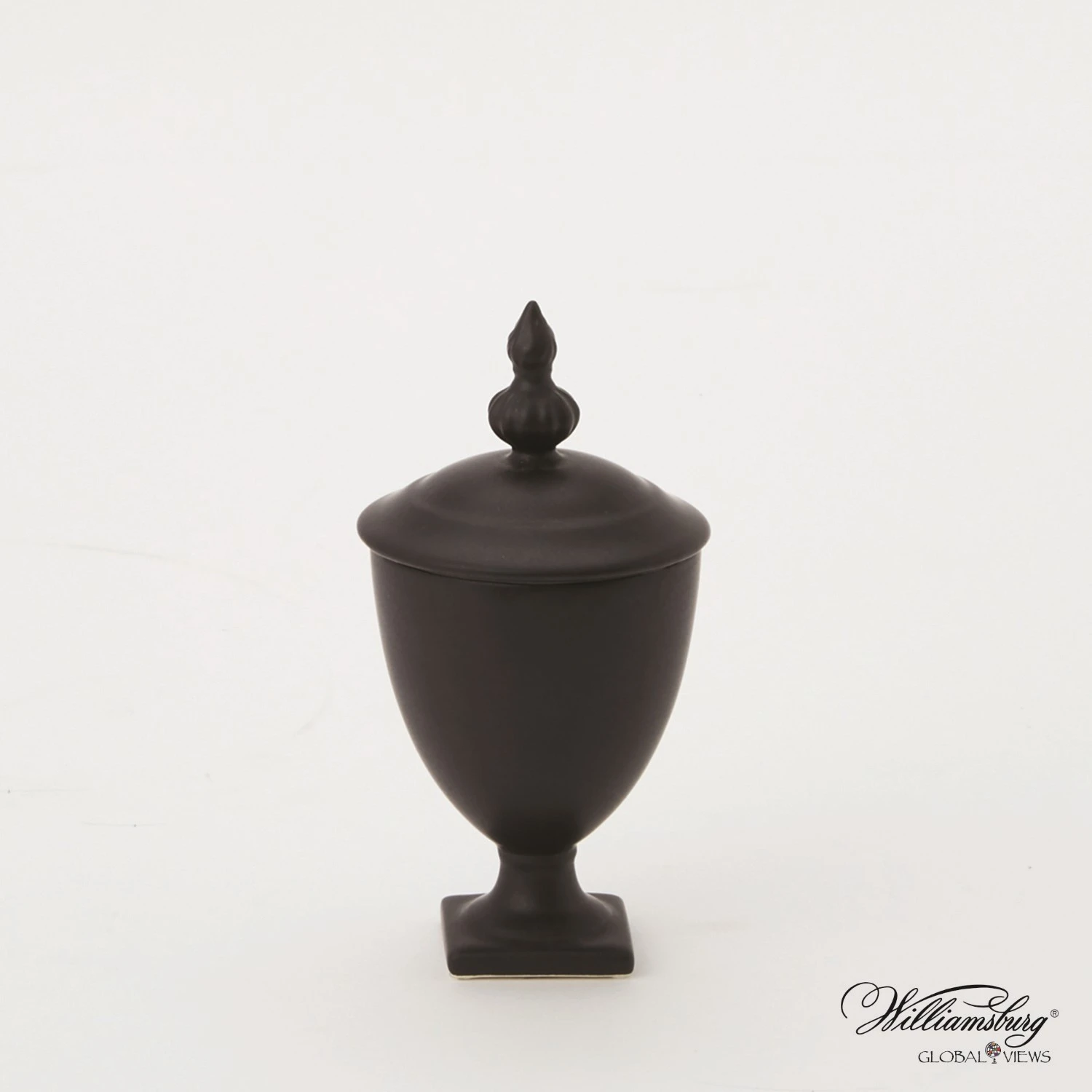 The Beaufort collection of ceramic urns was inspired by the fluted urn-shaped finials that crown a green japanned bedstead in the Governor’s Palace in Colonial Williamsburg’s Historic Area. The cornice and finials for the bed are based on a Hepplewhite design for a “Venetian” bedstead.