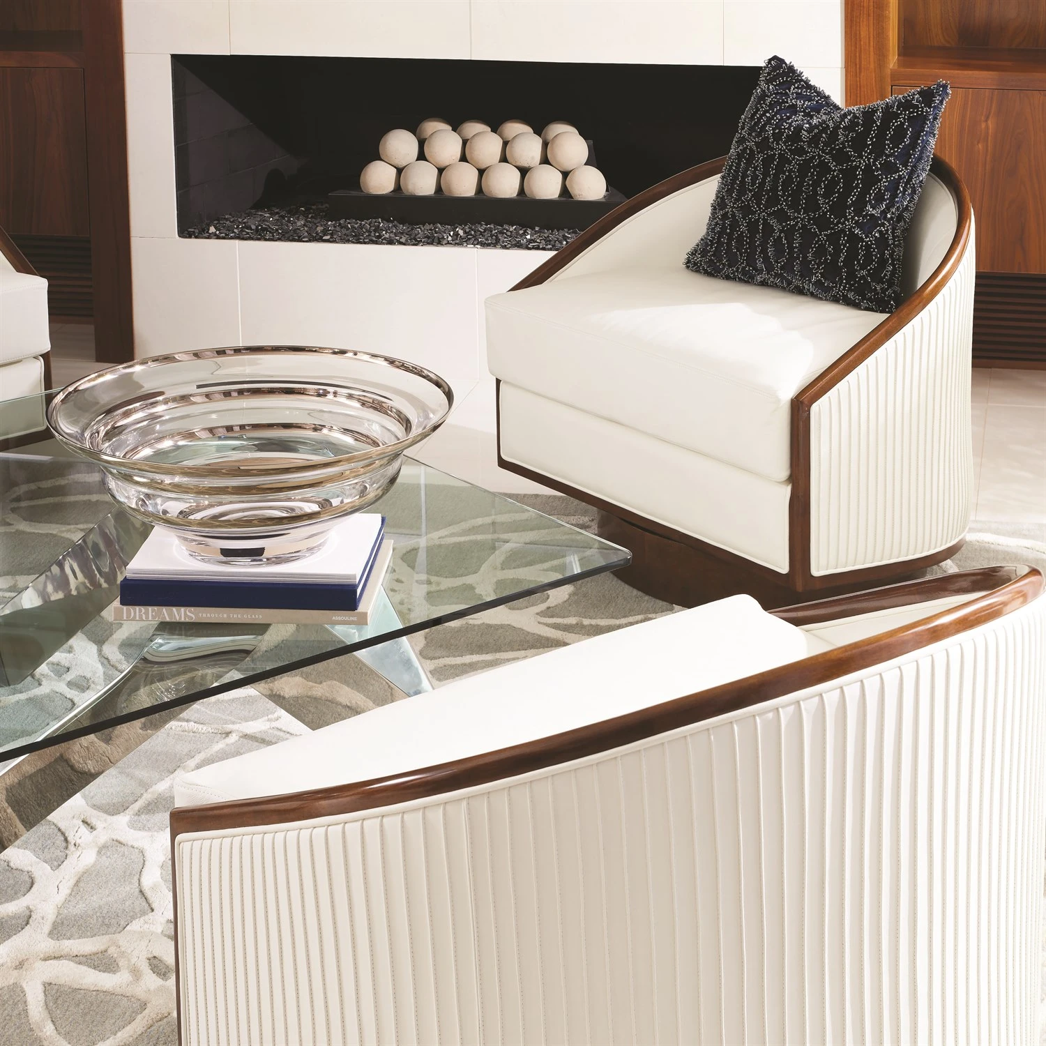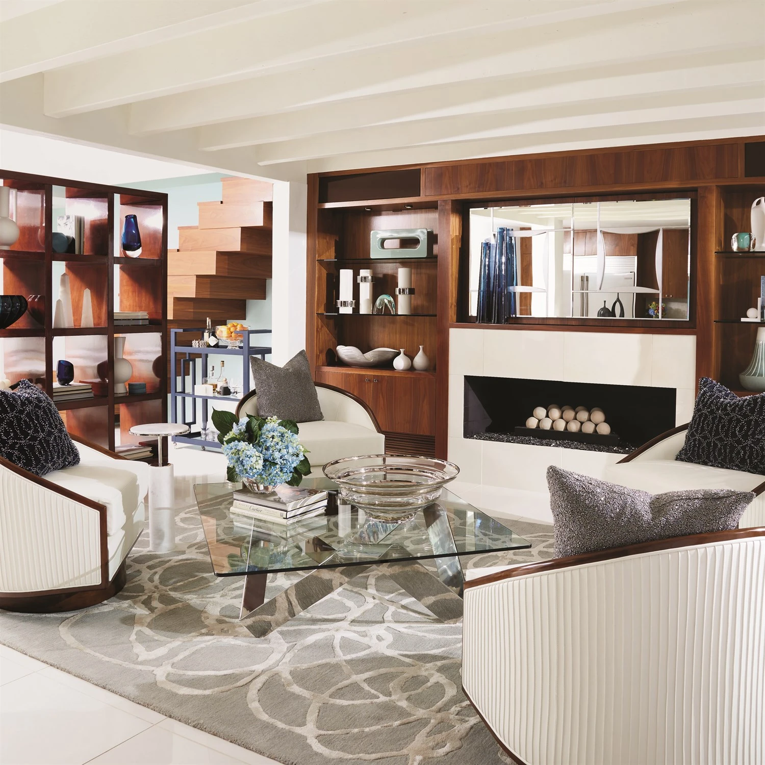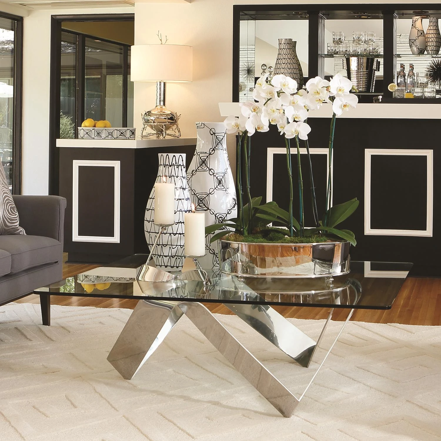 Modern and sculptural this bent stainless steel base is highlighted by the rounded square glass top.
