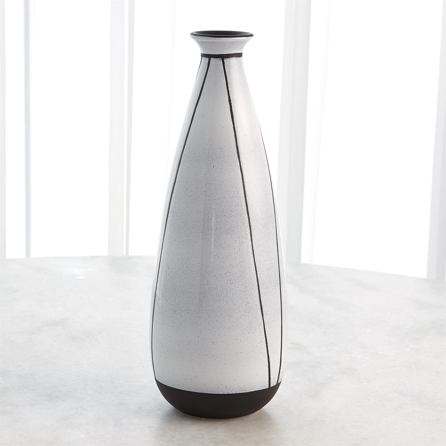 Made of Italian slip cast ceramic, the Black/White Linear Bottles are hand scribed with painted decoration.
