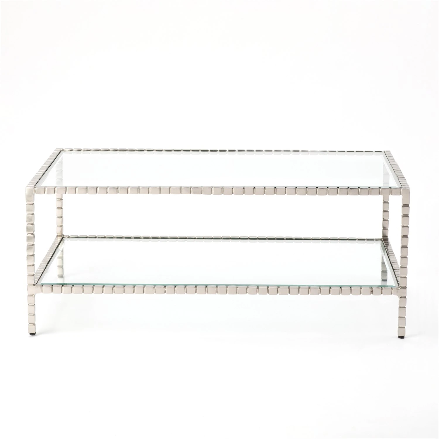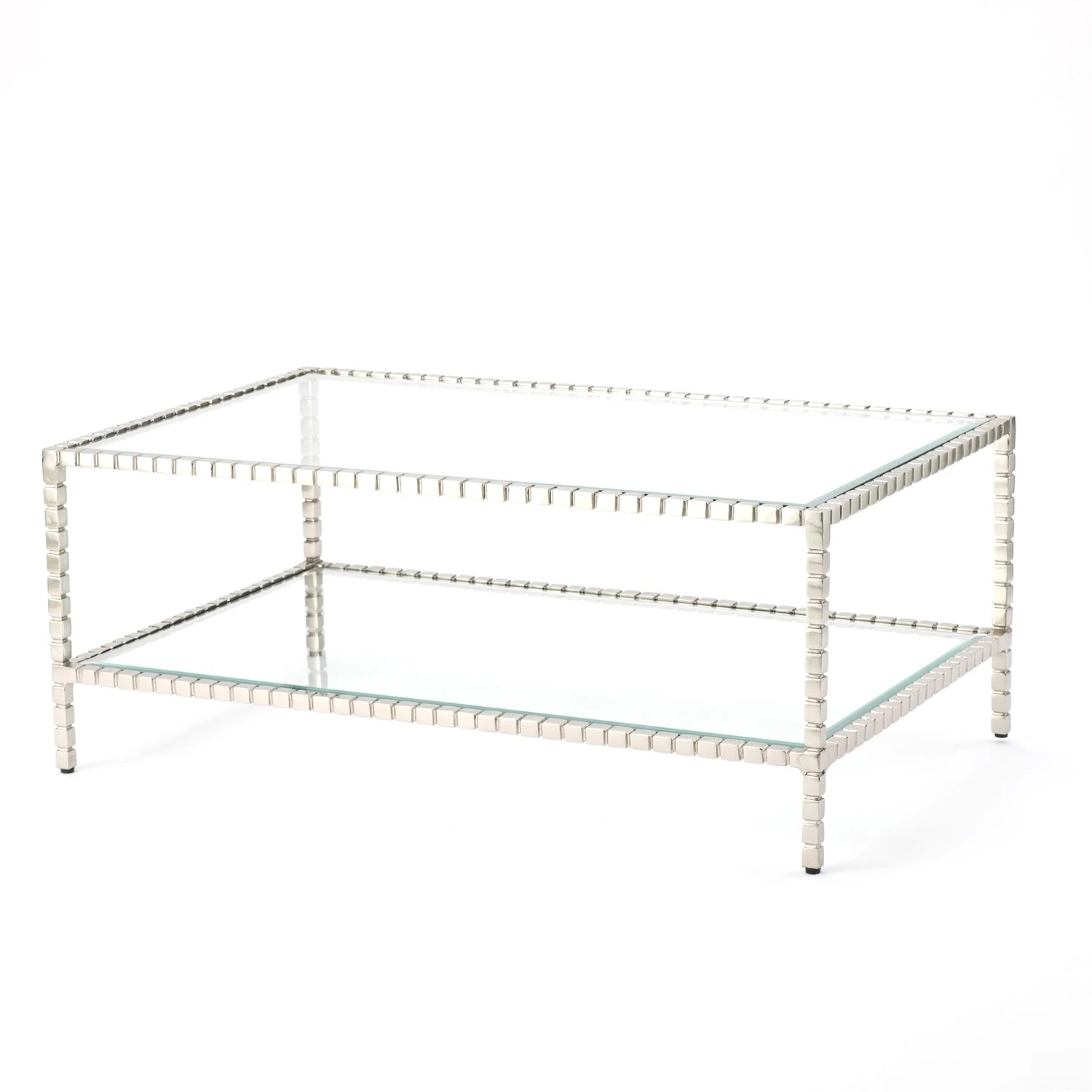 The Cube Collection is a perennial favorite. It can be a chameleon and complement traditional, transitional and contemporary room settings. Finished in polished nickel the shadows created from the reveals between the cubist forms brings life to each piece in the collection. Available as a side table, console, coffee table and matching mirror. Each piece sold separately.