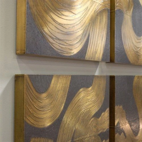 Inspired by natural water movements, The Currents Wall Panels are brass clad on wooden sub-structure. Panels can be arranged in multiple configurations.