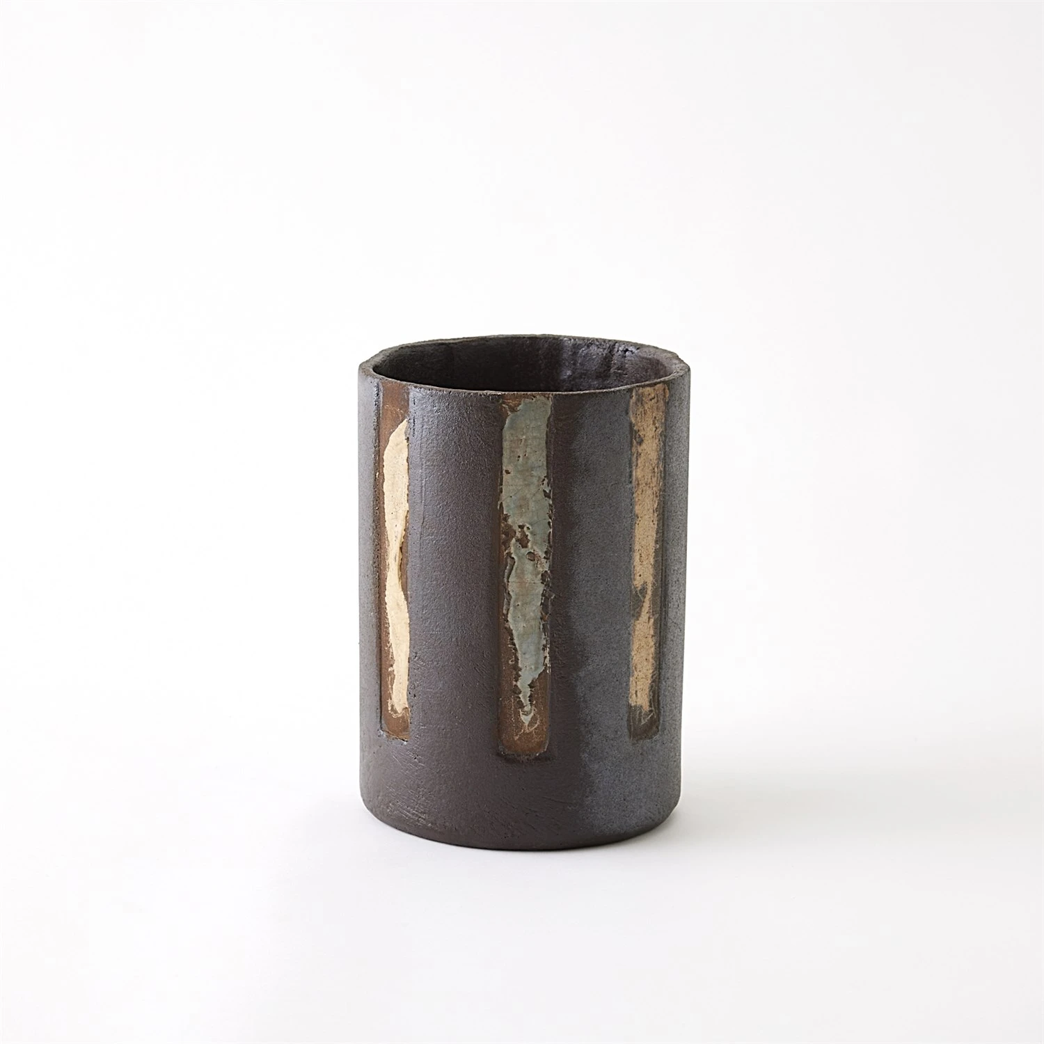 The Digit Vases and Bowl are exquisite examples of handcrafted Portuguese ceramics, created using an ancient Japanese firing method known as Raku. The journey begins with skilled artisans hand-forming the clay into the desired shapes for the vases and bowl. The formed clay pieces are fired in a kiln at relatively low temperatures. When the ceramics reach the optimal temperature in the kiln, they are quickly removed while still glowing hot. These red-hot pieces are then placed into a container filled with combustible materials like sawdust, leaves, or paper. This ignition creates a reduced atmosphere within the container. As a result of the rapid cooling and reduction process, the glazes on the ceramics begin to crack and form intricate and often unpredictable patterns on the surface. This crackling effect is one of the hallmark features of the Raku firing process.