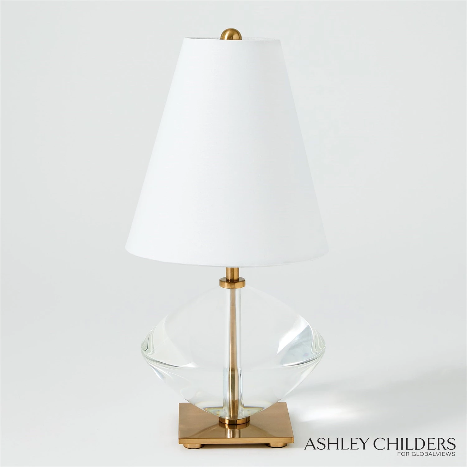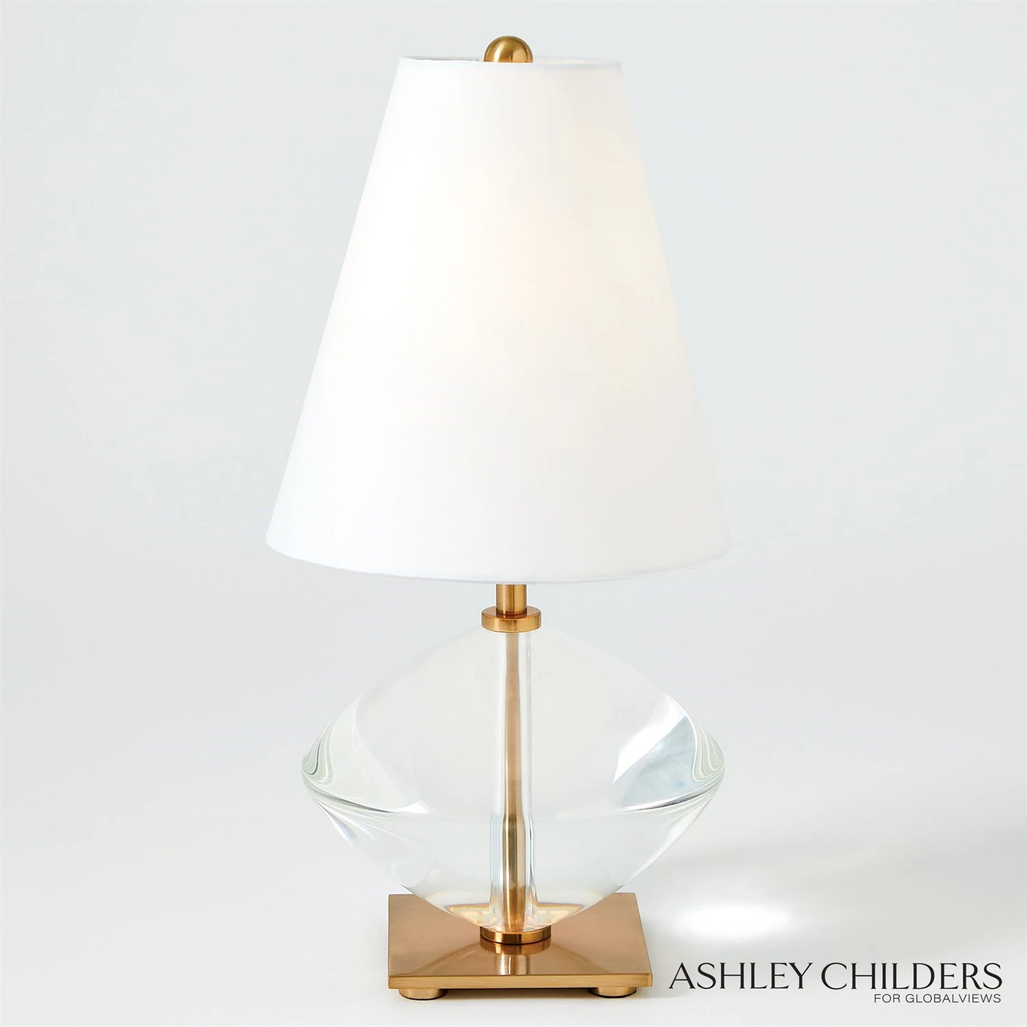 The Dolly Lamp is constructed of crystal and iron with bronze finish. Conical Shade covered in off white cotton.