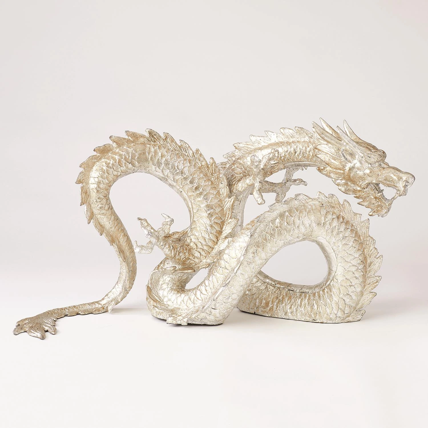 Feeling lucky? Well, when displaying our silver leaf Dragon you definitely should! Based on a classic mythical good luck design, our auspicious companion is made of cast iron with a silver leaf finish and will be a great conversational piece for any room.