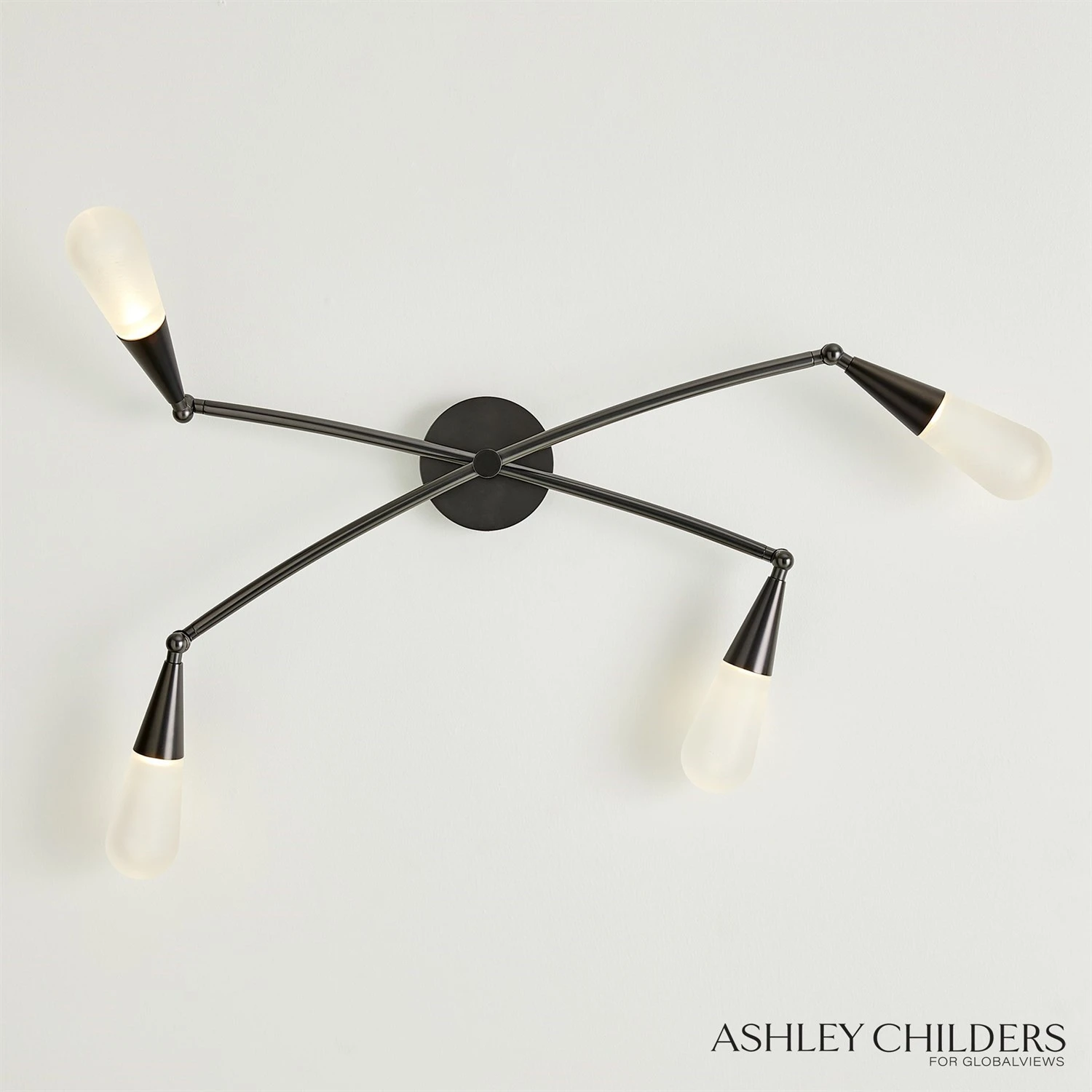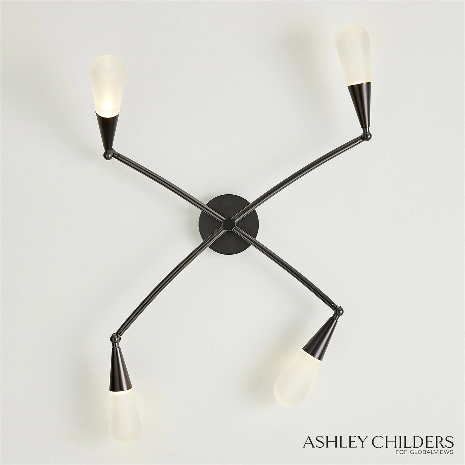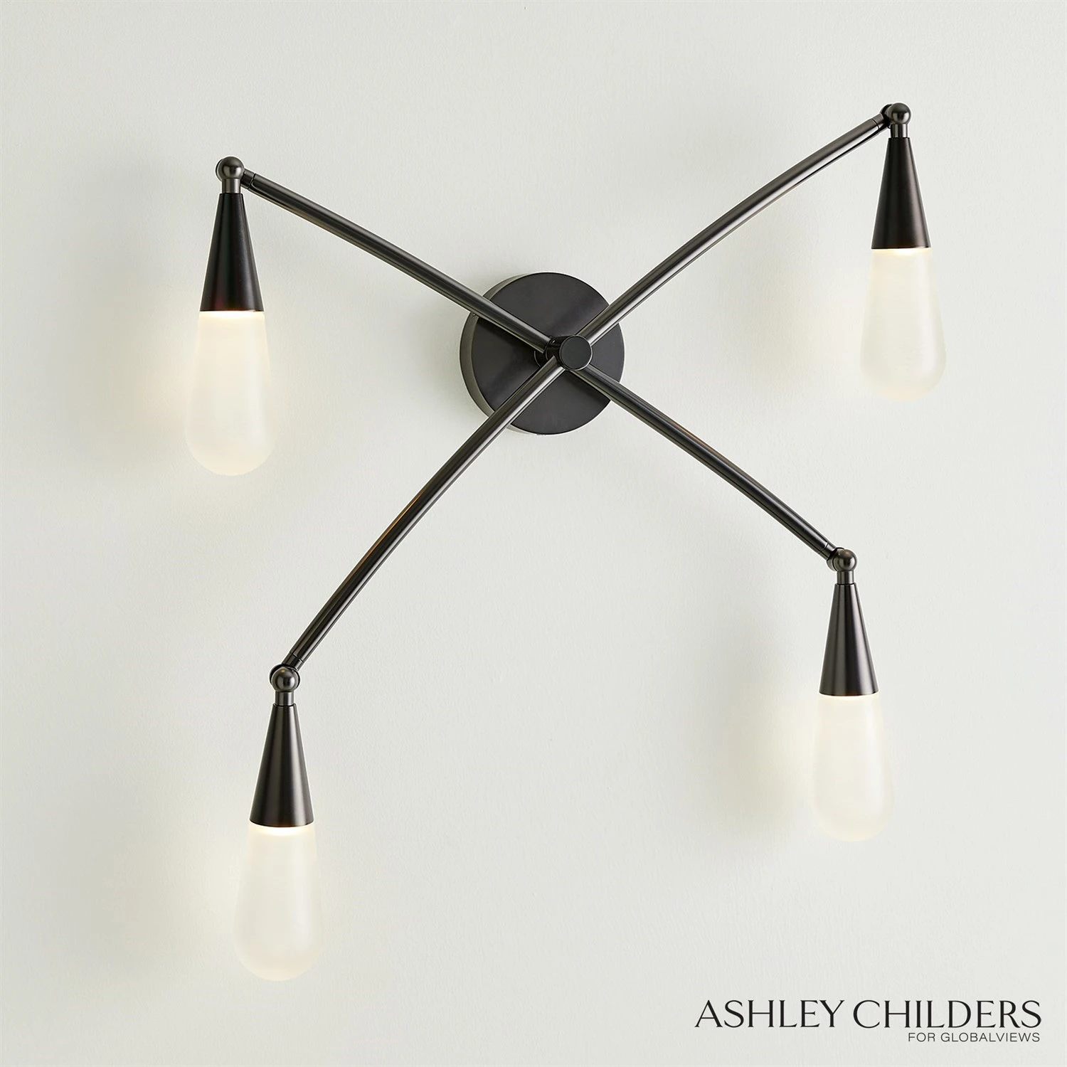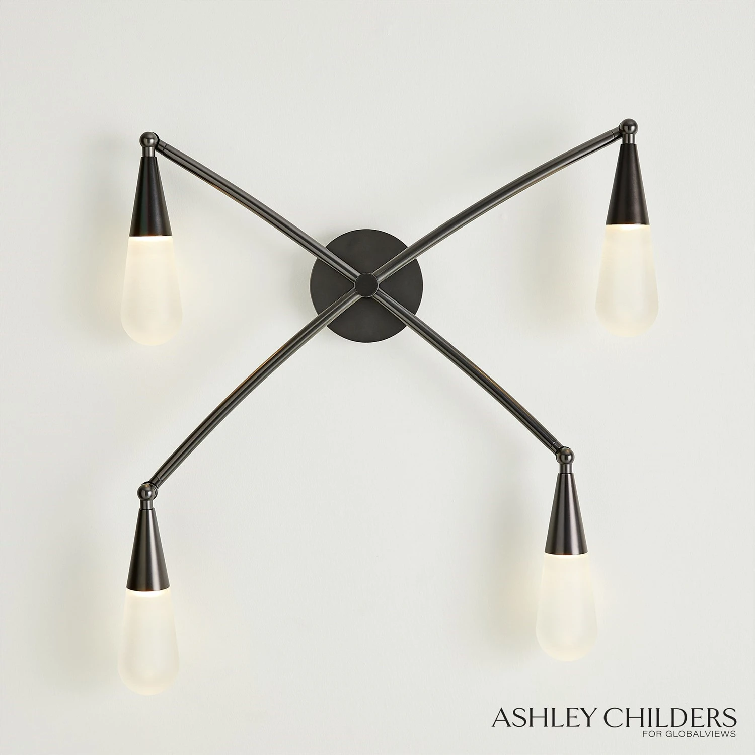 The soft glow of diffused light permeates the milky matte glass of our Droplet Sconce. Modern articulated arms cast in blackened nickel can be moved into various configurations, creating a customized and artful lighting sculpture.