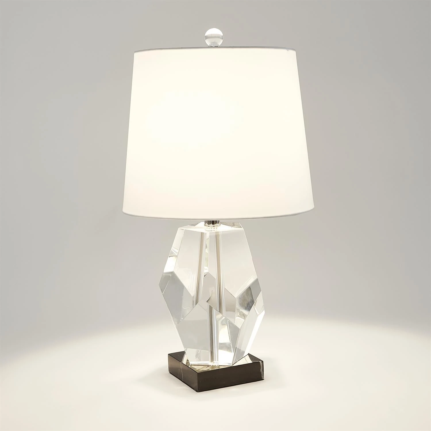 Our Facet Block Lamps are created with stacked up crystal facet cut pieces to create a stunning accent piece and a true statement.