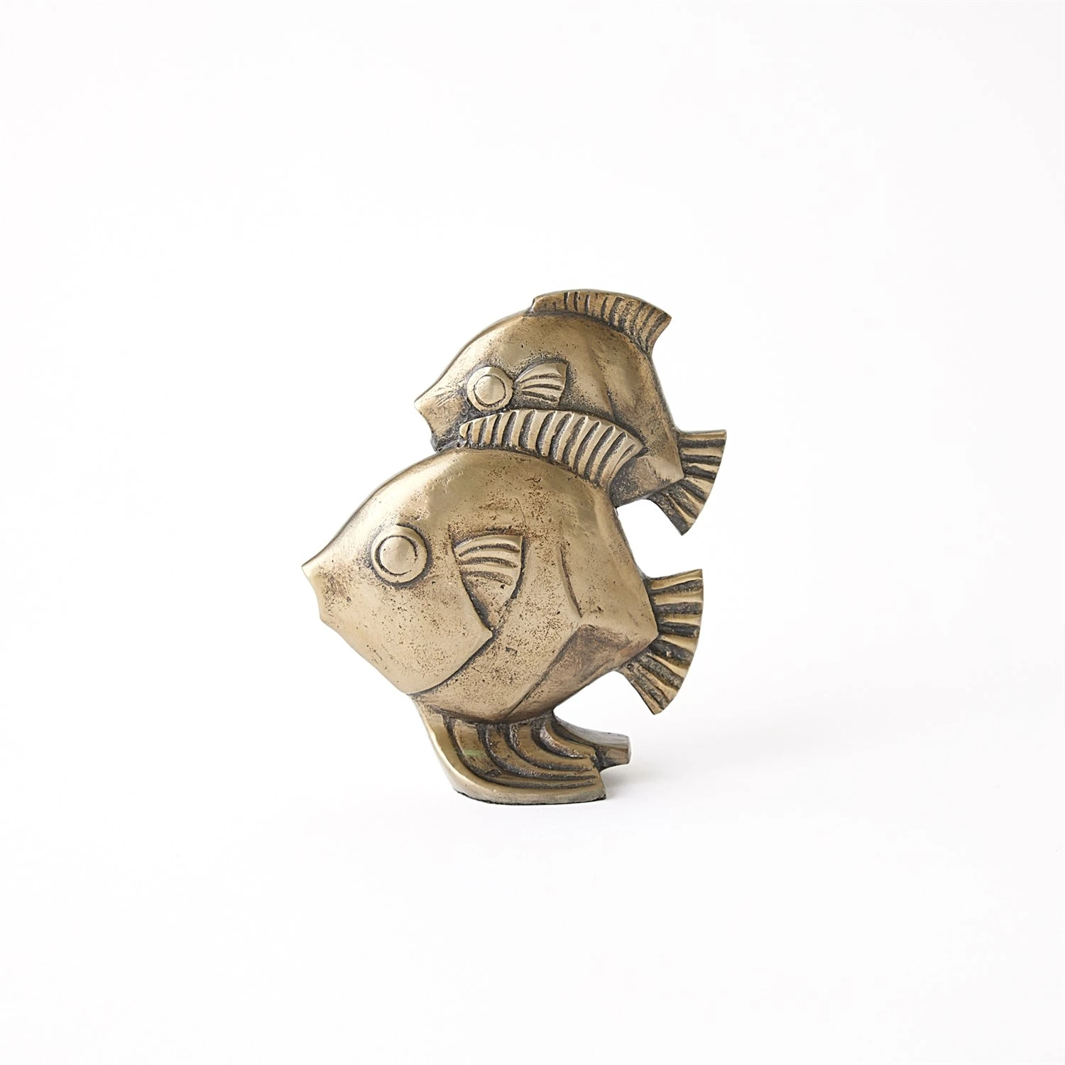 The Fishy Sculpture is a fun, whimsical design handcrafted from cast iron with an antique brass finish.
