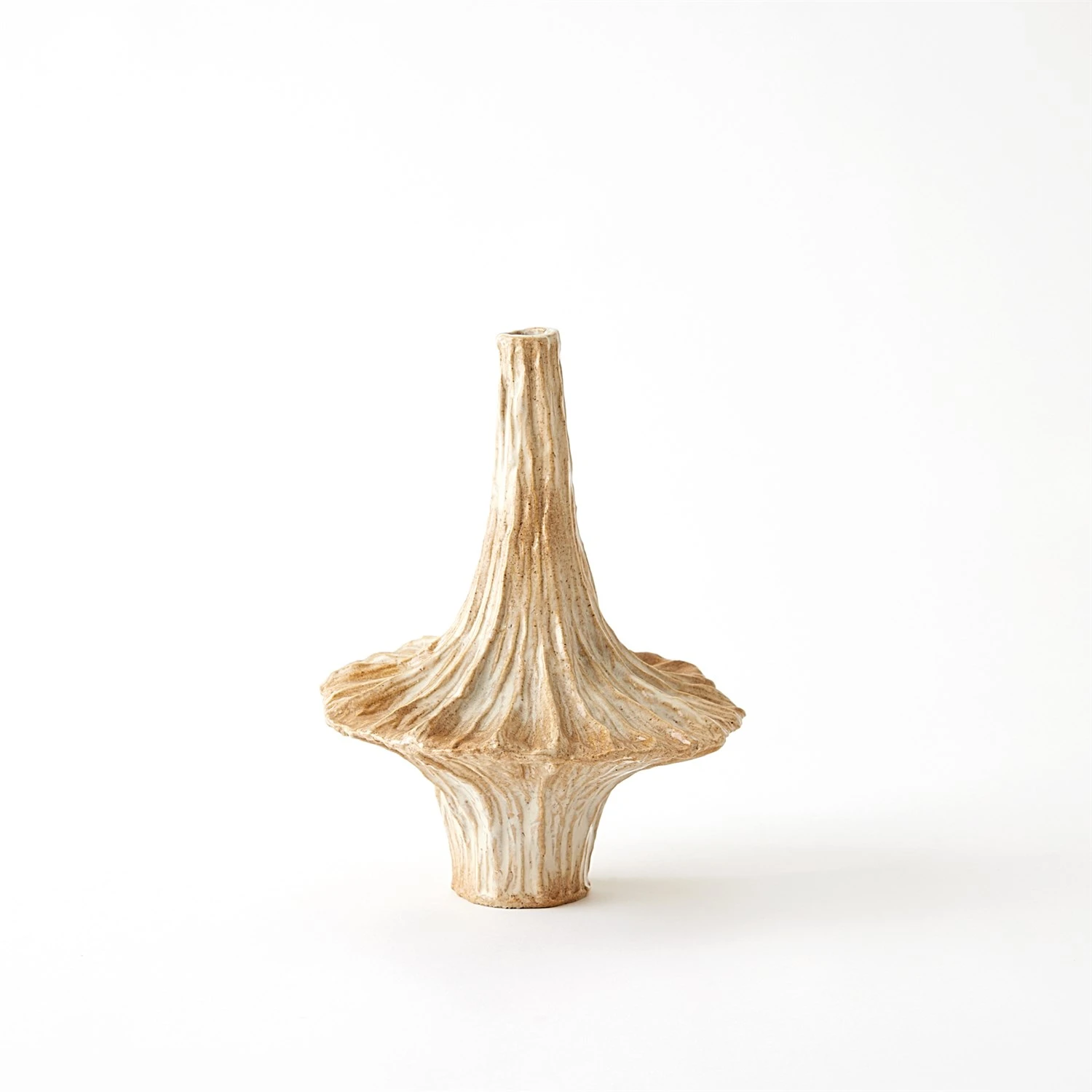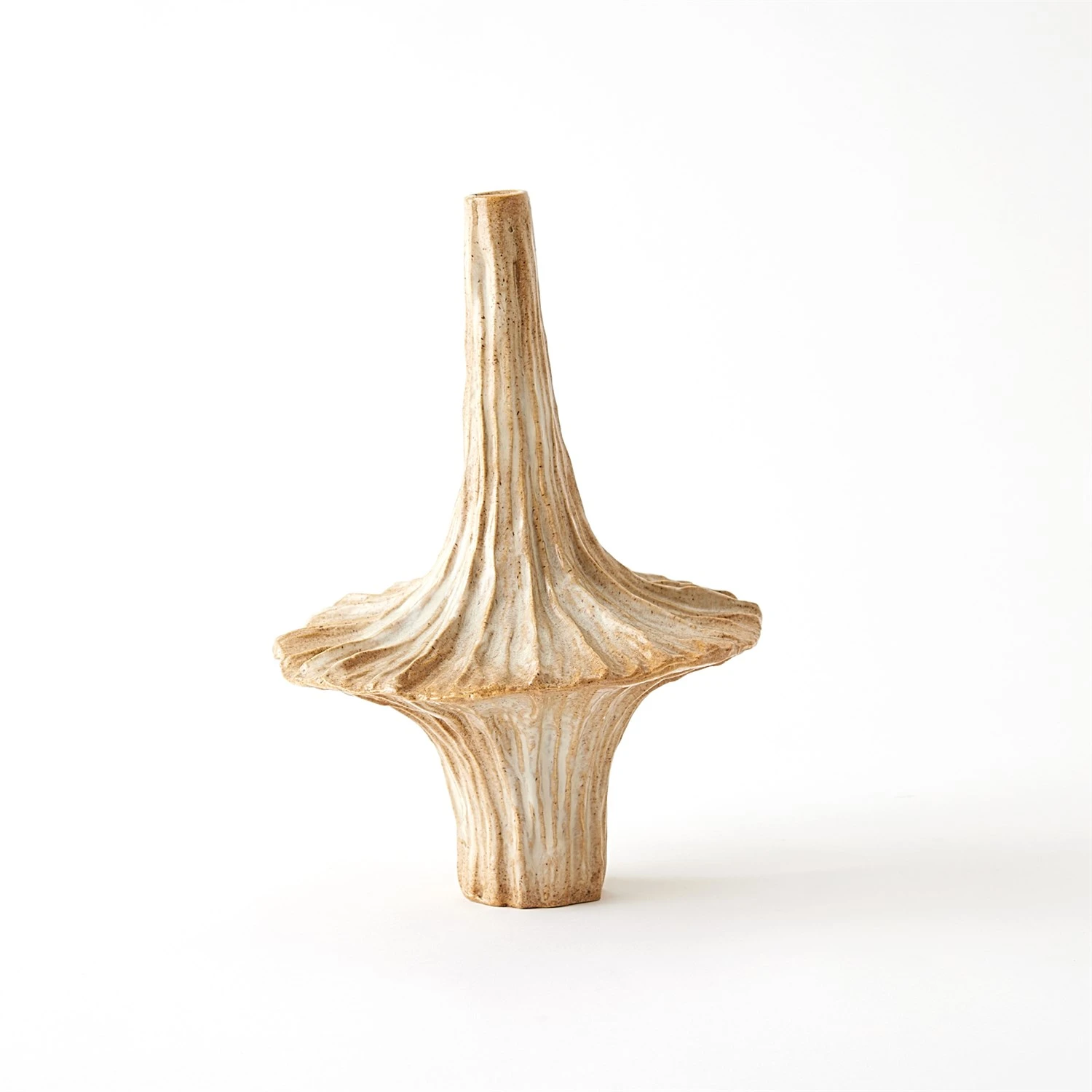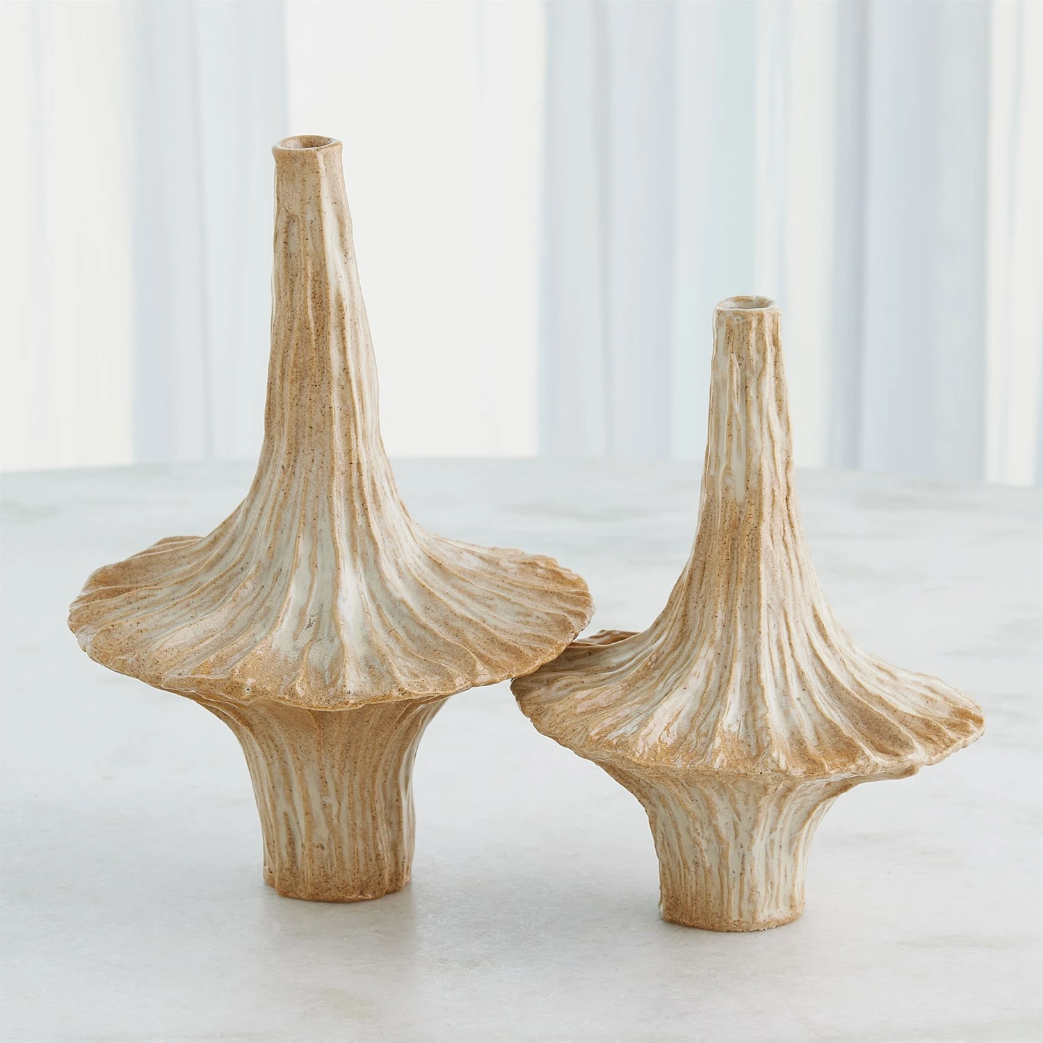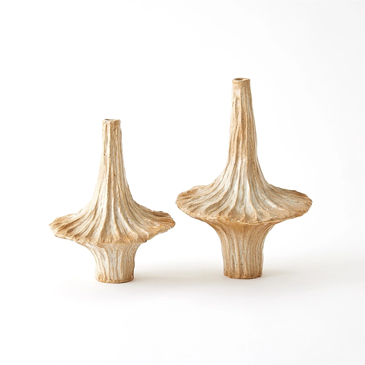 Crafted from slip-molded ceramic, the Gamma Bottles boast an intriguing beige glaze that adds an artistic touch to any space.