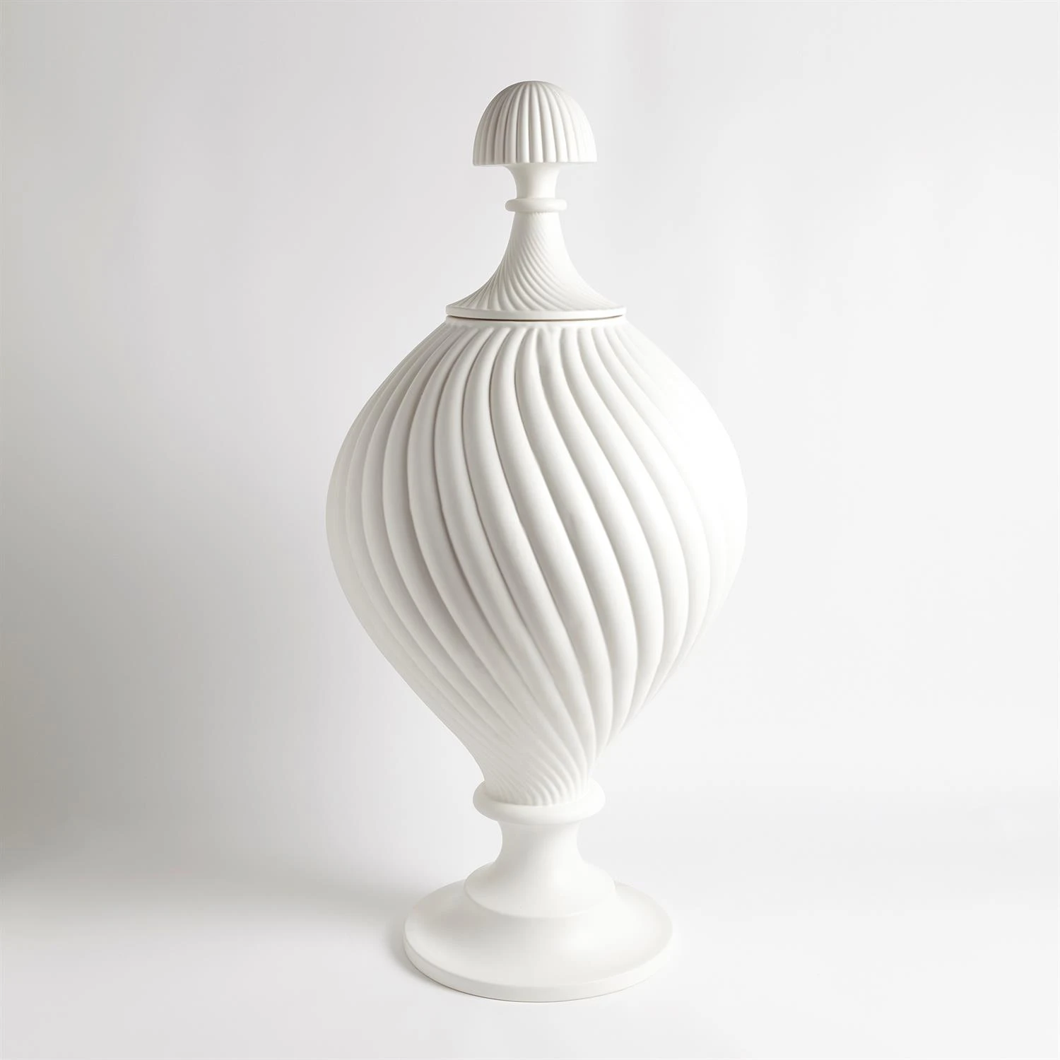 Handcrafted from Portuguese ceramic, our Grande Swirl Jar is sure to make a statement. Large in scale, this stunning jar is available in both matte white and bronze finishes.