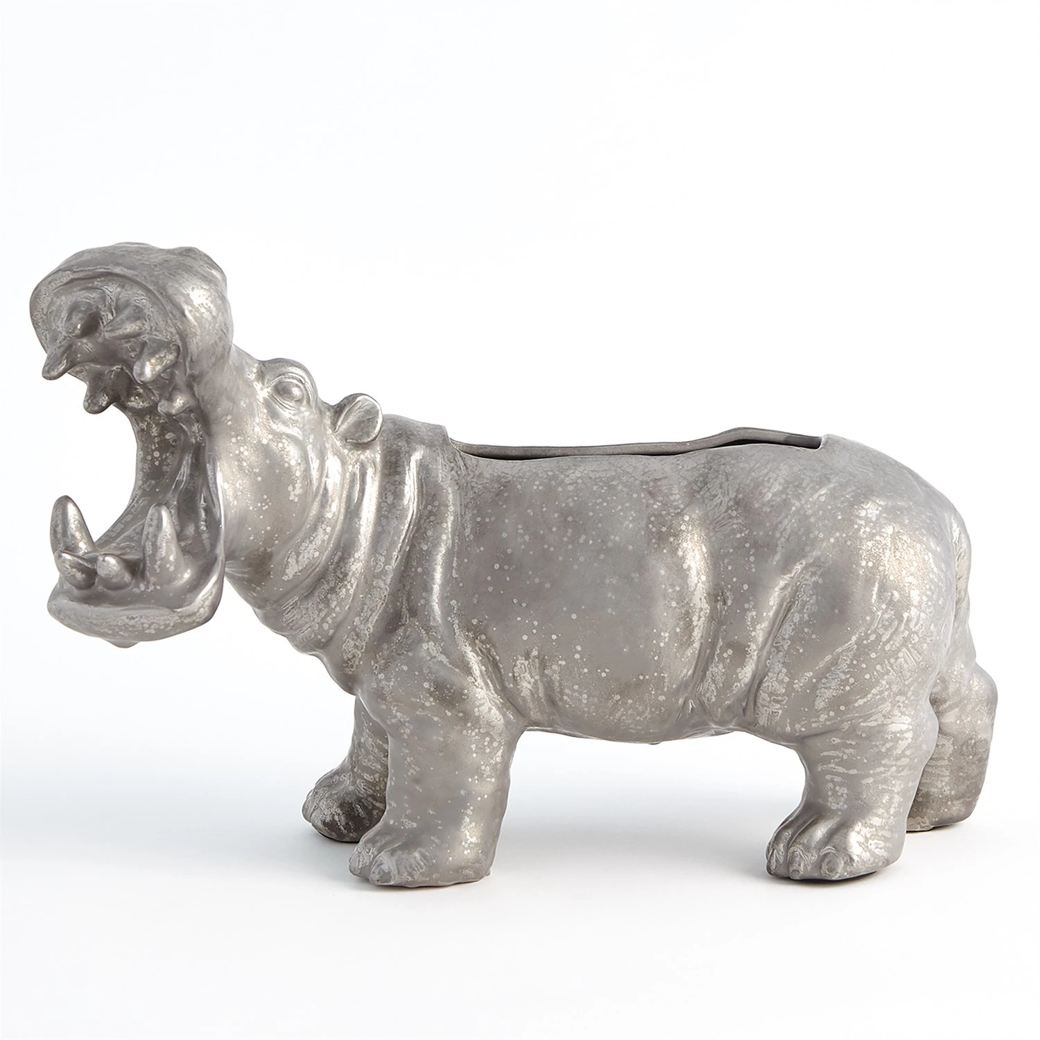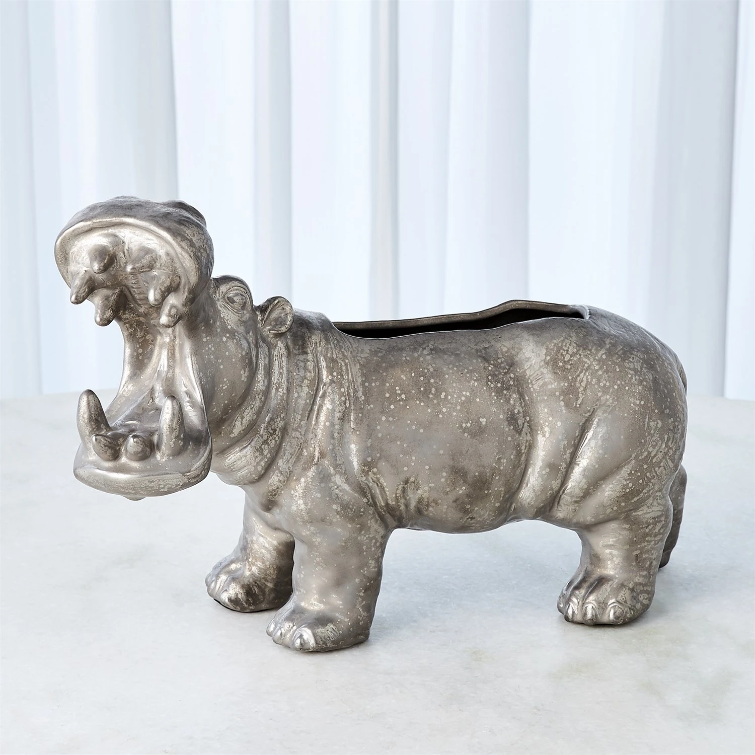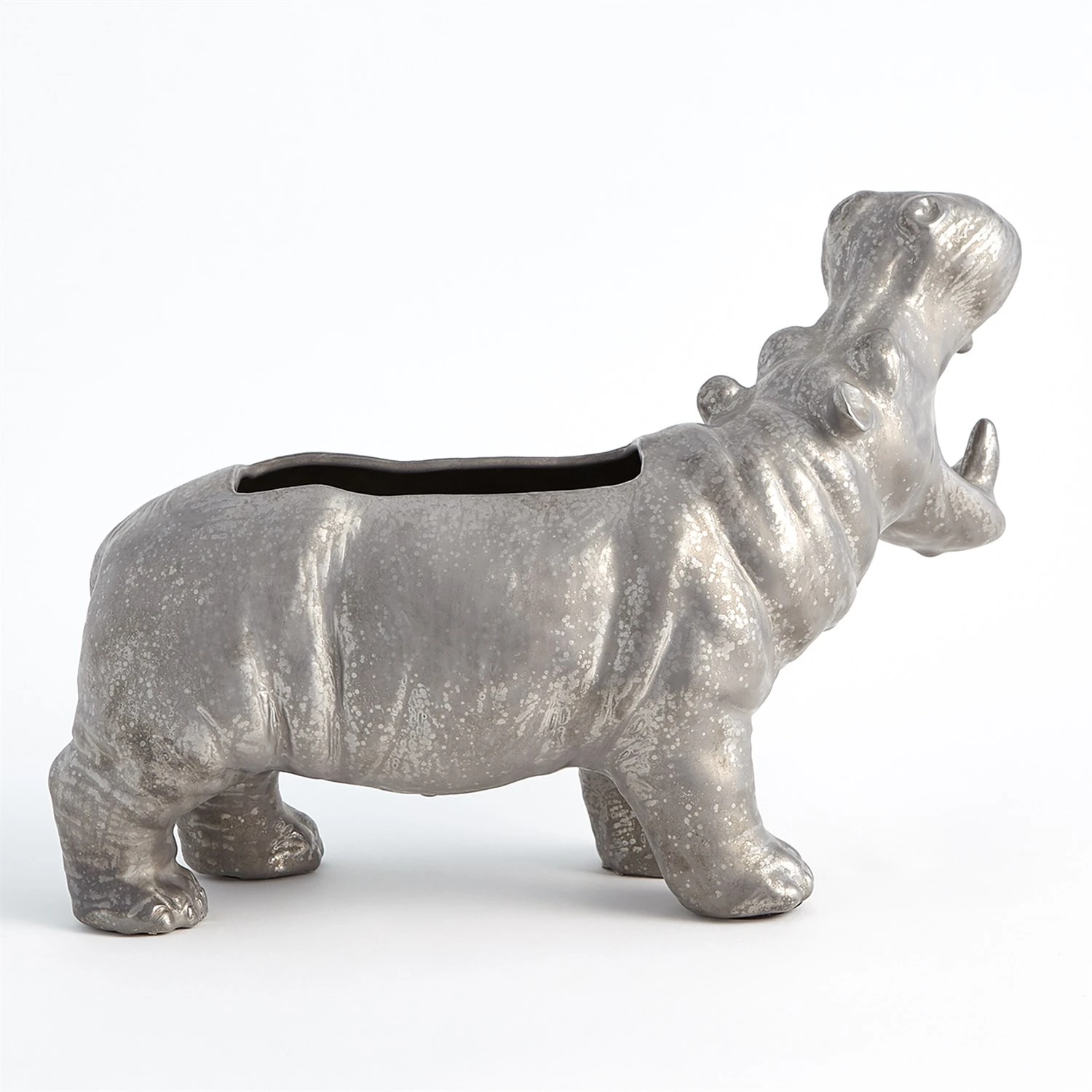 A fun, whimsical ceramic planter with an electroplated silver finish. It’s watertight making it perfect for plants or floral arrangements.