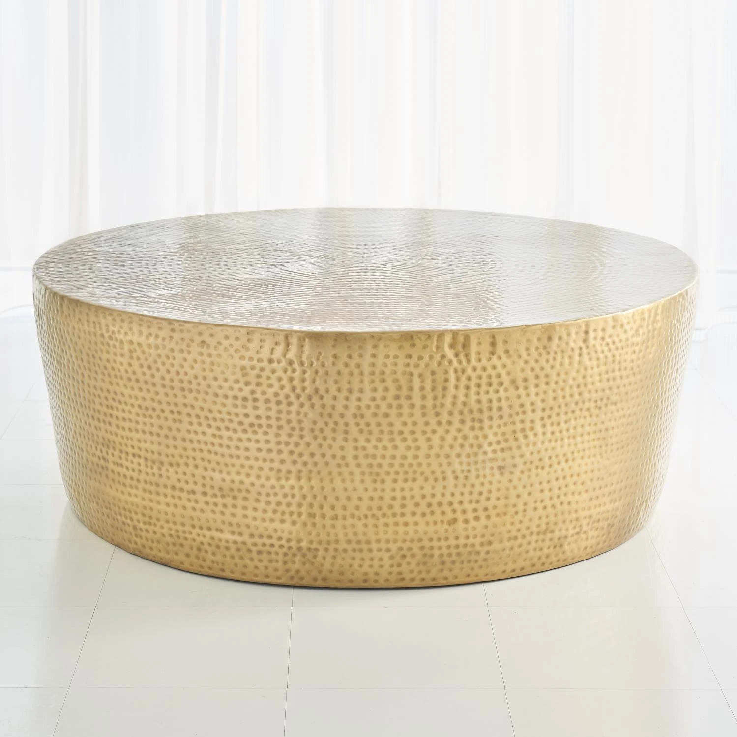 Hand hammering brings out rich detail of the solid brass sheet in the Izmir Cocktail Table.