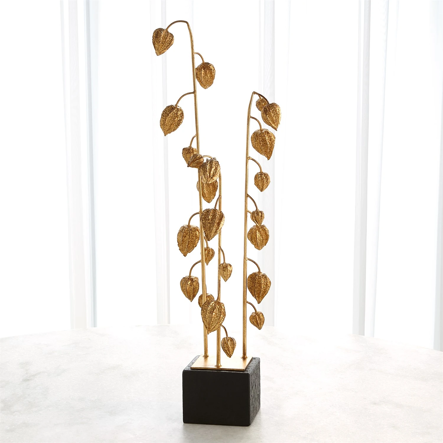 With each iron leaf hand-crafted by an artisan, the Japanese Lanterns have a gold leaf finish and sit upon a black marble base.