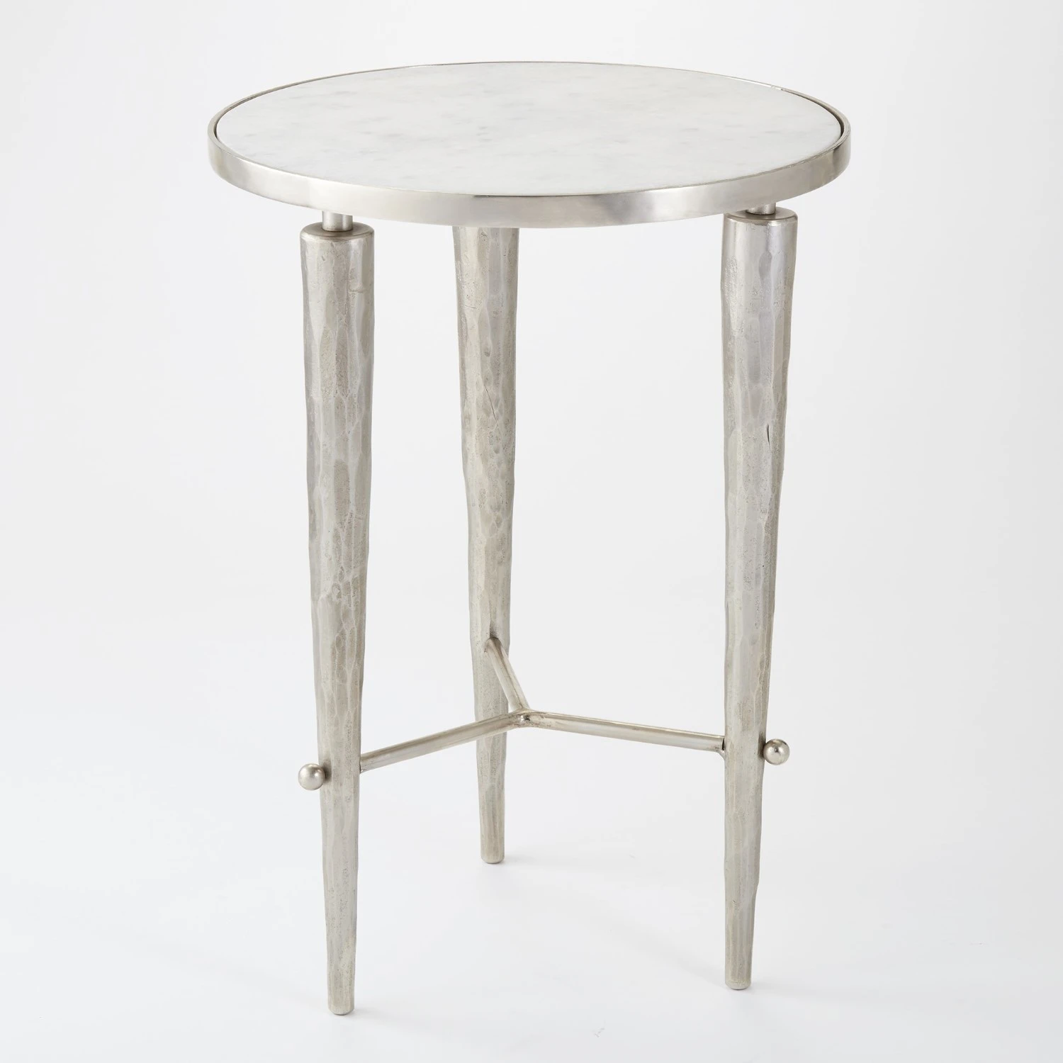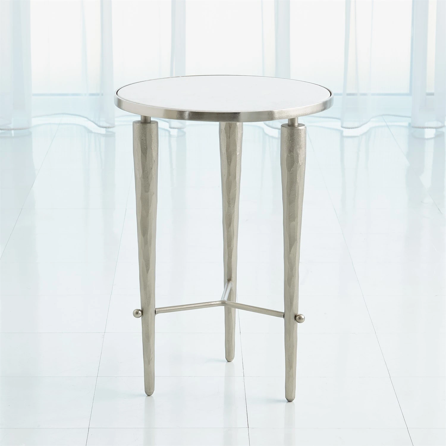 A graceful accent table perched on tapered legs, the Jasper table’s clean lines and simplicity speak to its sophisticated styling. White marble top. Also available in Brass finish.