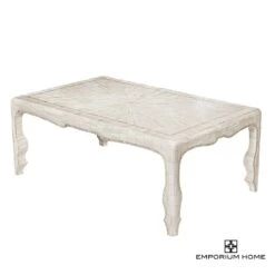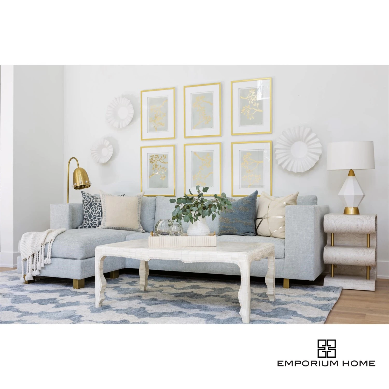 The graceful lines of our Leila Cocktail Table were designed to bring a feminine essence to any space. Hand pieced bone inlay with mother of pearl details are the perfect complement to an already alluring shape.