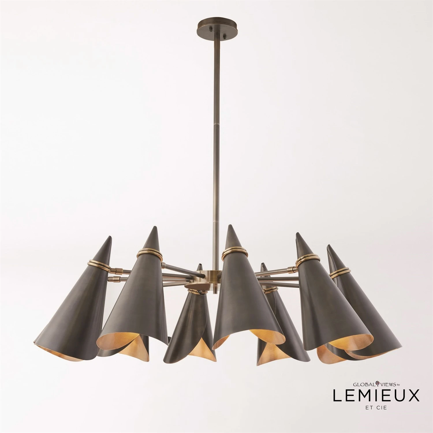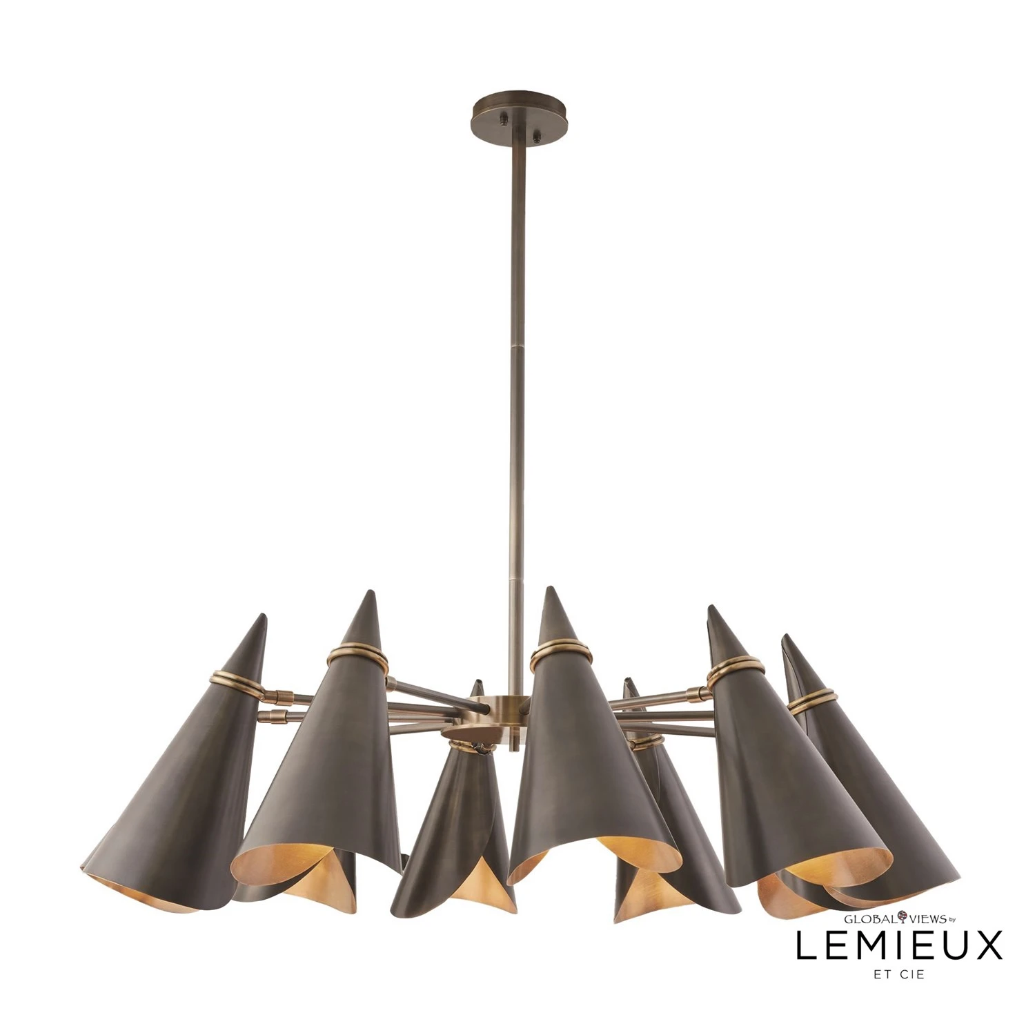 The Meudon Chandelier is the perfect combination of classic European Midcentury inspiration with updated form and finish. The unique silouette of this black and bronze lamp will add dimension and interest to any surface.