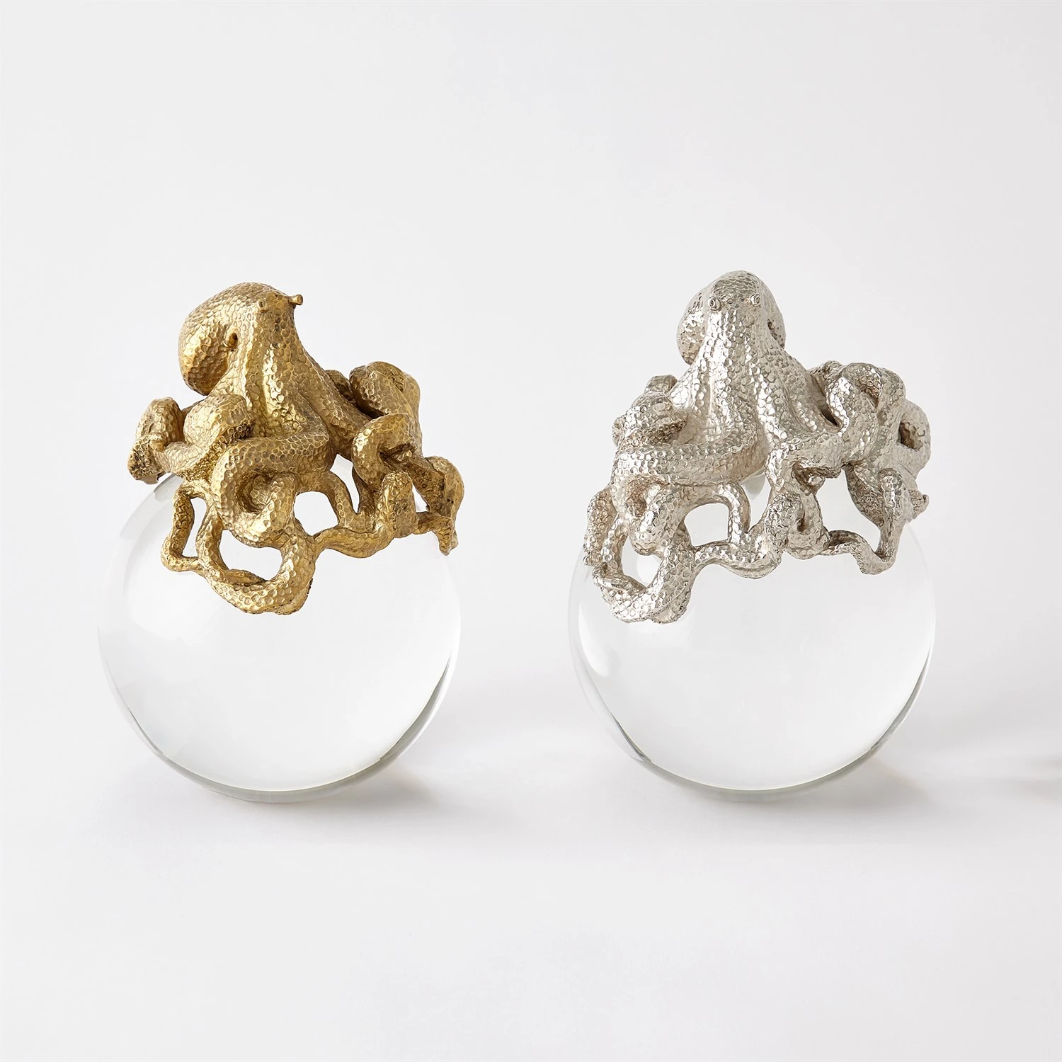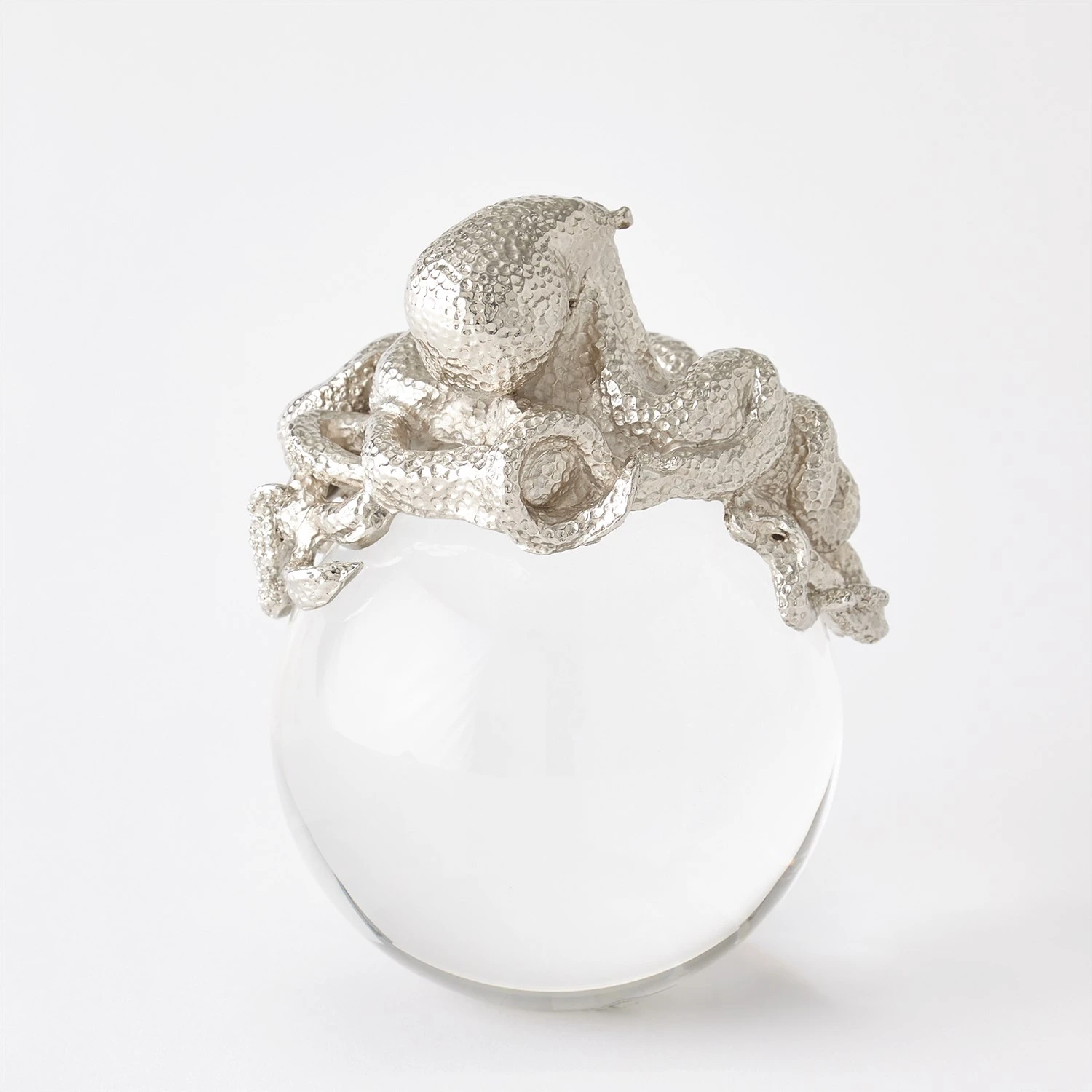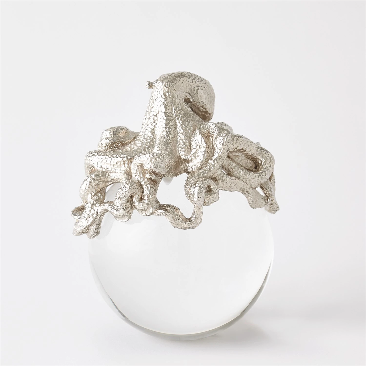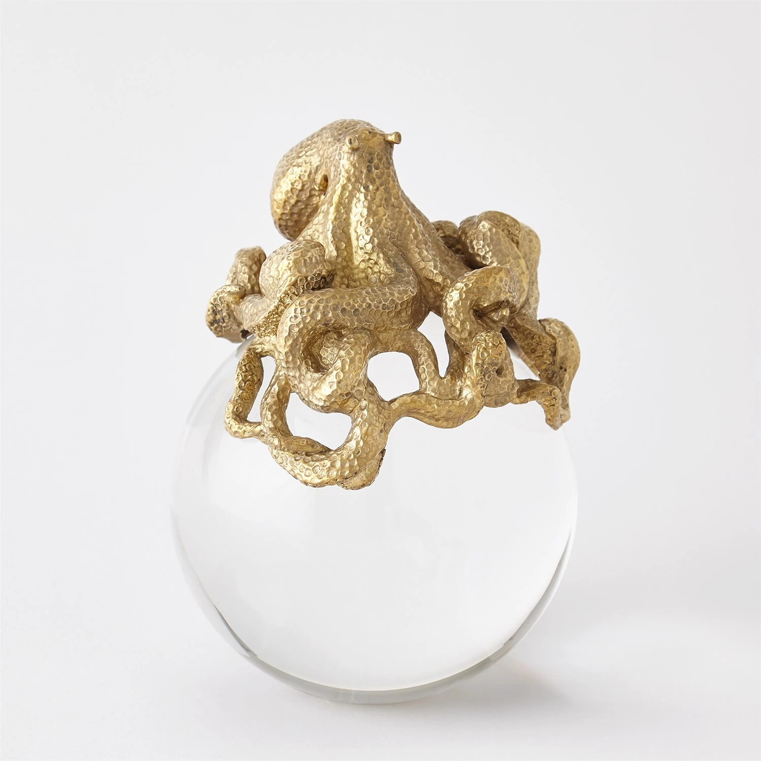 The majestic Octopus on Orb is made of cast brass and crystal and brings a sense of ocean opulence to any surface. Available in Brass and Nickel. Please do not place in direct sunlight.