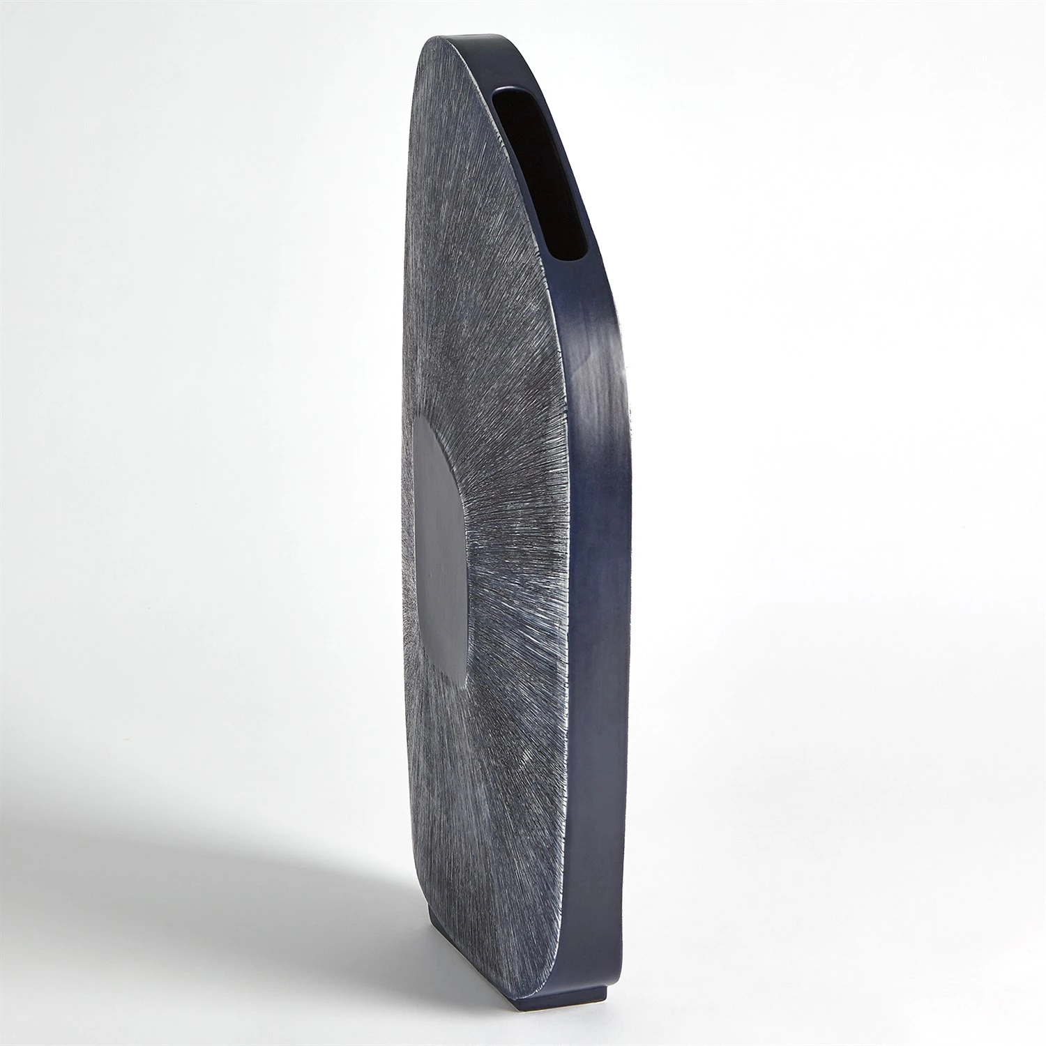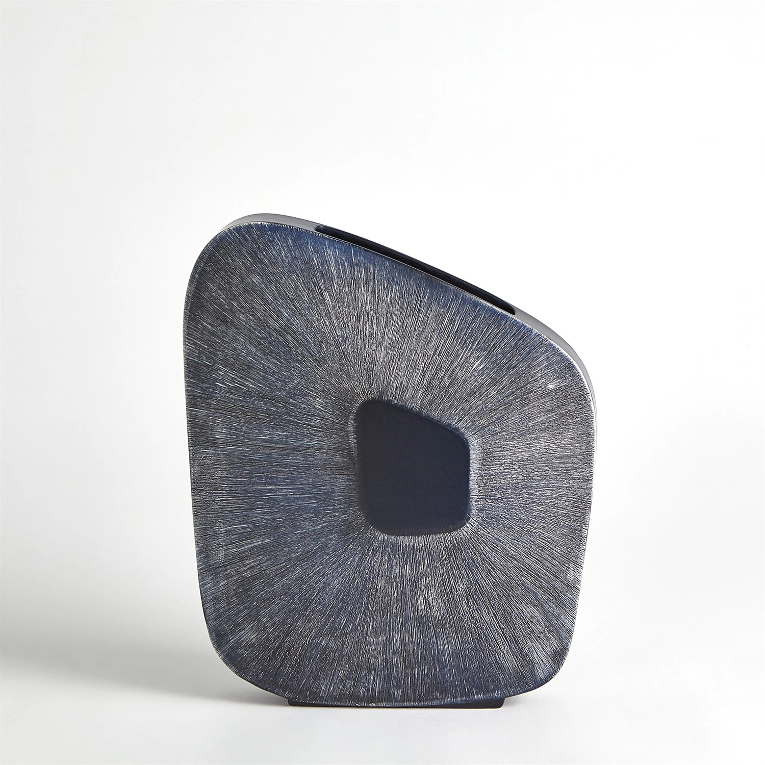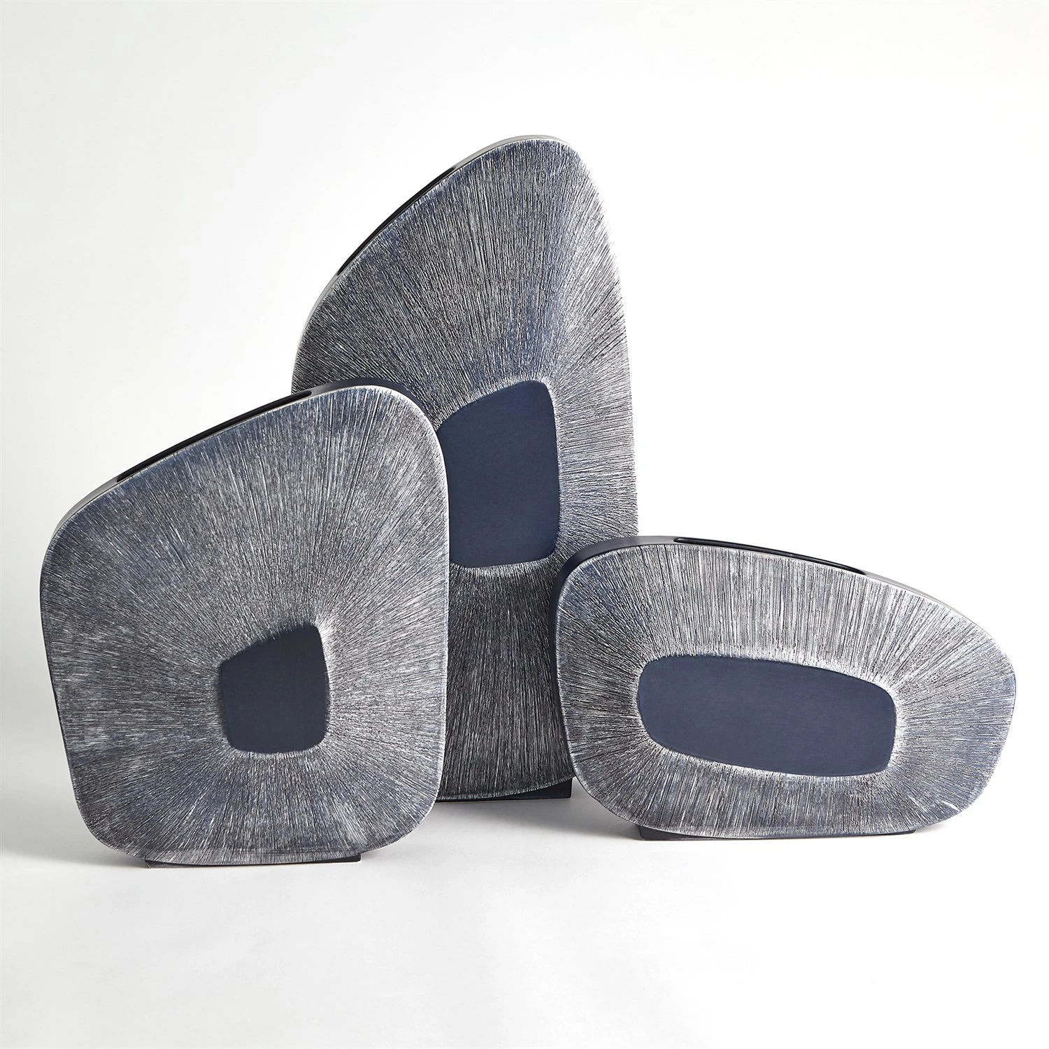 Made of Portuguese ceramic, the Offset Square Scratch Vases have a striated design with an ink finish.