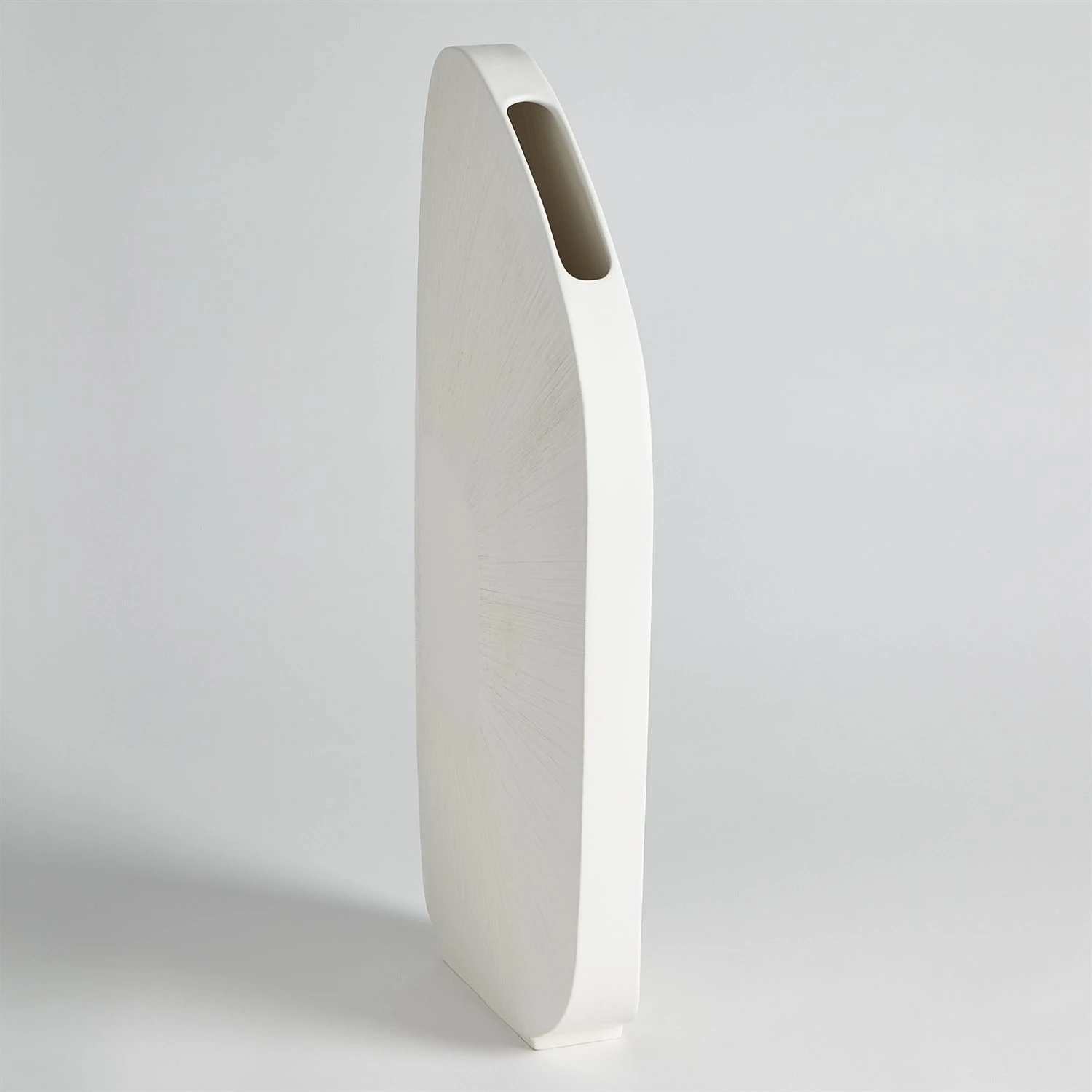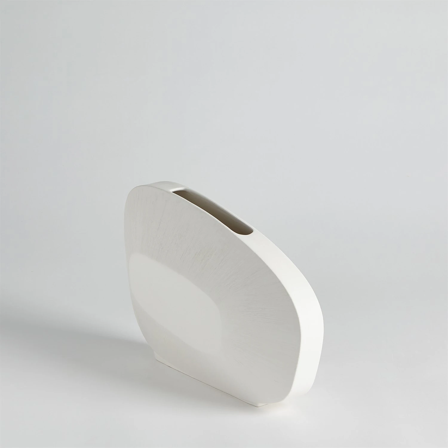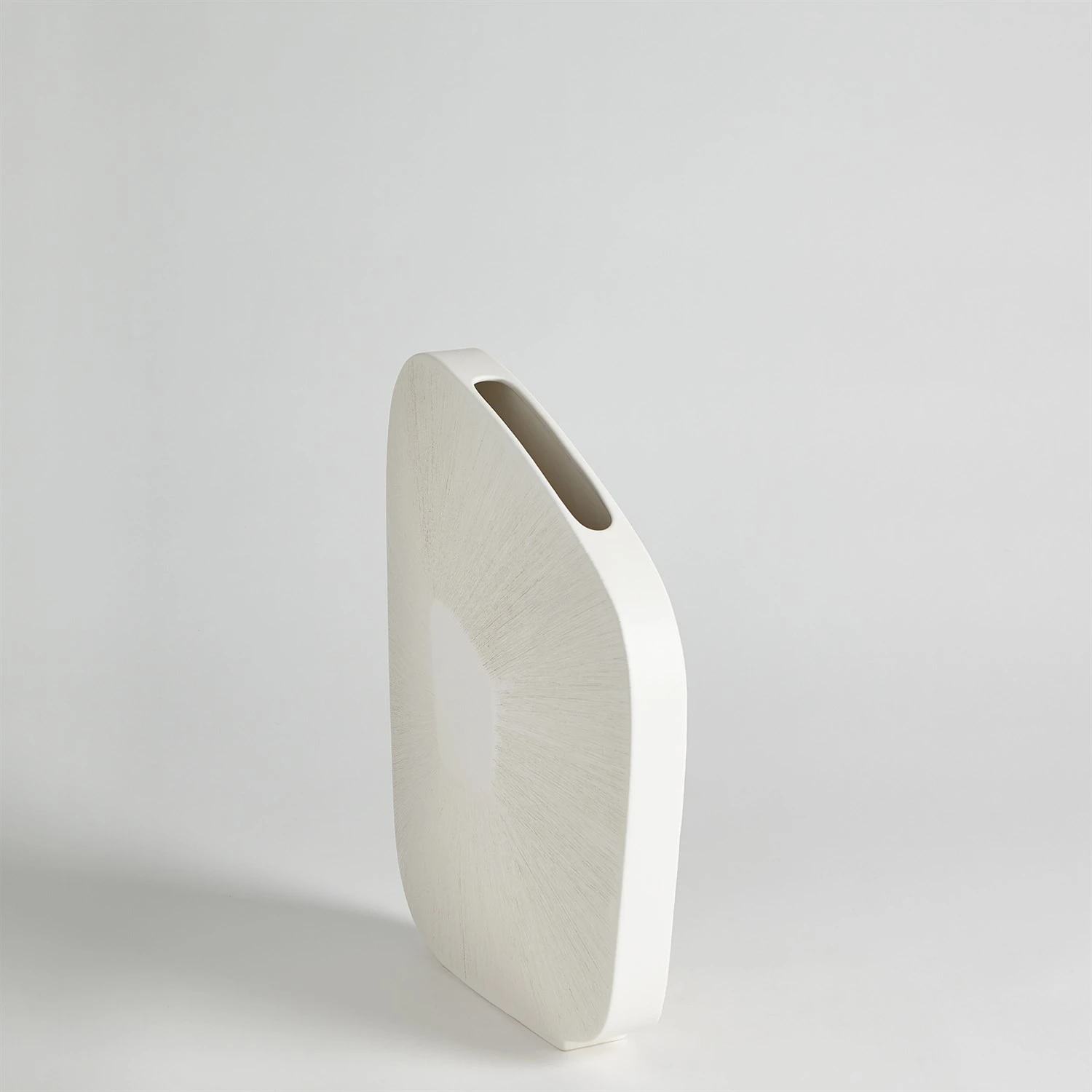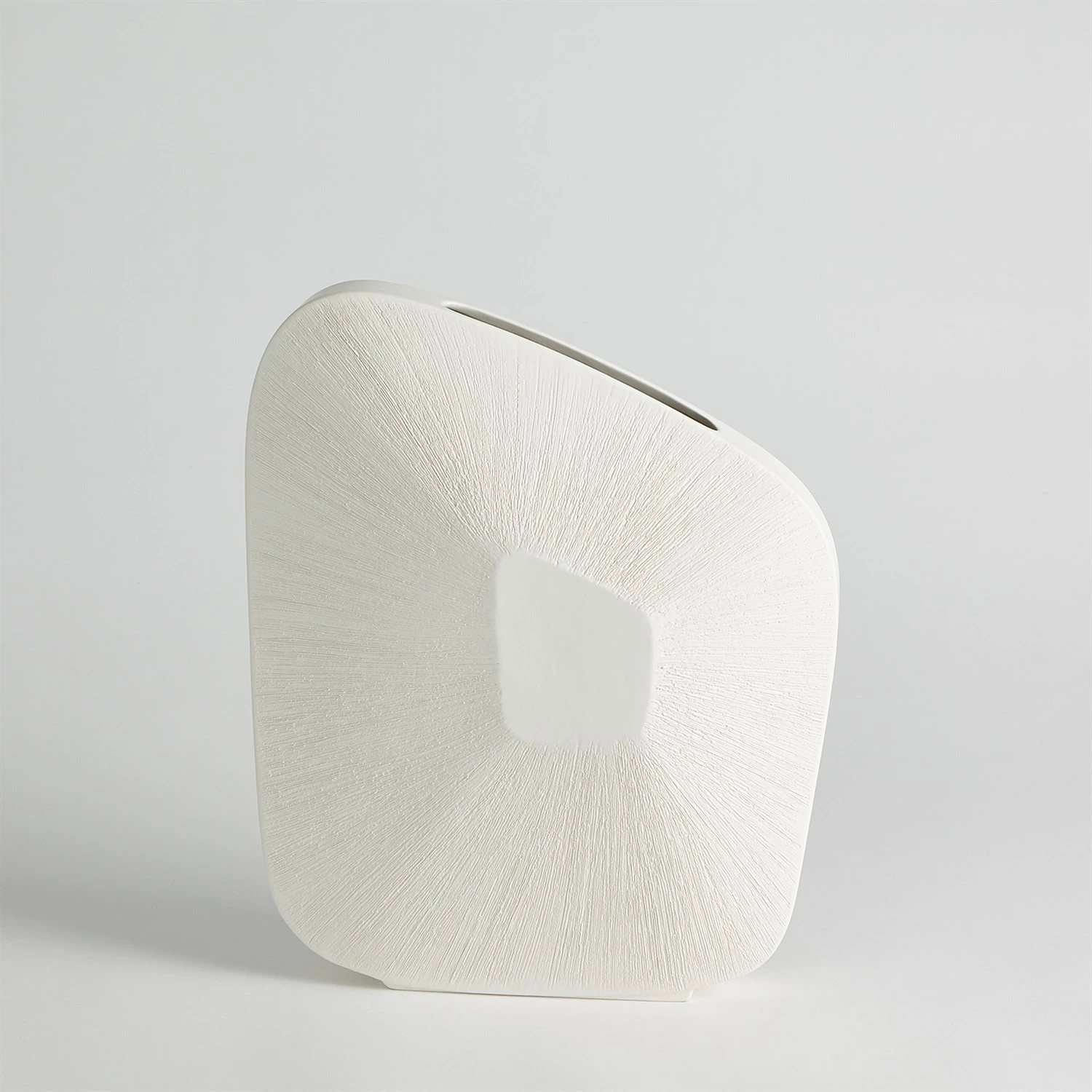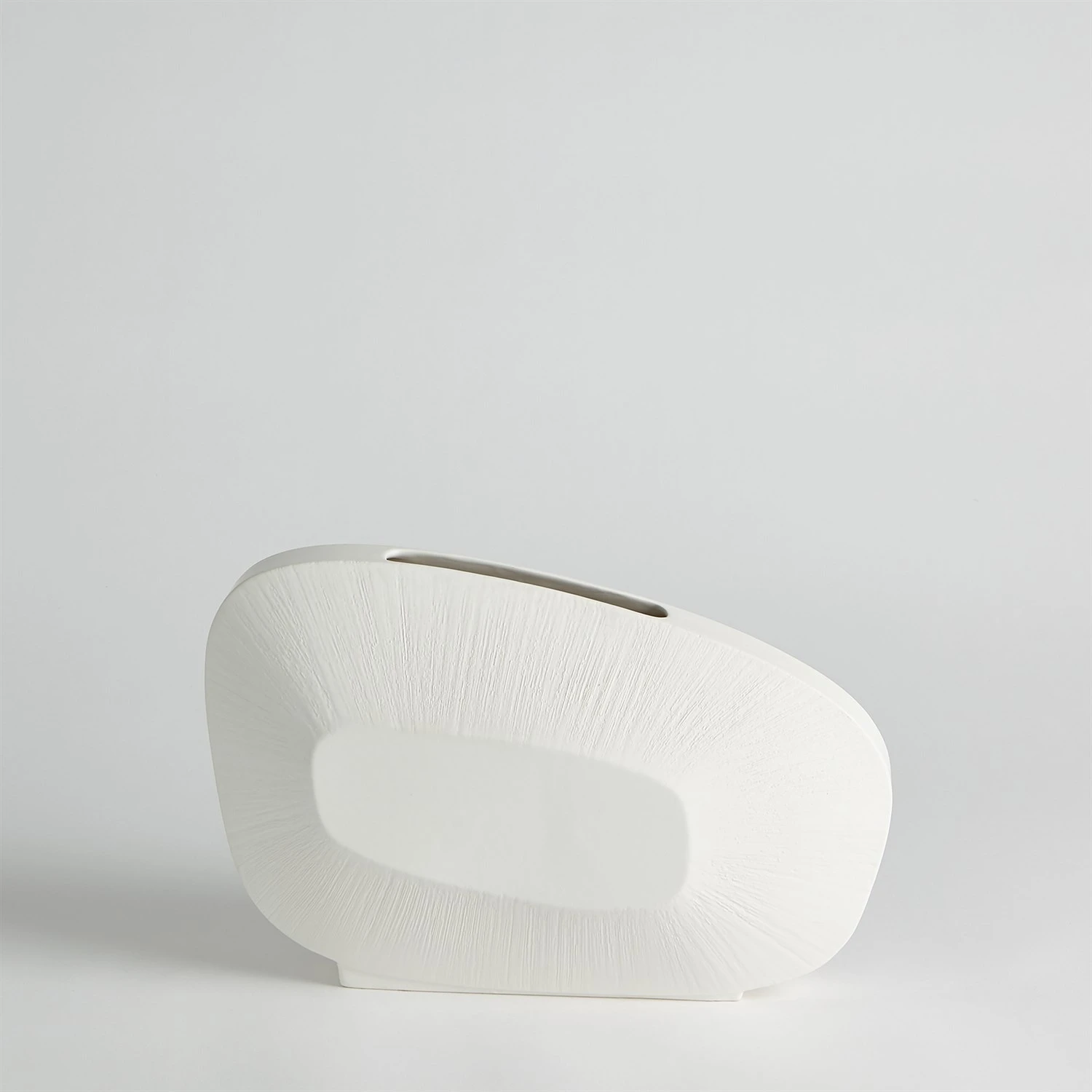 Made of Portuguese ceramic, the Offset Square Scratch Vases have a striated design with a matte white finish.