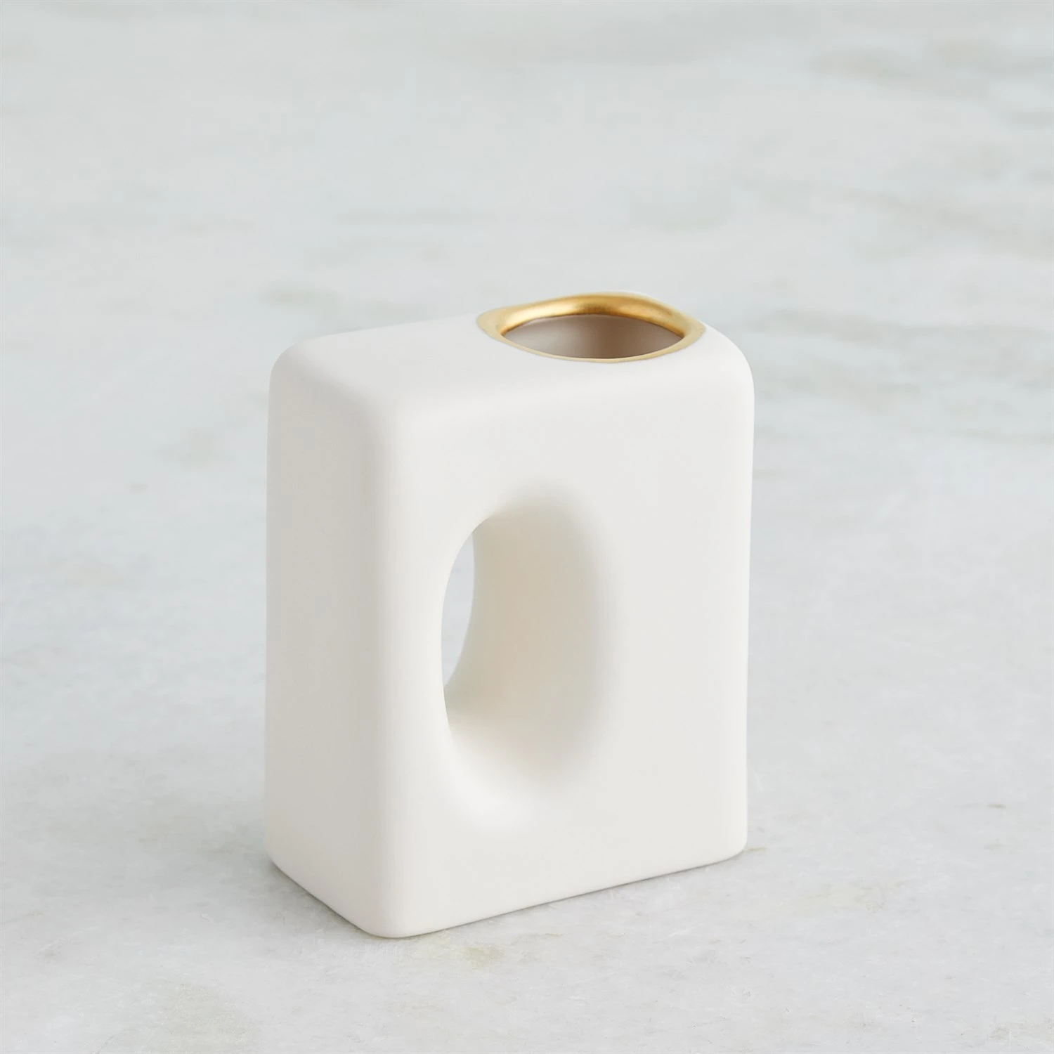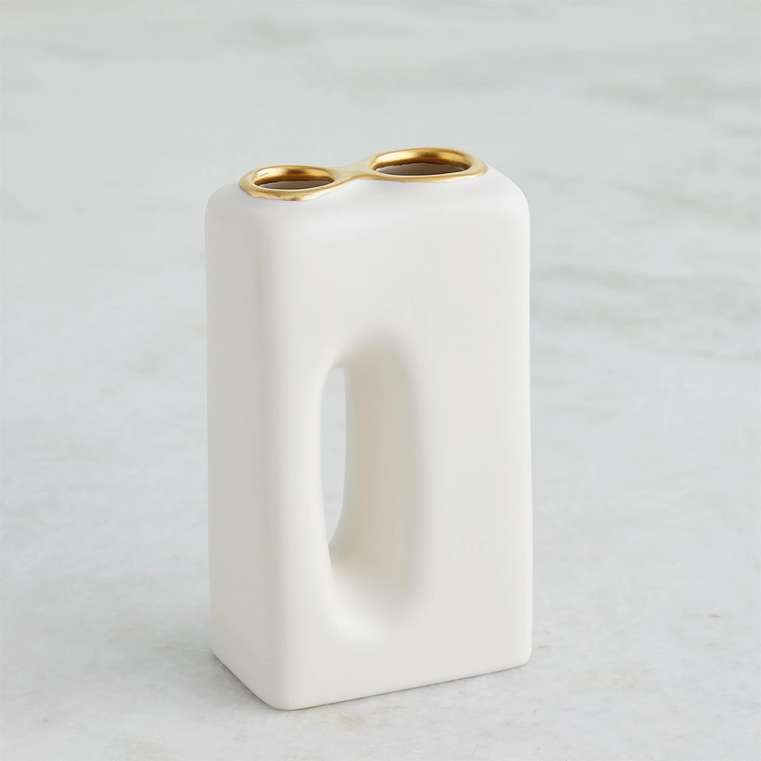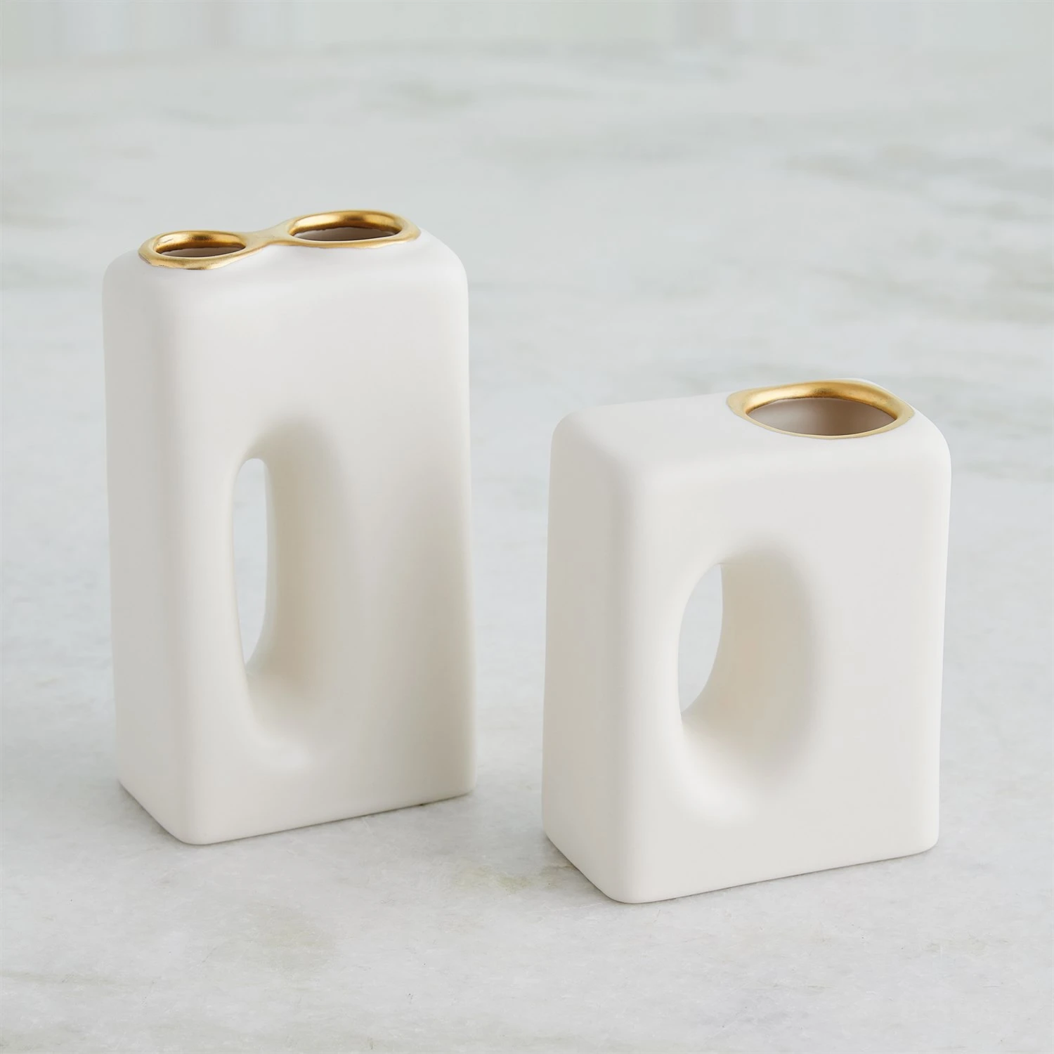 Handcrafted from Portuguese slip-molded ceramic, the Oh Yes Vases boast a matte white finish complemented by meticulously hand-painted gold rims.