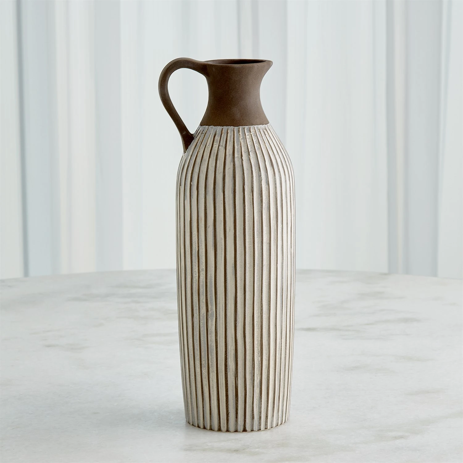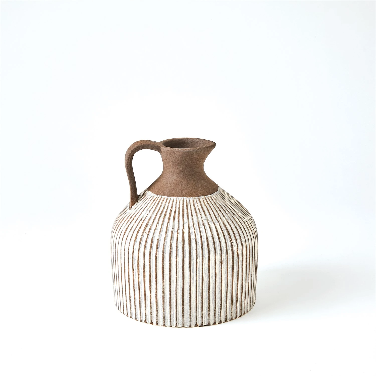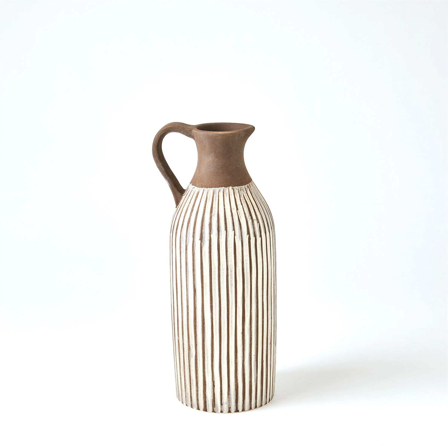 Crafted by Portuguese artisans, the Palisades Pitchers are slip molded Portuguese ceramics with hand painted reactive glaze striped details.