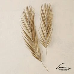 Pure brass with antique finishes on realistic metal interpretations of silver dollar eucalyptus, seedy eucalyptus, palm and huckleberry branches all with clever hidden mounting devices.