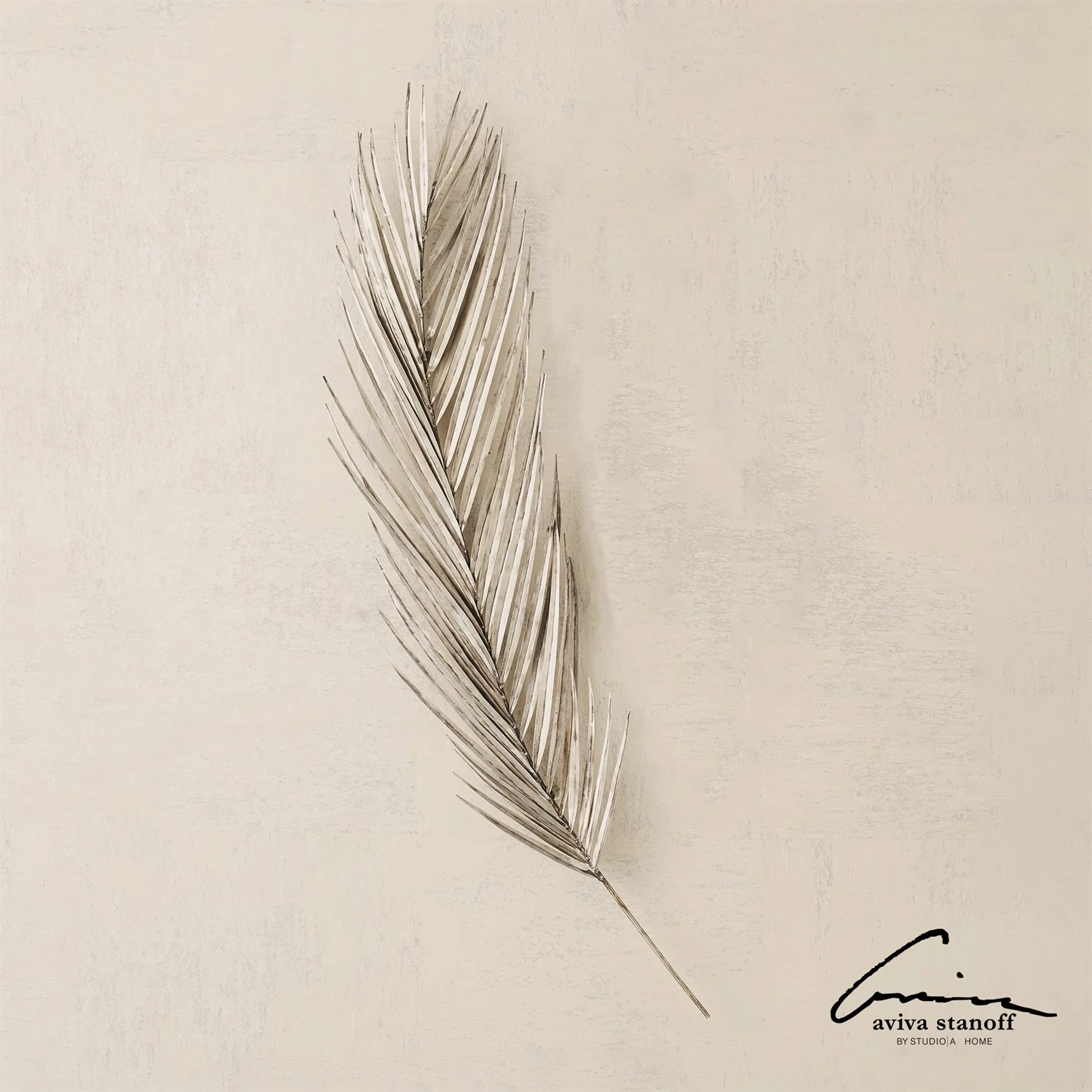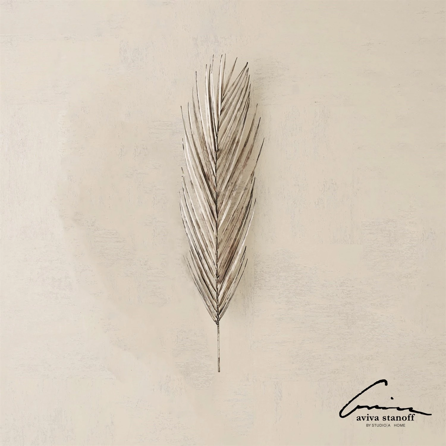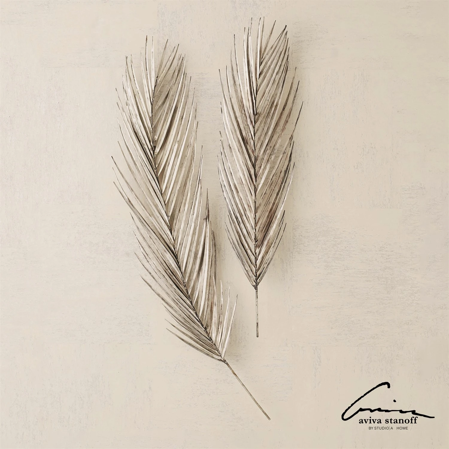 Pure brass with antique nickel-plated finishes on realistic metal interpretations of silver dollar eucalyptus, seedy eucalyptus, palm and huckleberry branches all with clever hidden mounting devices.