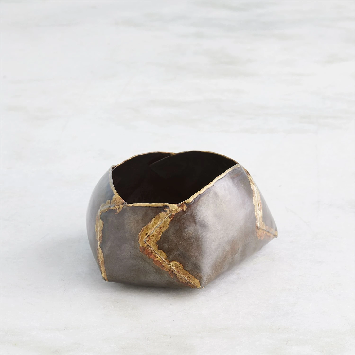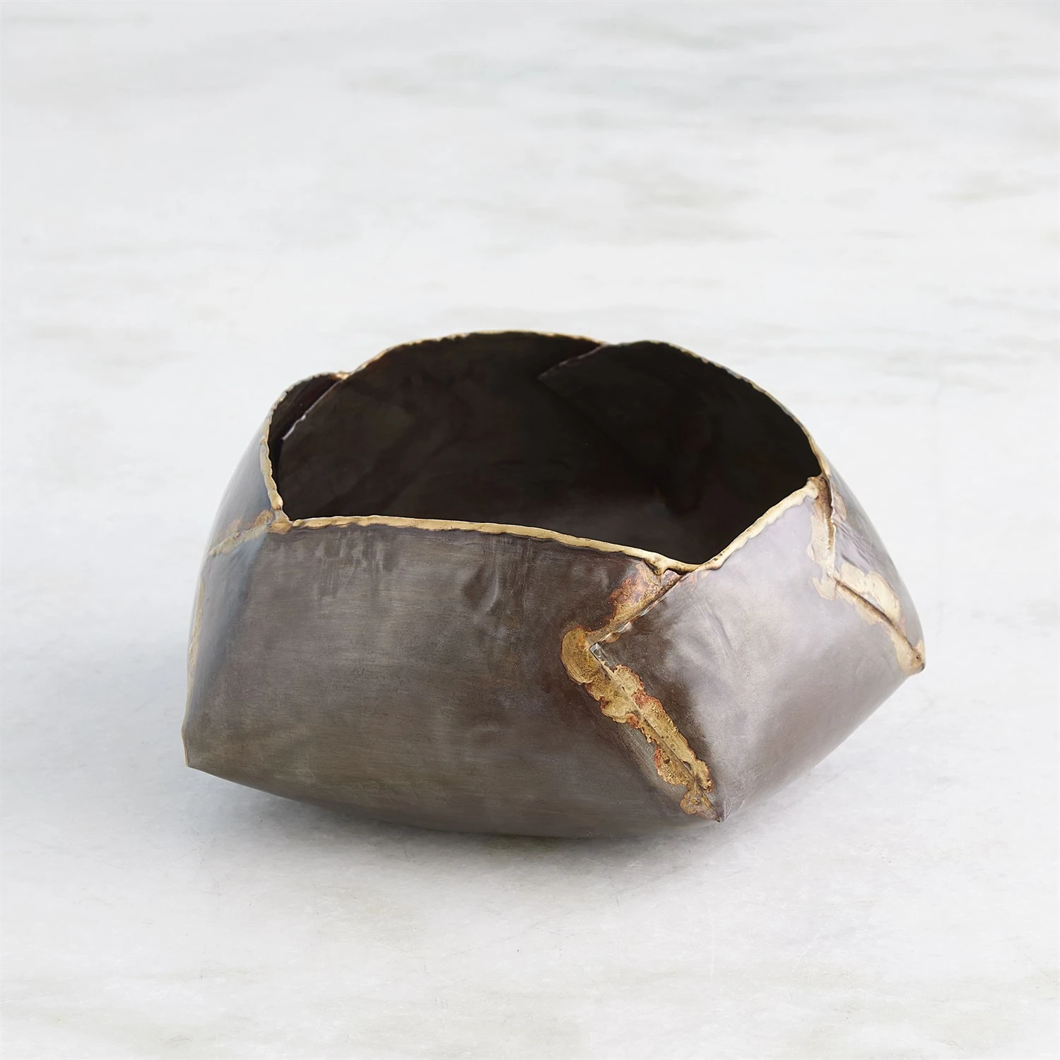 The Pleated Armor Bowls are hand-forged from iron, boasting a captivating gunmetal finish. The braised brass details add a touch of sophistication and contrast.