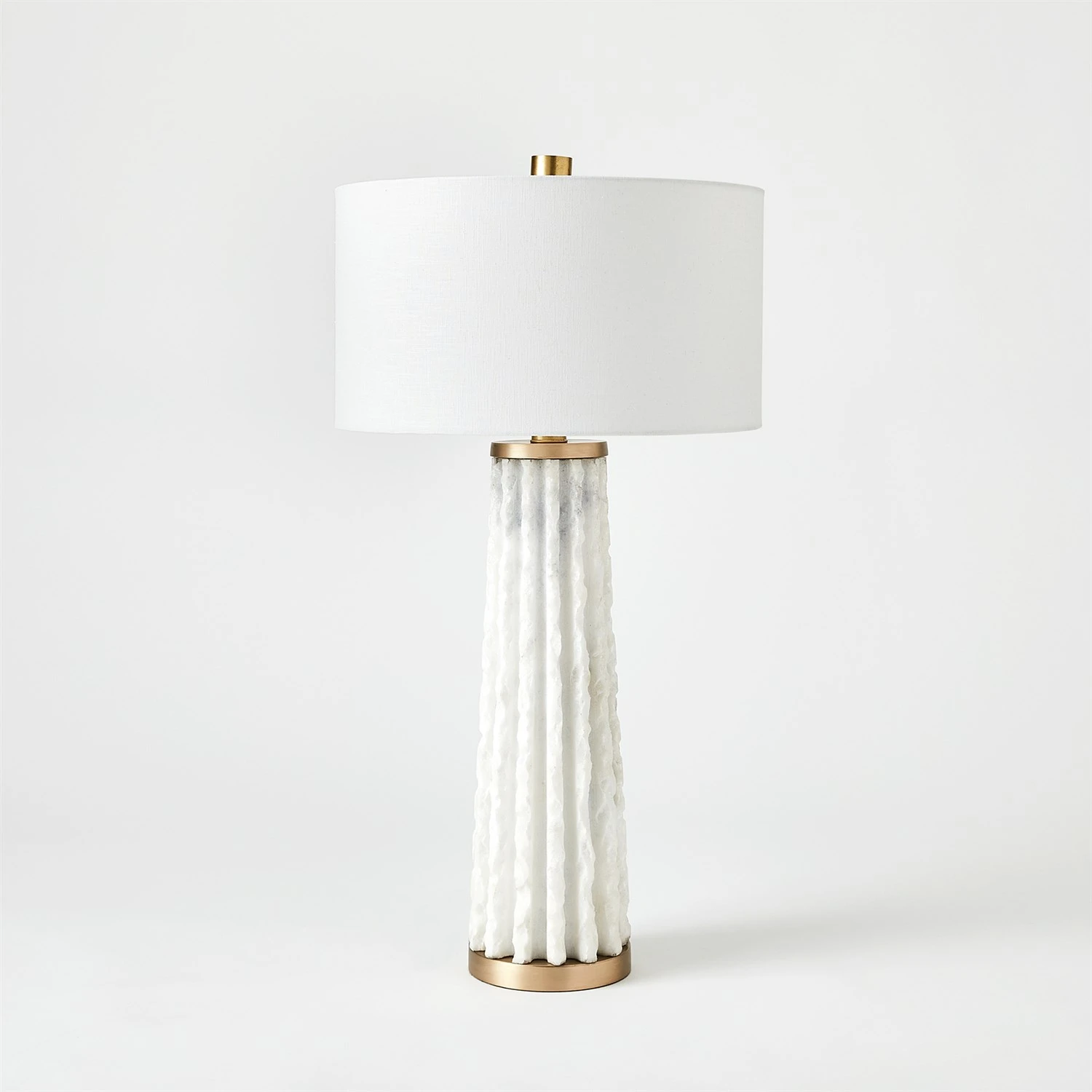 The Quarry Table Lamp is a magnificent piece crafted from a single solid block of Ambaji white marble. It undergoes an intricate process of turning and hand-chiseling by skilled artisans, resulting in a truly beautiful statement piece. The lamp features brass accents and is paired with a hardback off-white linen shade, adding to its elegance and uniqueness. As marble is a natural product, please be aware that there will always be variations in veining and color. This is to be expected and makes every marble product uniquely your own.