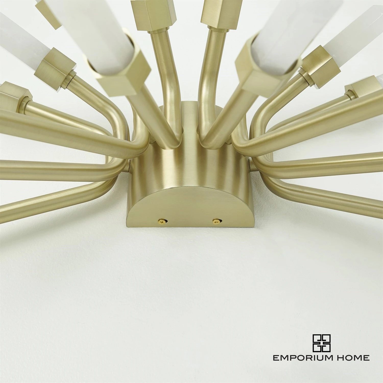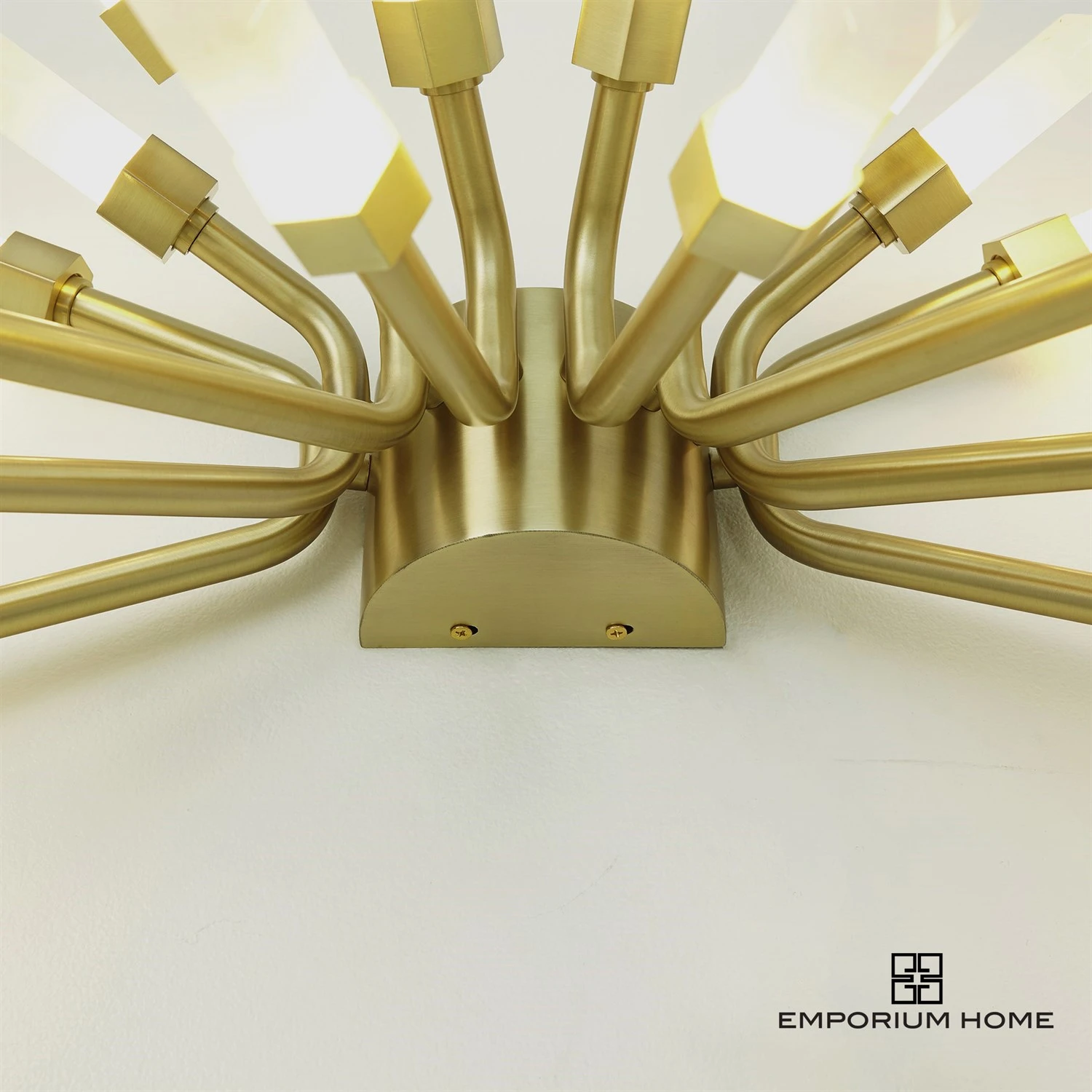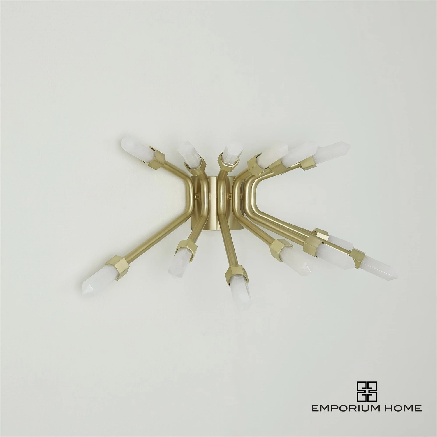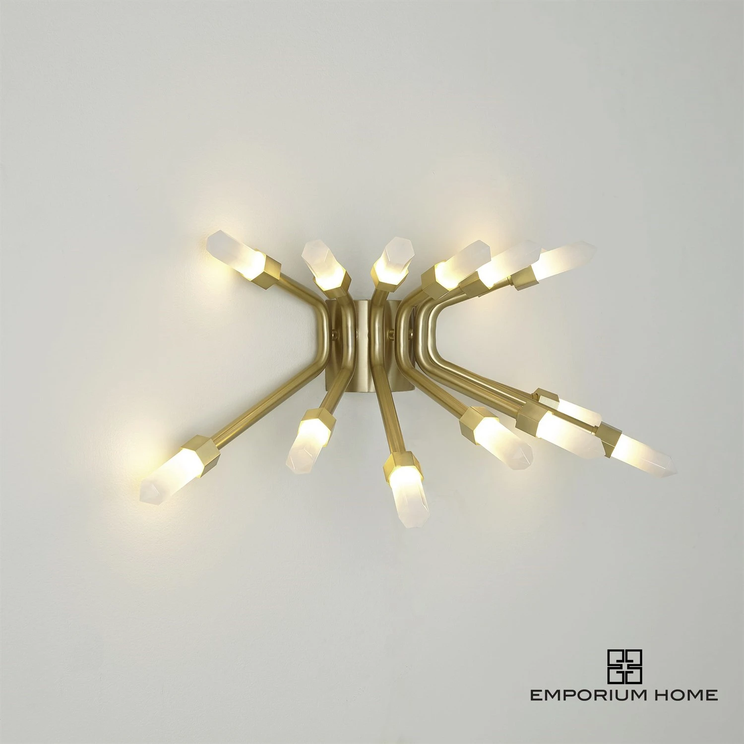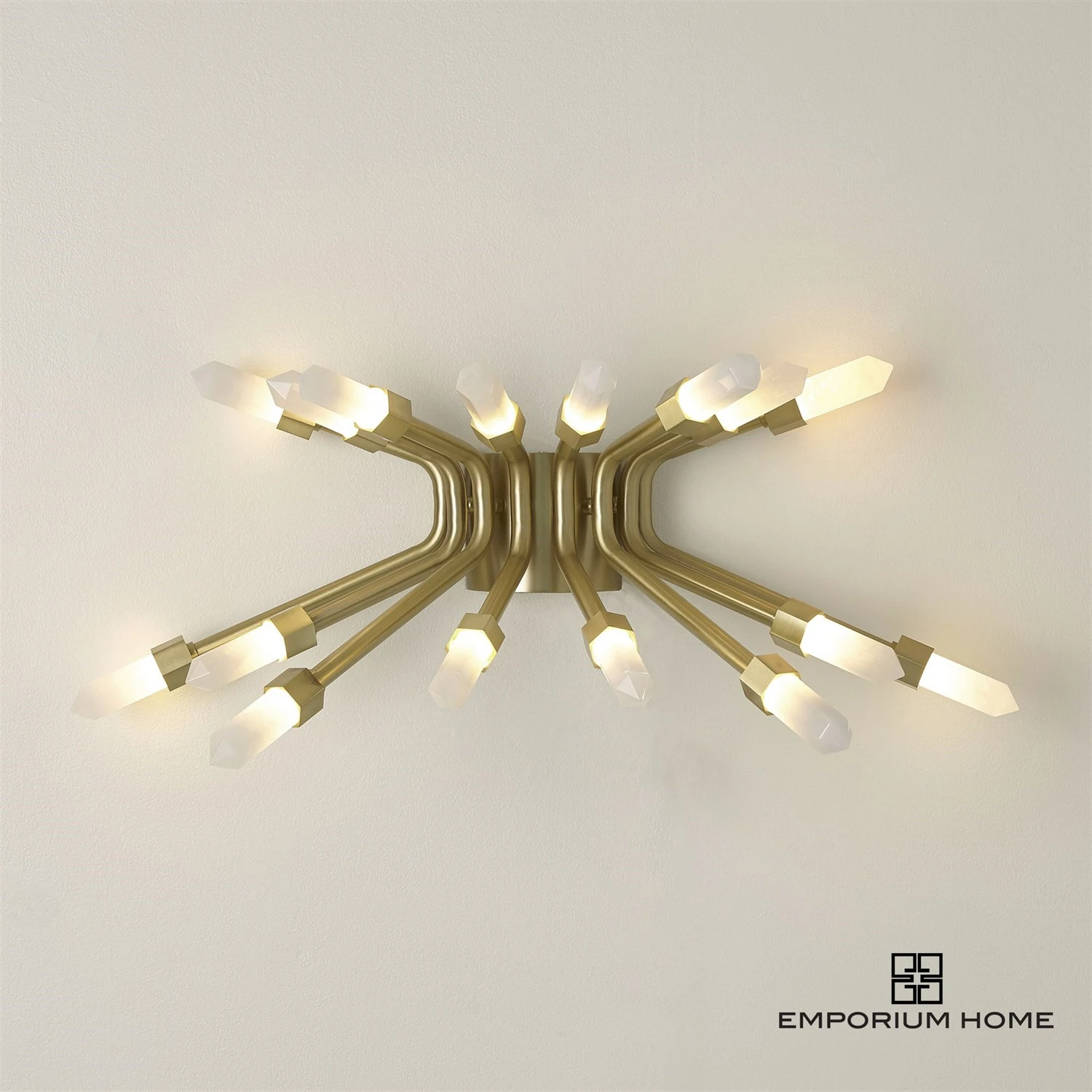 One of our best sellers and rightfully so, our Quartz Burst Sconce makes an impact from every angle. Gorgeous natural quartz crystal points backlit with warm LED lights combined with our signature satin brass finish make this piece an instant focal point in any space.