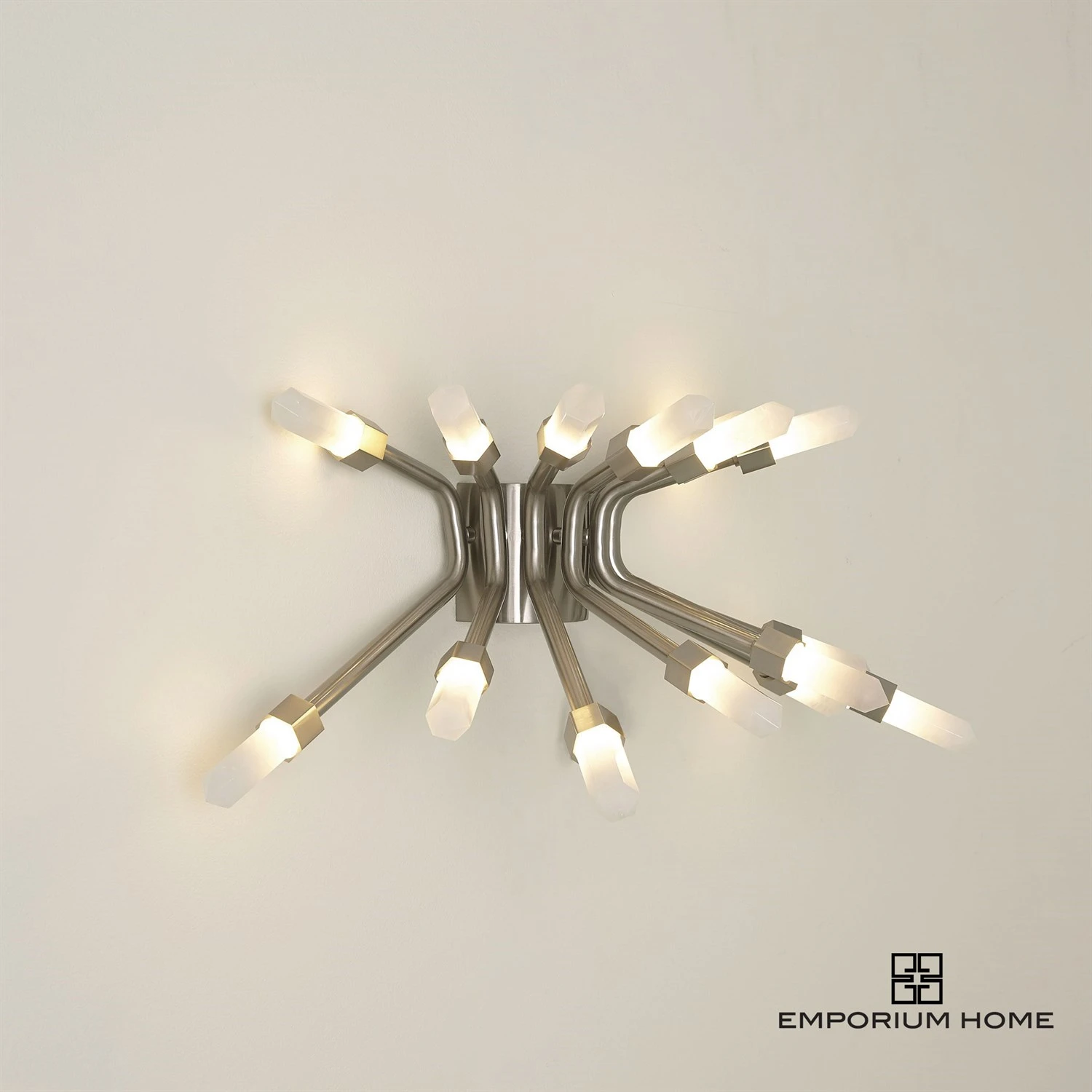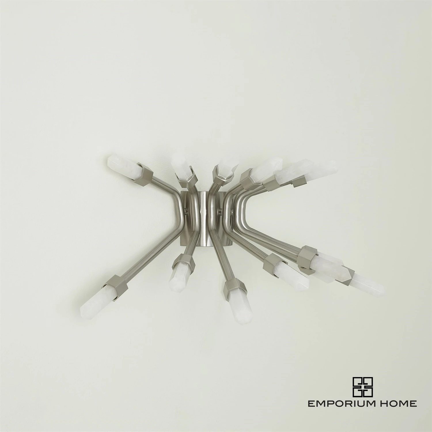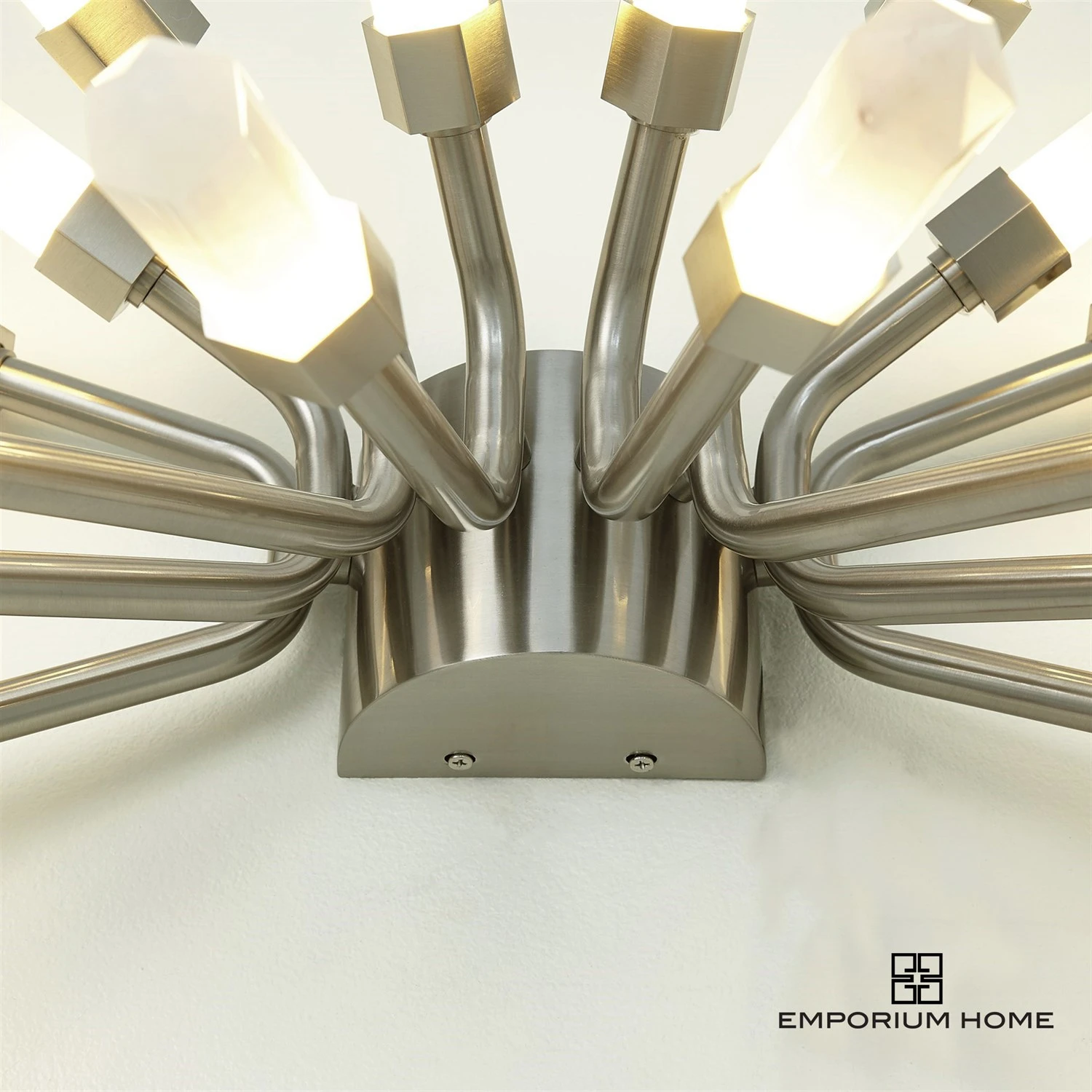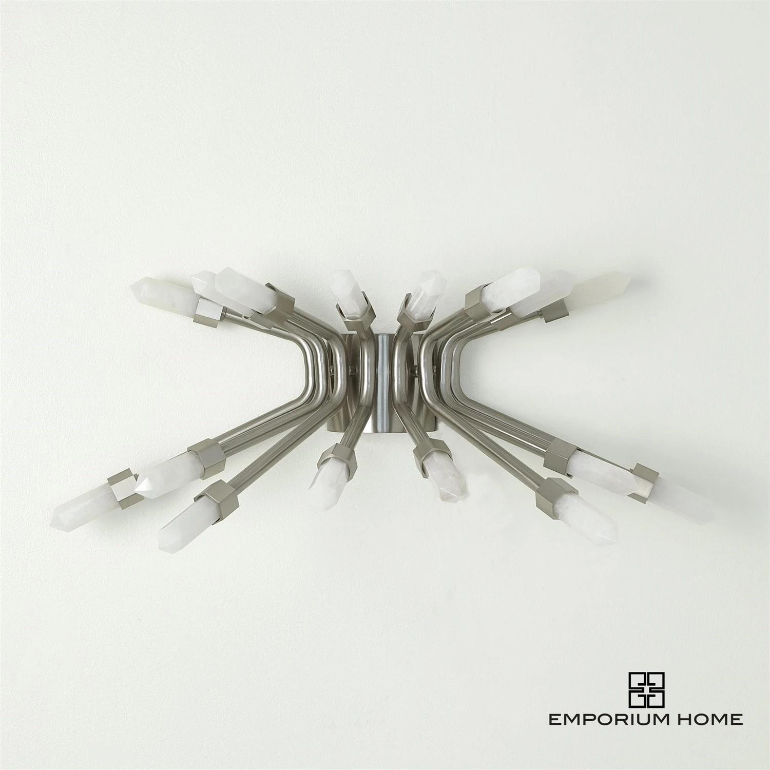 One of our best sellers and rightfully so, our Quartz Burst Sconce makes an impact from every angle. Gorgeous natural quartz crystal points backlit with warm LED lights combined with our signature satin nickel finish make this piece an instant focal point in any space.
