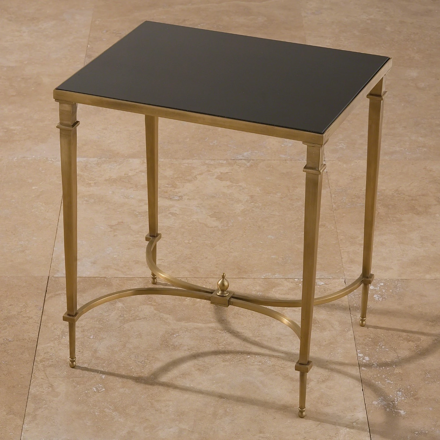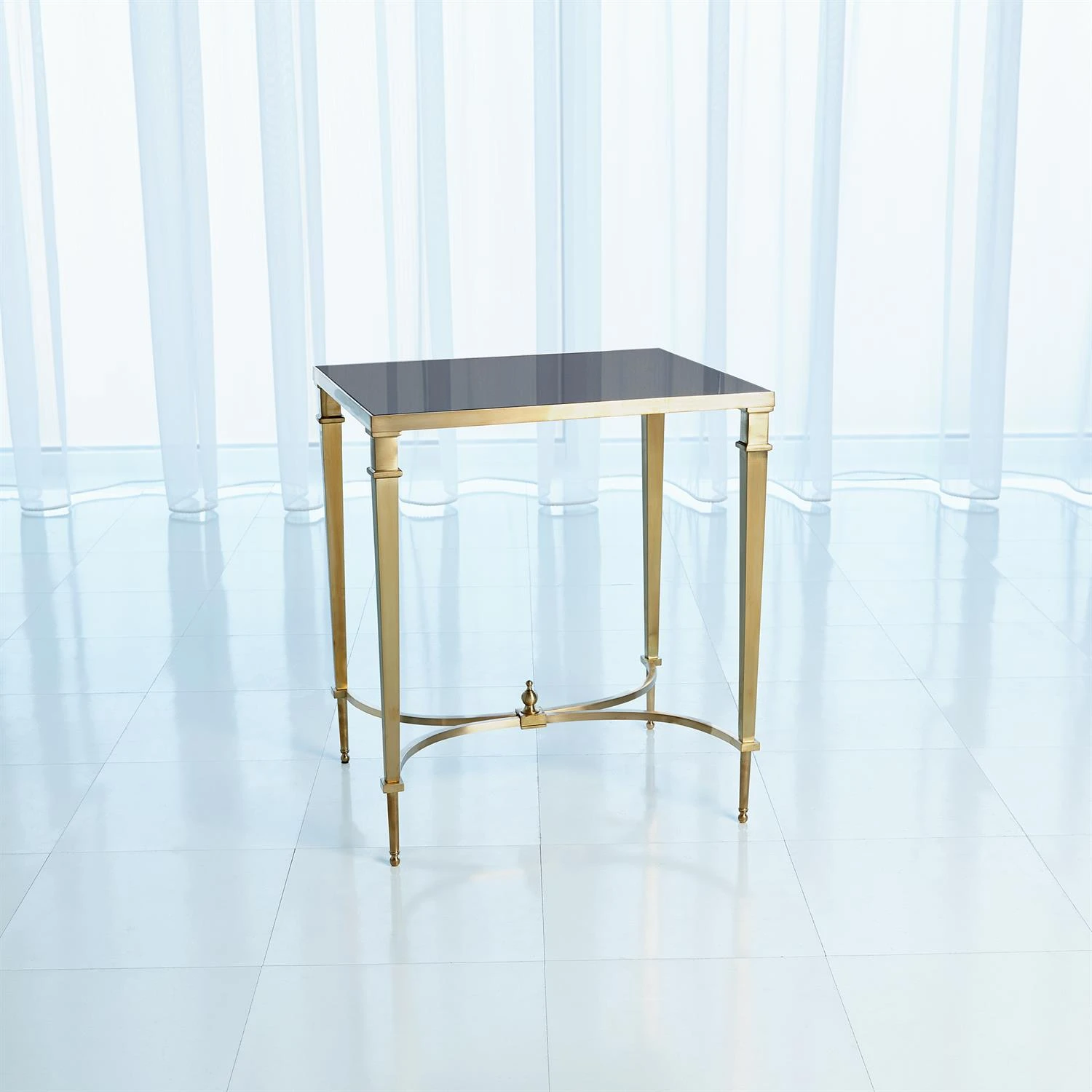 Streamlined and elegant, our French Square Leg Table gives your space the luxe look you need without the fuss you don’t. The brass table sits on squared legs and is topped with a rectangular black granite top.
