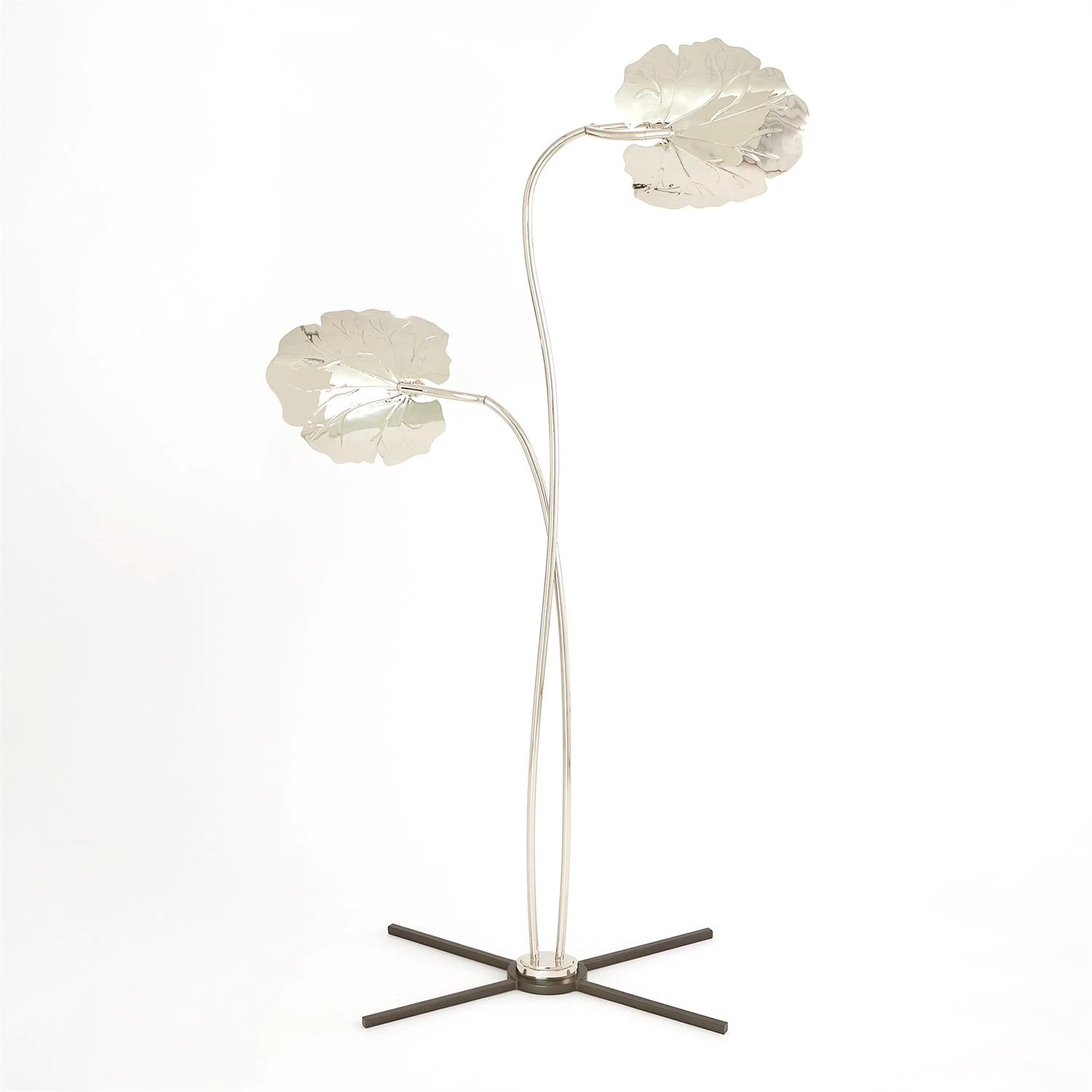 Our Rimini Lamp turns natural beauty into sculptural design. Inspired by Italian 60’s and 70’s design, this floor lamp makes a striking statement and exemplifies our love of botanical themes and luxe materials. Made of solid hammered nickel-plated brass, the leaves reflect a warm, golden light when lit.