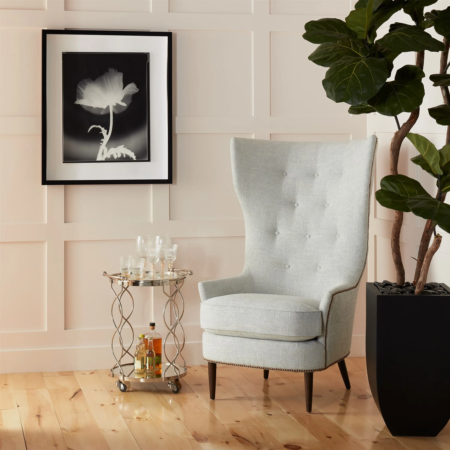 Multitasking at its best! Our versatile Round Trolley can be used as an occasional side table, serving cart and all around functional piece. The top tray is removable and the mirrored tray surface provides easy clean up. The trolley is finished in polished nickel with rolling casters for ease of movement.