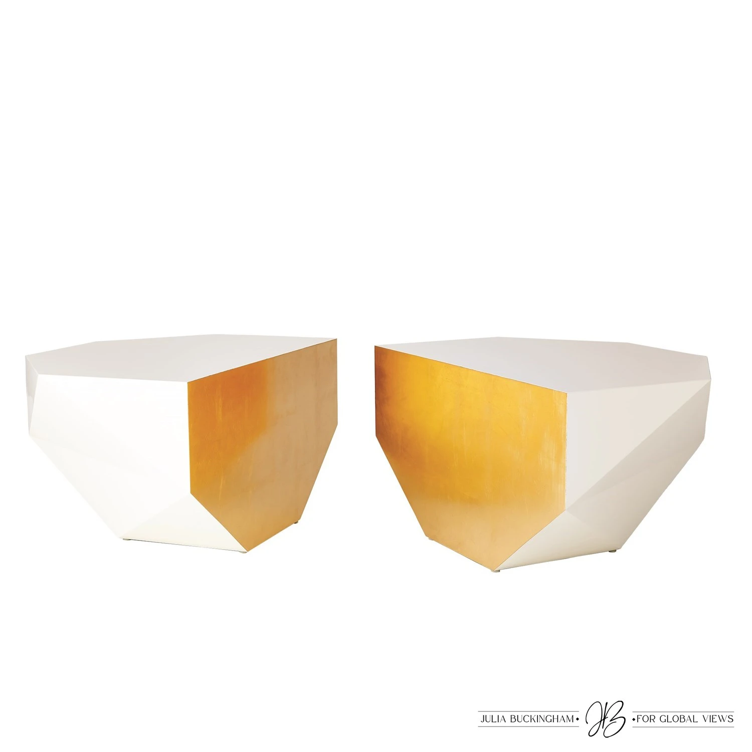These sleek tables in ivory color with lacquered finish are the new color introduction of the popular Gema Table. This pair of tables can be used separately or together in any position or pairing. No matter how you place the tables, a glimmer of the gold leaf will add warmth to these modern tables that continue to be a crowd pleaser.