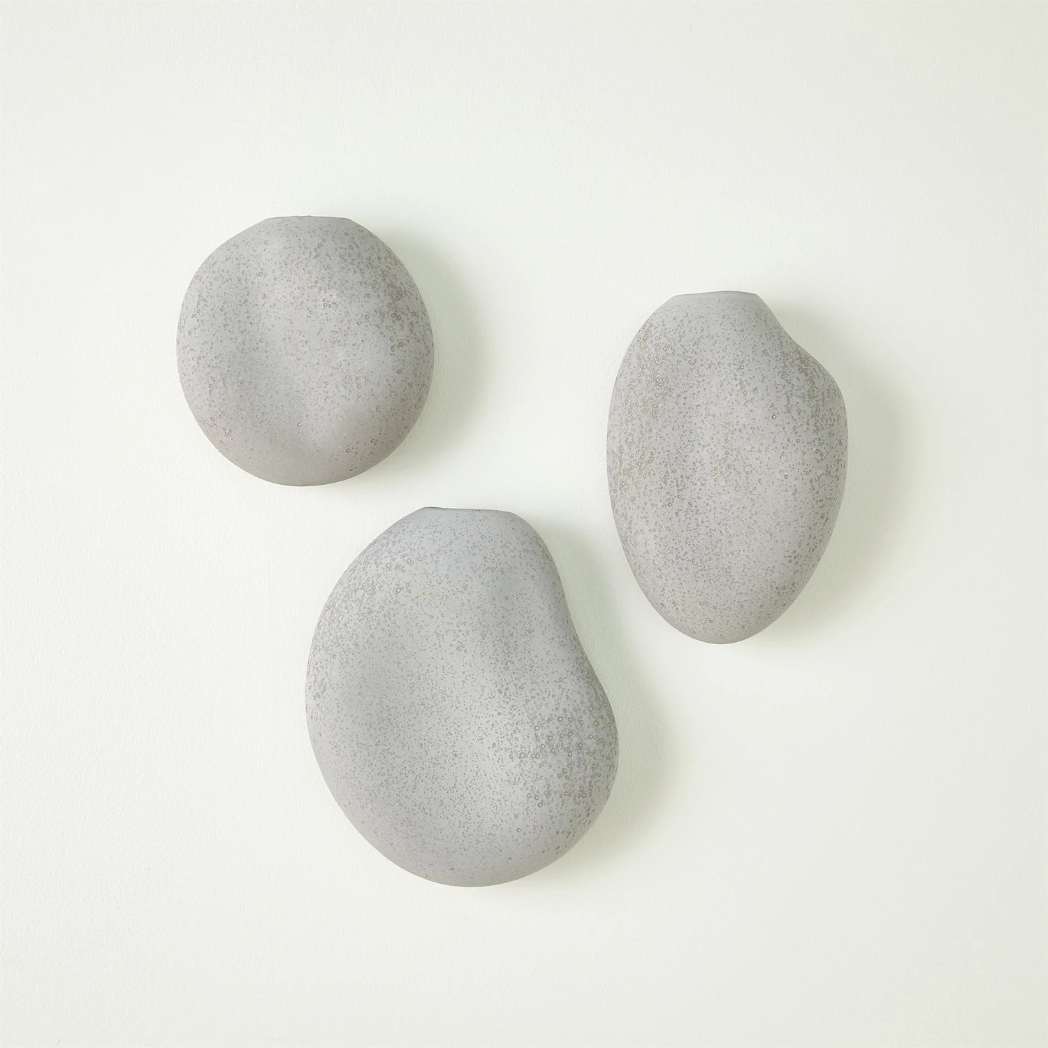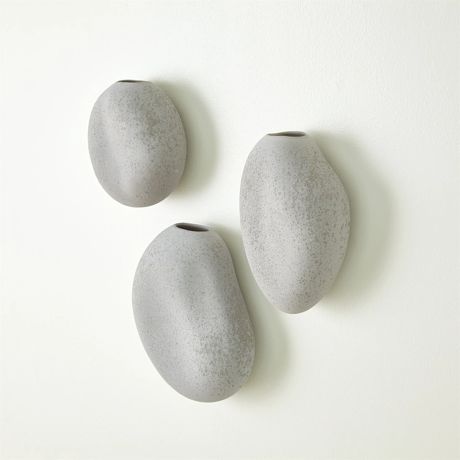 Pebble Wall Vases were inspired by river rocks. Molded of water tight ceramic with a black finish. Set of 3.