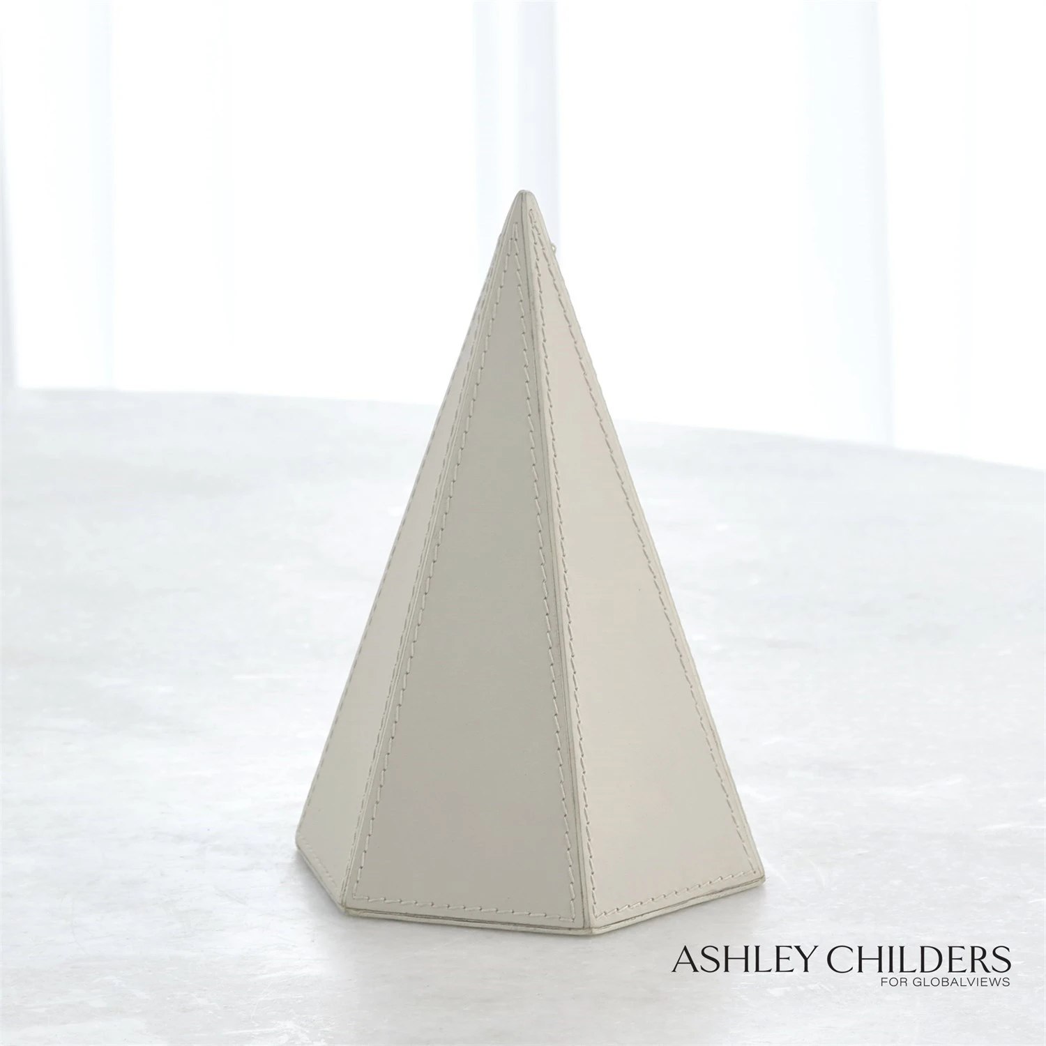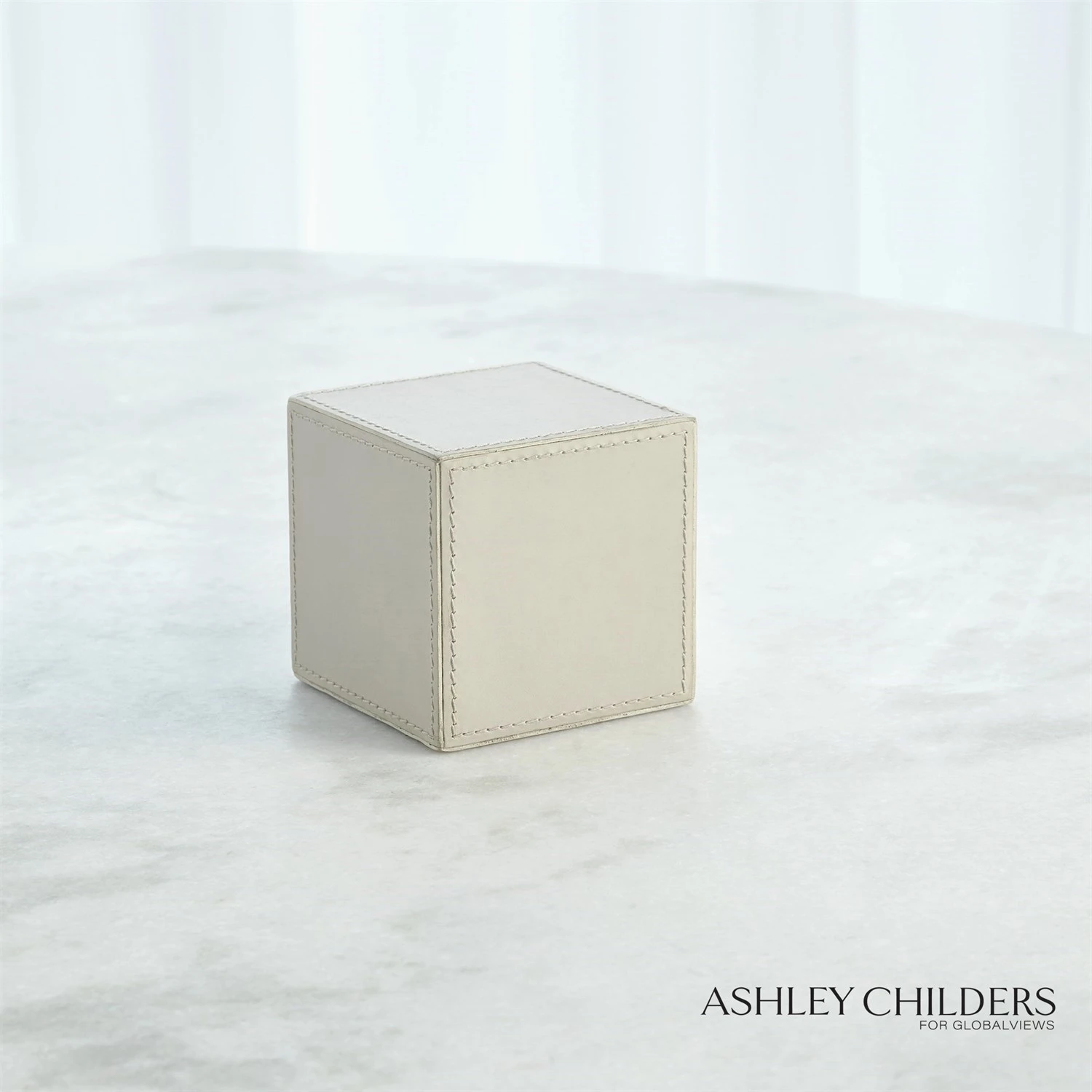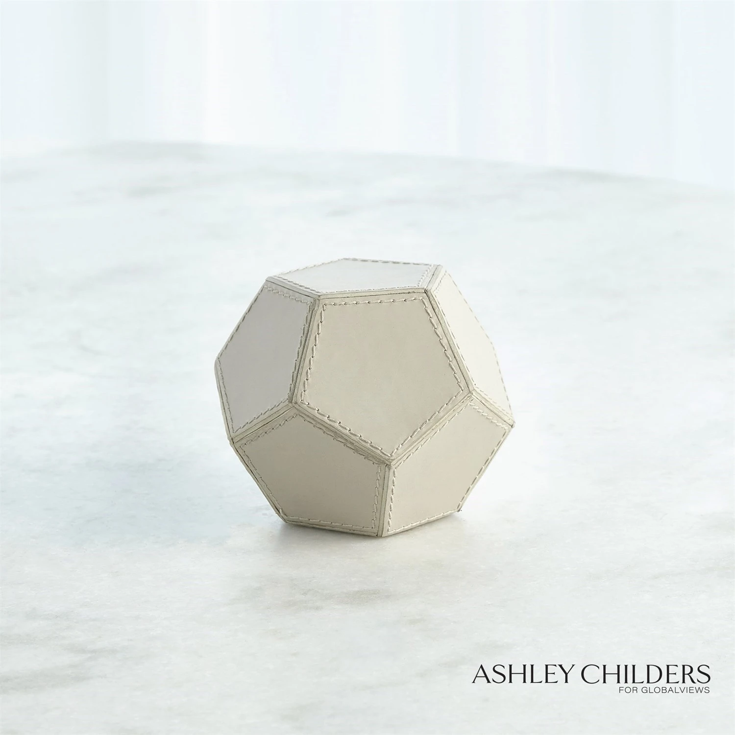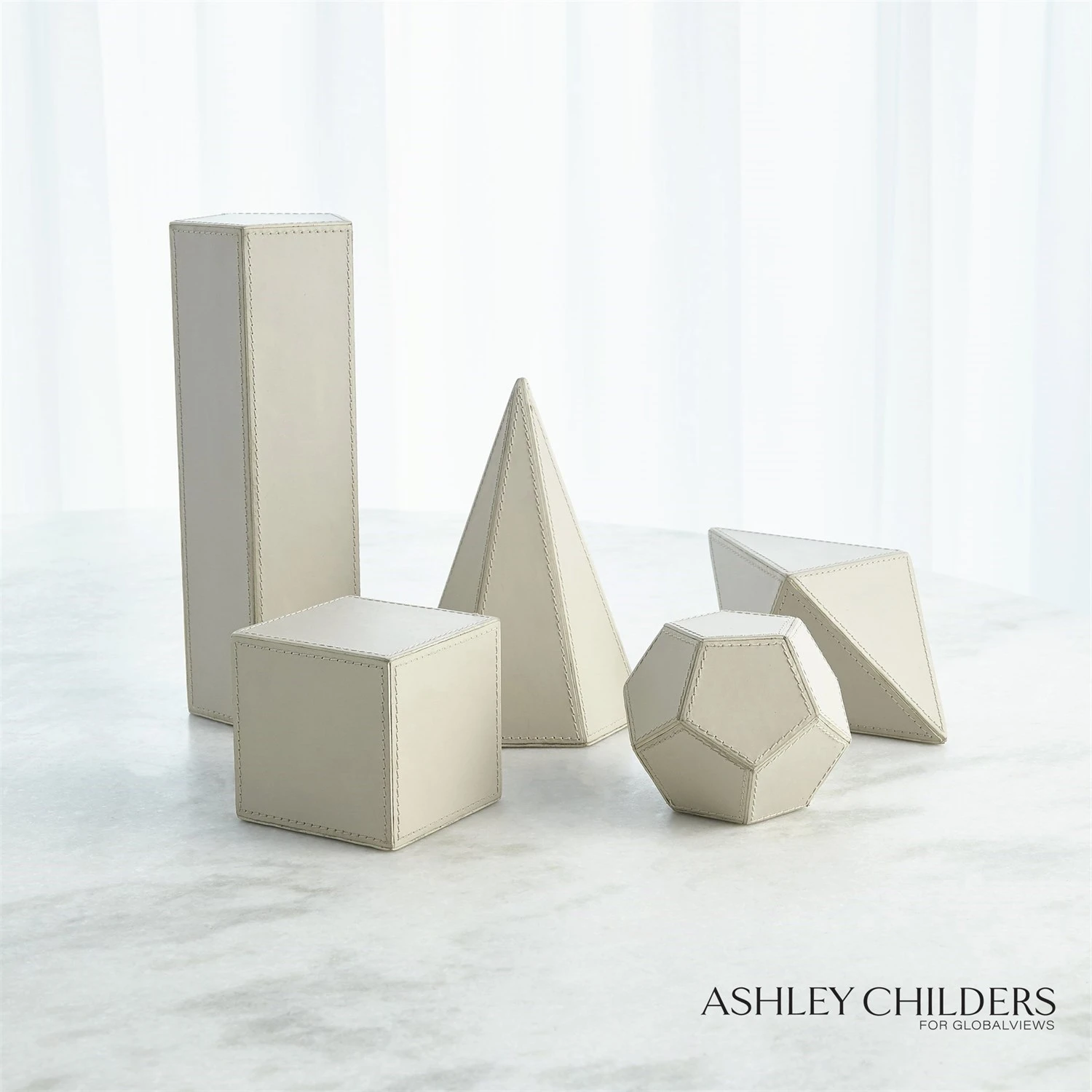 Our leather-clad shapes collection is a study in both form and material. Clad in a sublime Mist colored leather and stitched with skillful perfection. These pieces are a chic accent to any space.