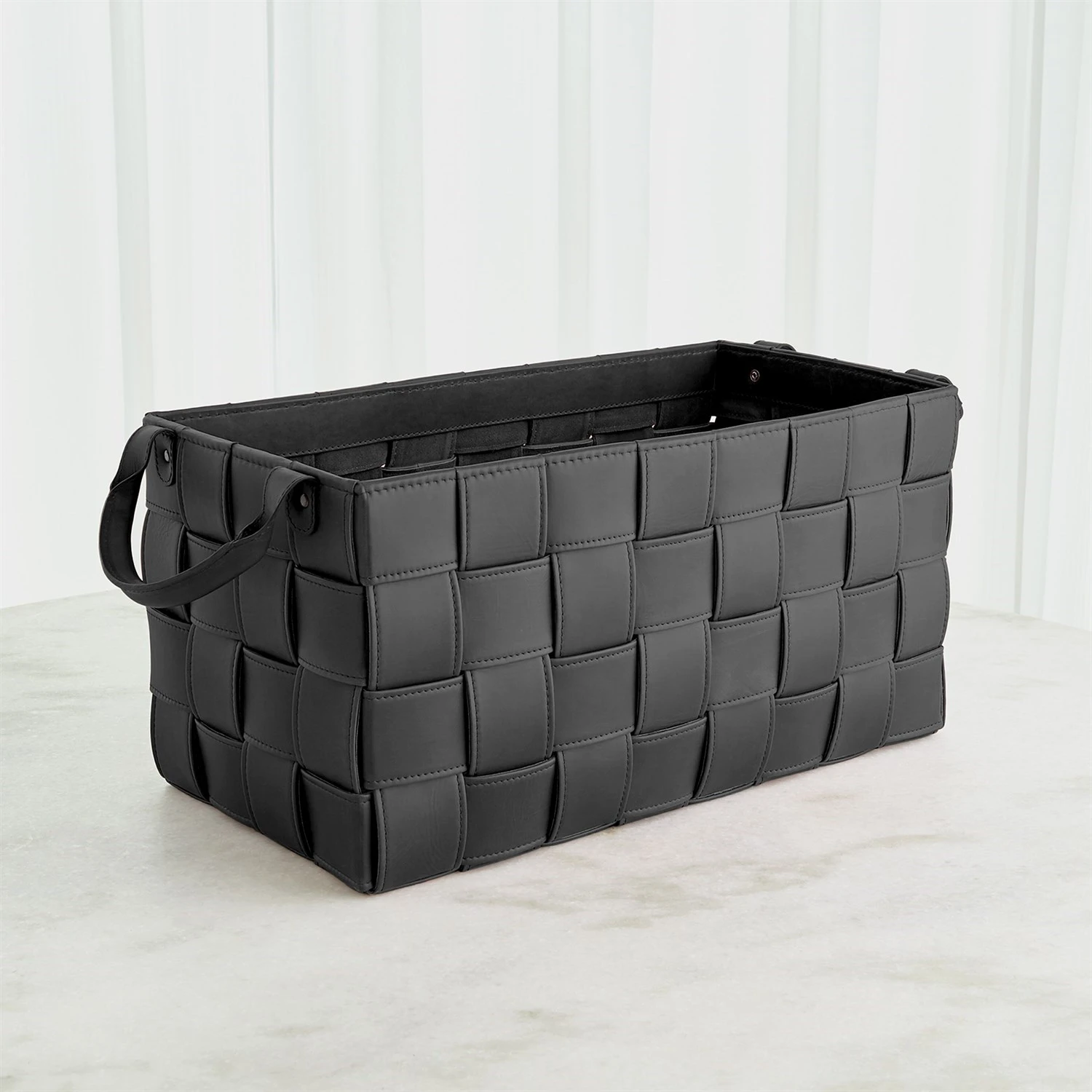 Inspired by handcrafted leather goods, the Soft Woven Baskets are made of woven top grain marble leather.