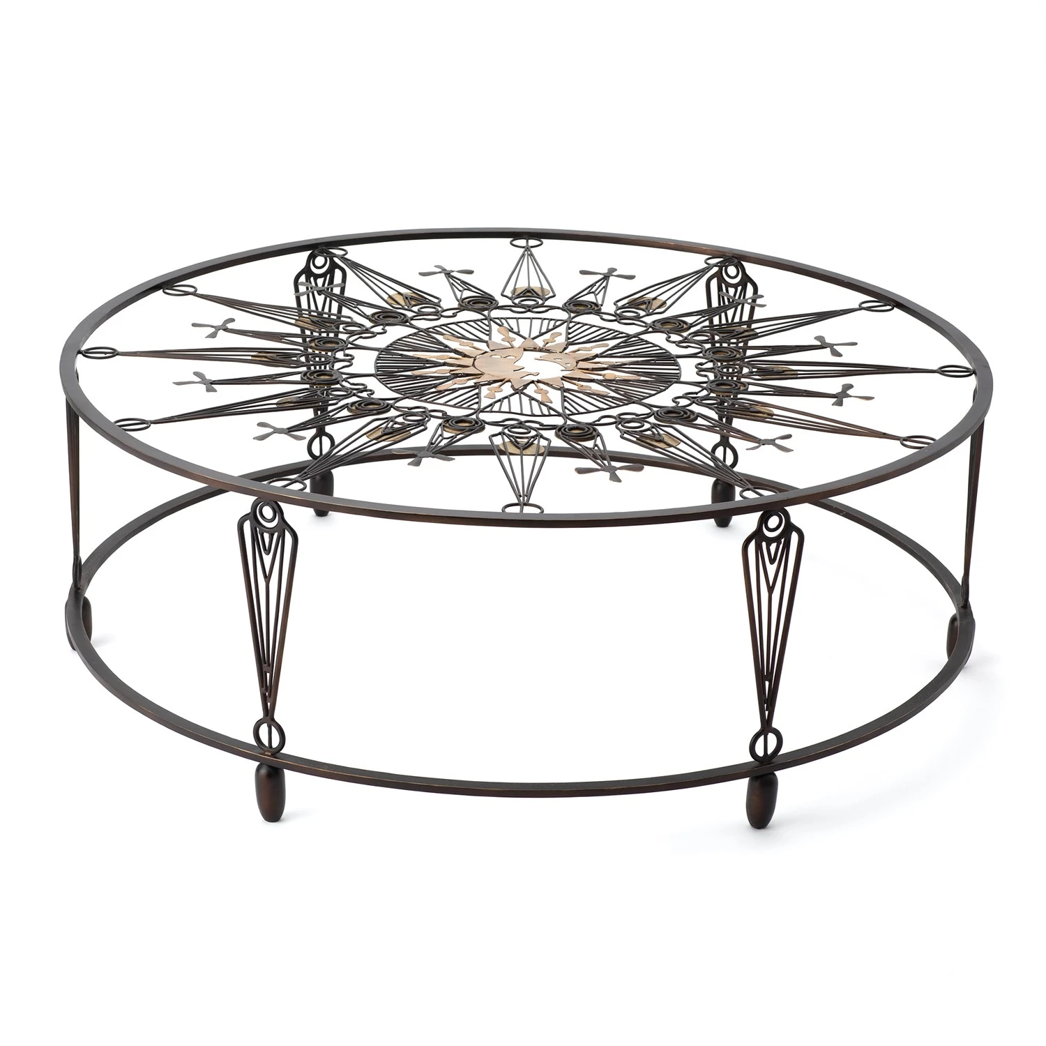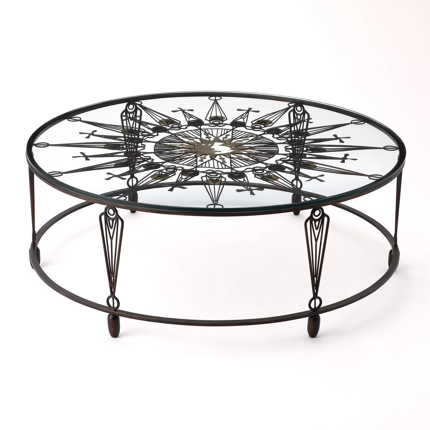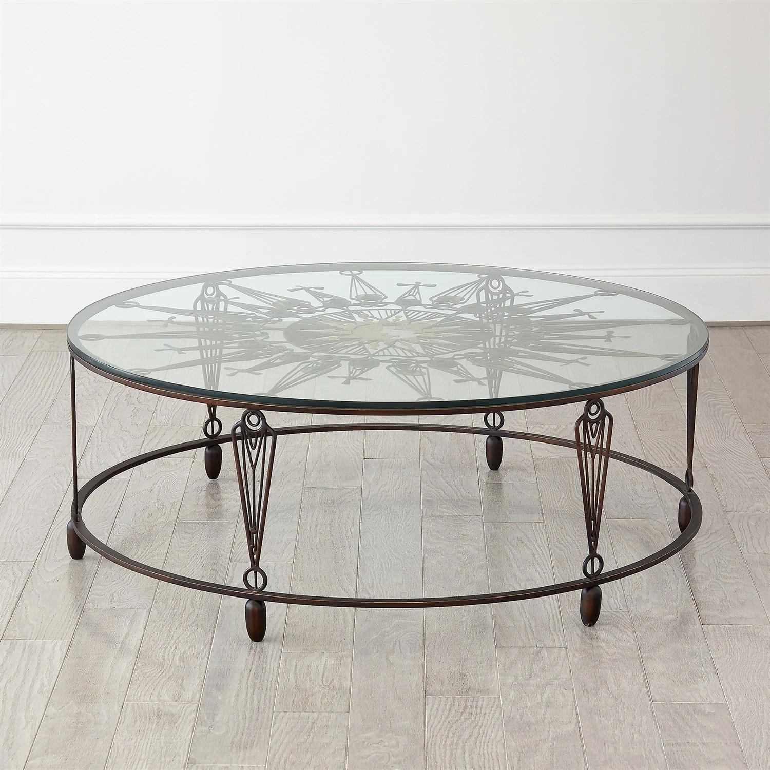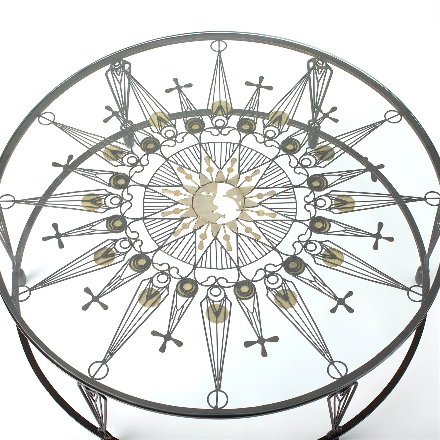 Our Soleil Collection references the magnificence of the sun and our solar system. Radial rays emanate from the center, creating a stylized sunburst effect. The Collection offers a cocktail table and wall mirror. Each sold separately.