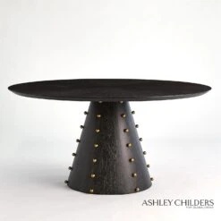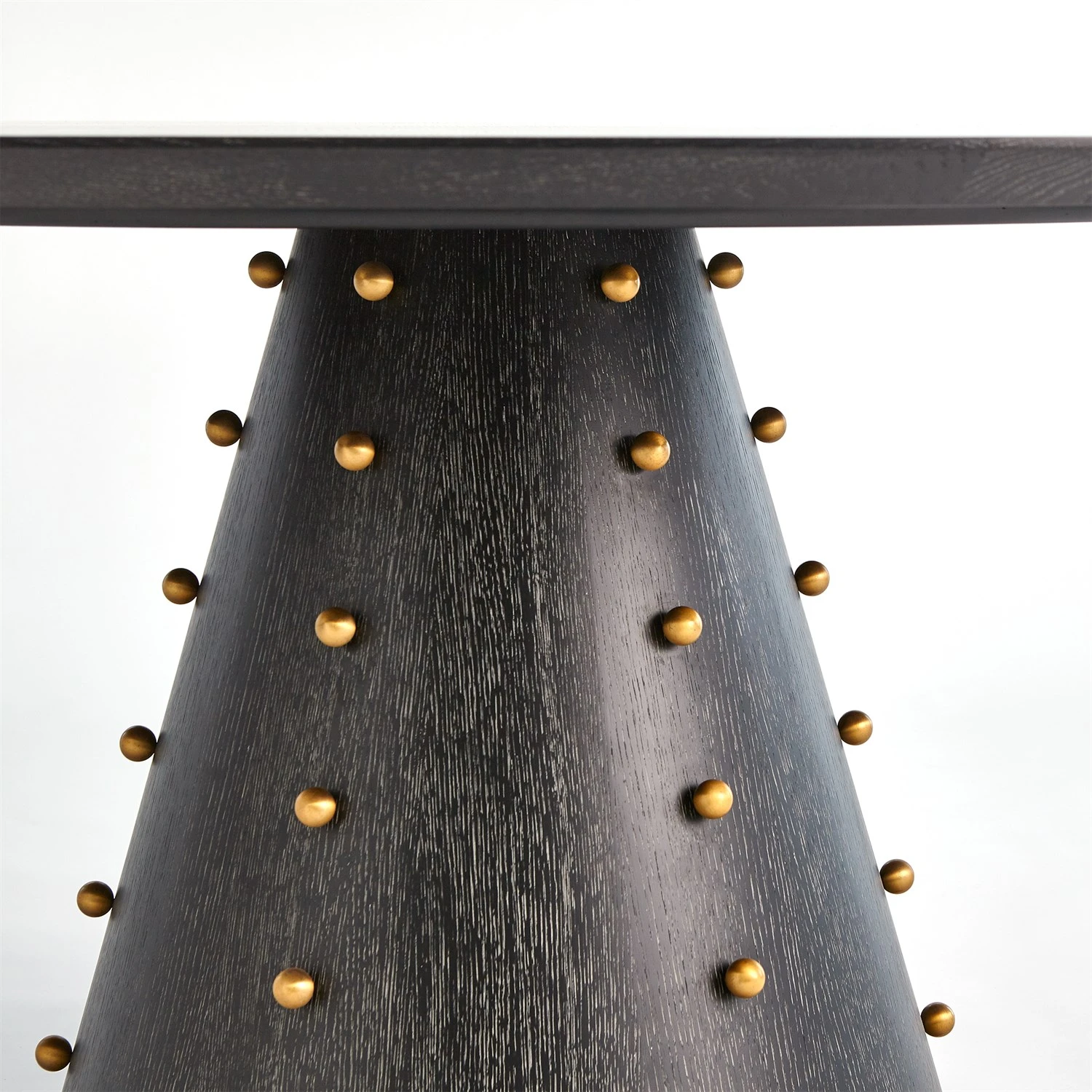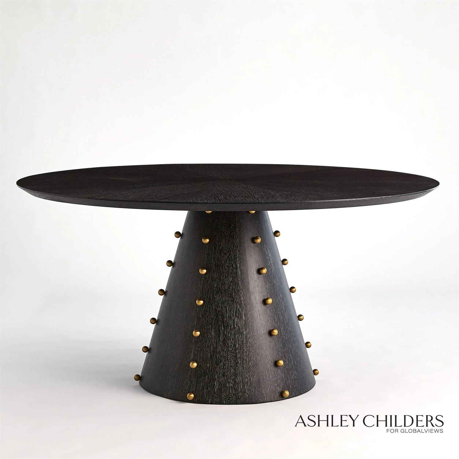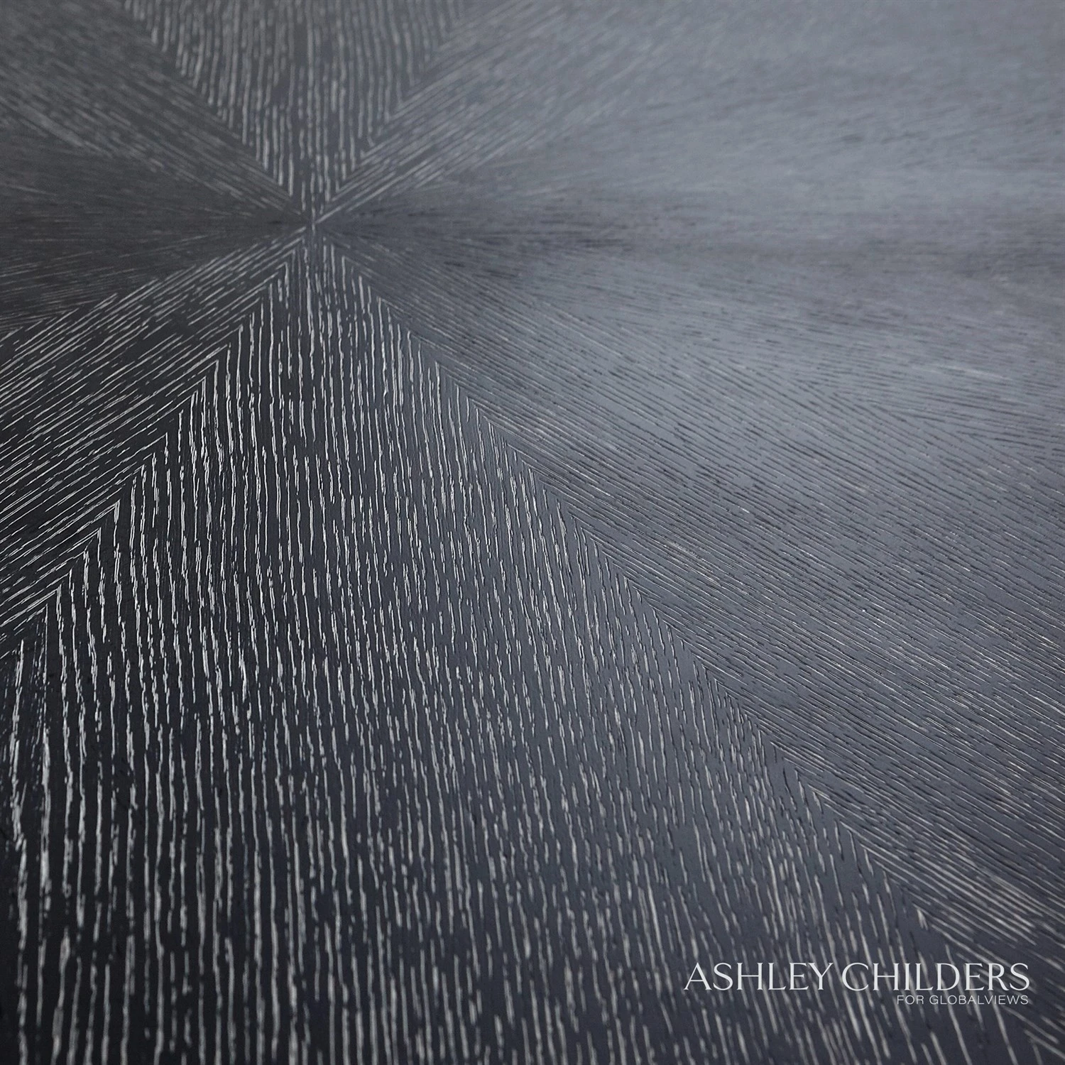 Drawing from her love of modern forms and chic material mixes, Ashley Childers designed our Spheres table collection to meld modern design with impeccable craftsmanship. Each table features hand-matched veneers in either our ebony cerused oak or white burl finishes. Hand cast brass ball details on the base finish off the unexpected and playful design.