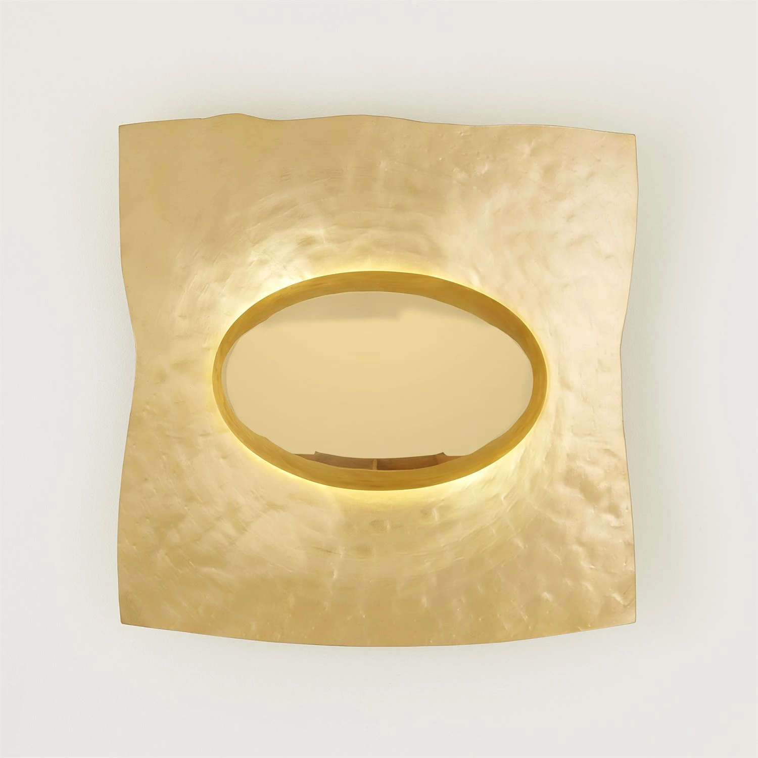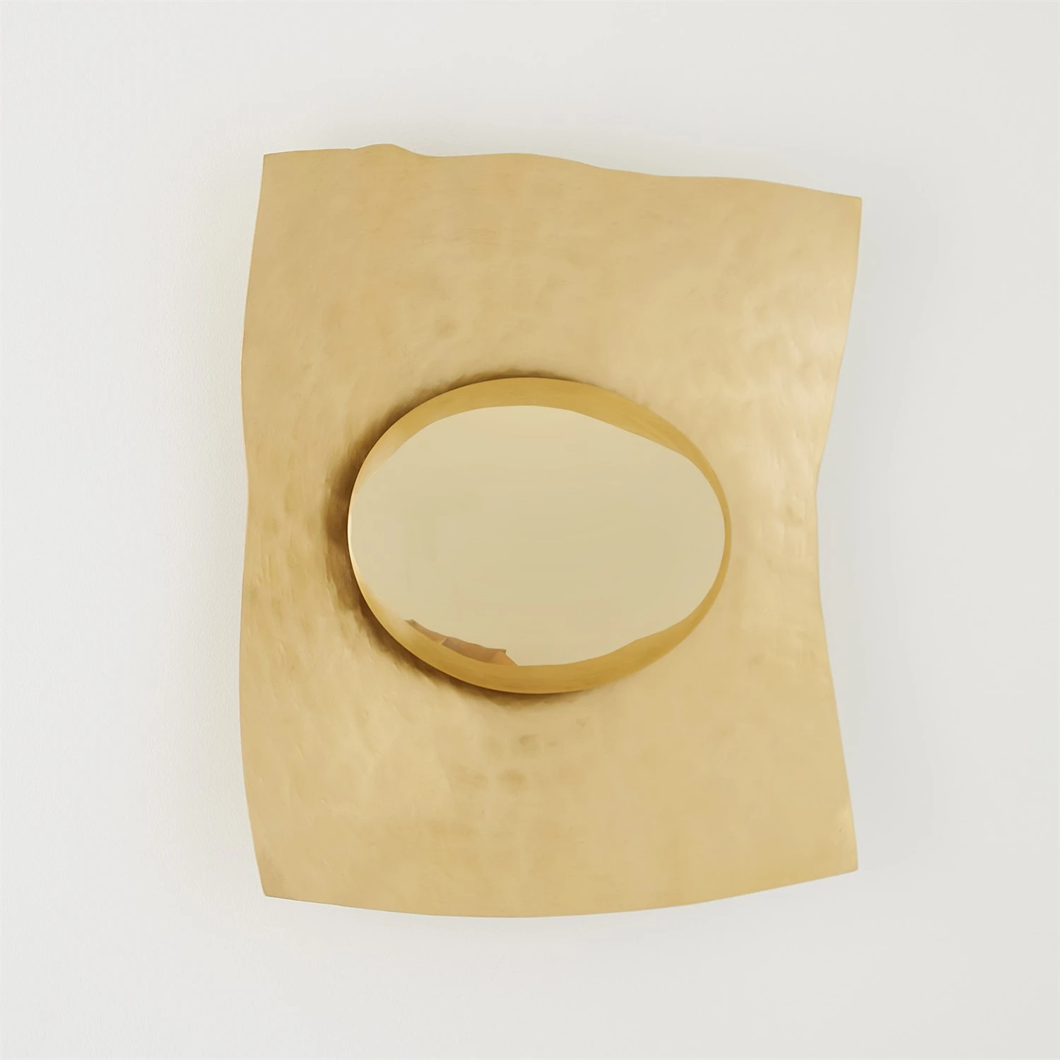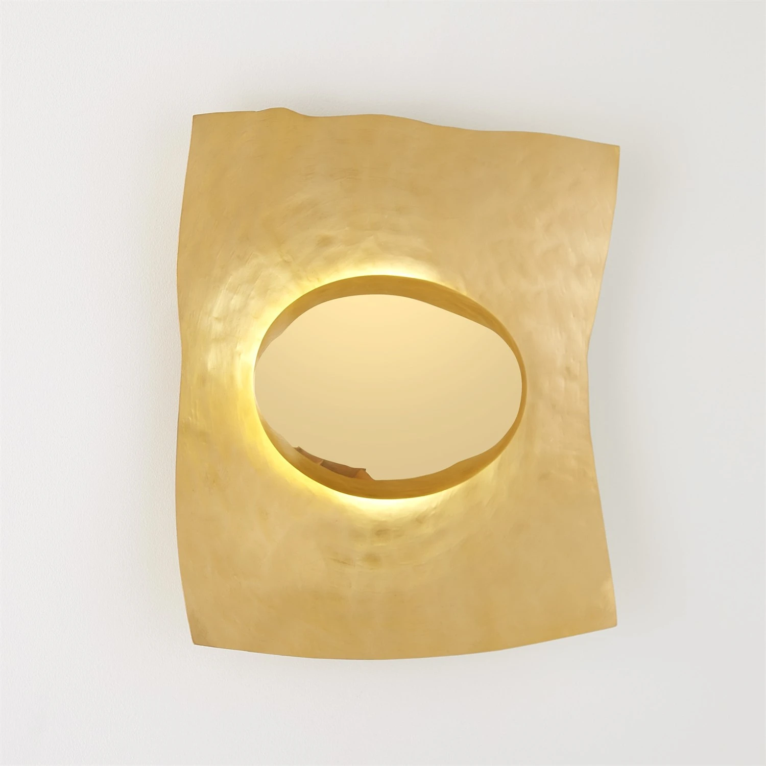 The Sunrise Wall Sconce is a stunning lighting fixture that is handcrafted from brass with a satin finish and iron with a shiny brass finish. When illuminated, the light cast onto the brass surface beautifully resembles the soft, warm glow of early morning sunrises, creating an inviting and captivating atmosphere.