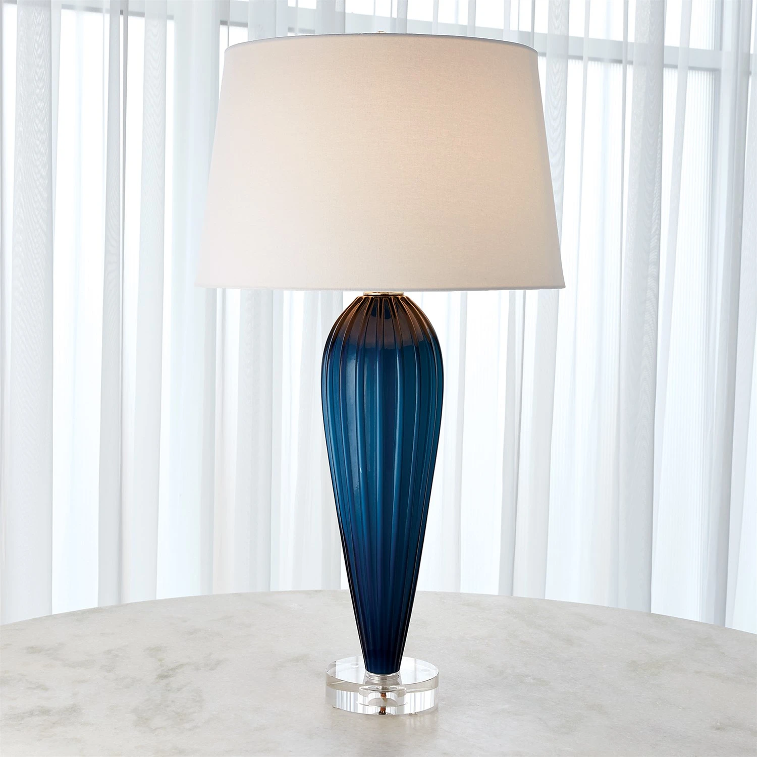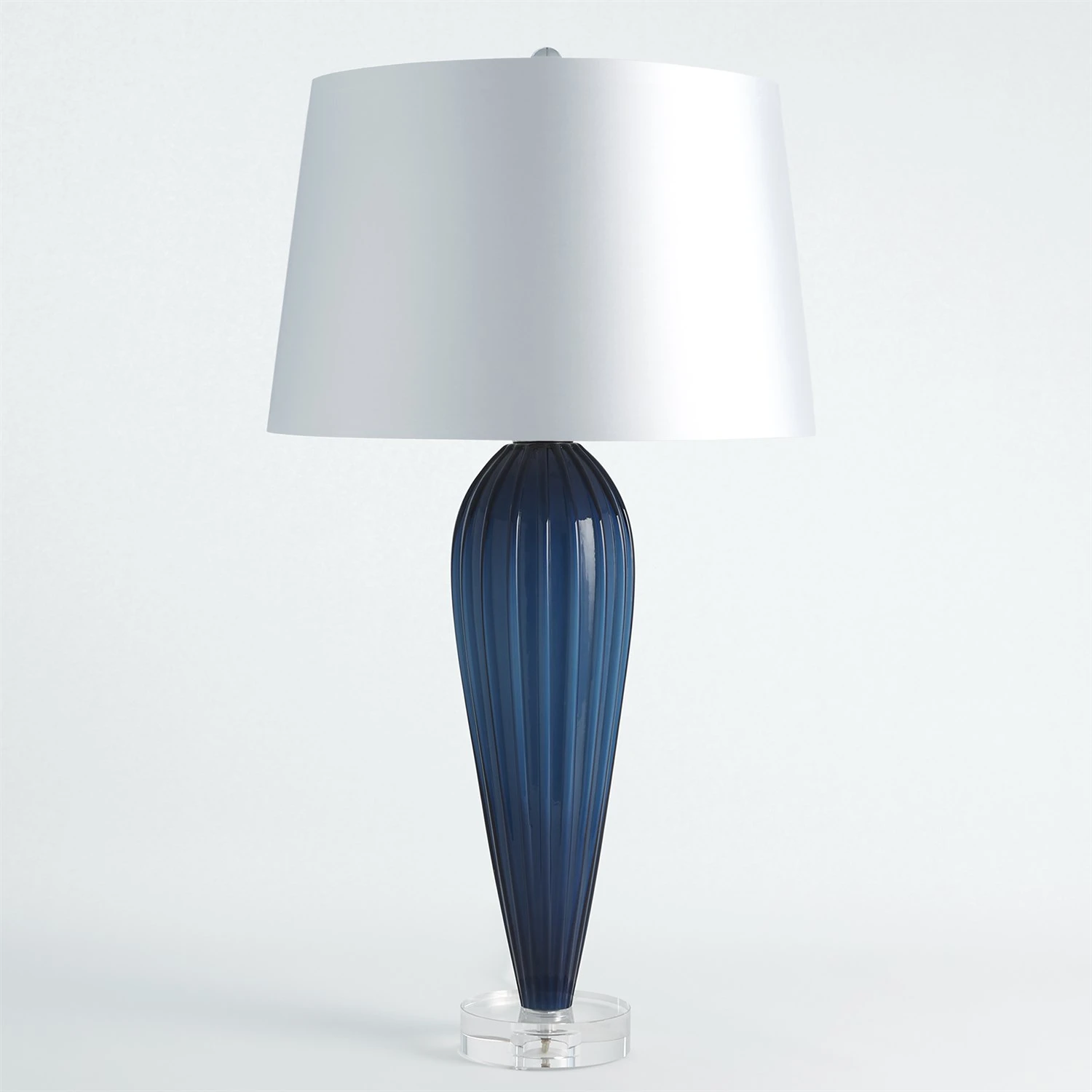 The Teardrop Glass Lamp is mold formed glass on a crystal base. Holds one 100 Watt 3 Way “A” bulb and has a socket switch.