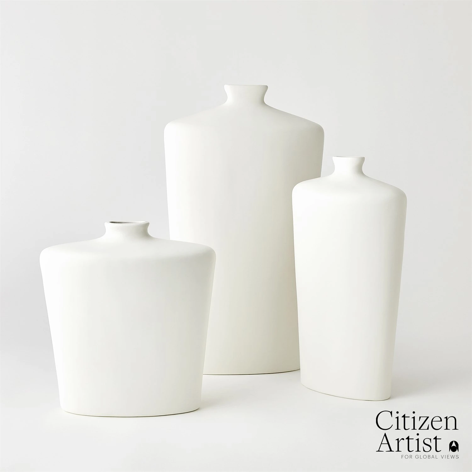 While the Terzo Vases exemplify the rule of three–that a trio makes a satisfying grouping–these simple forms are sublimely elegant alone or grouped. Handcrafted from Italian slip-molded ceramic with a classic matte white finish.