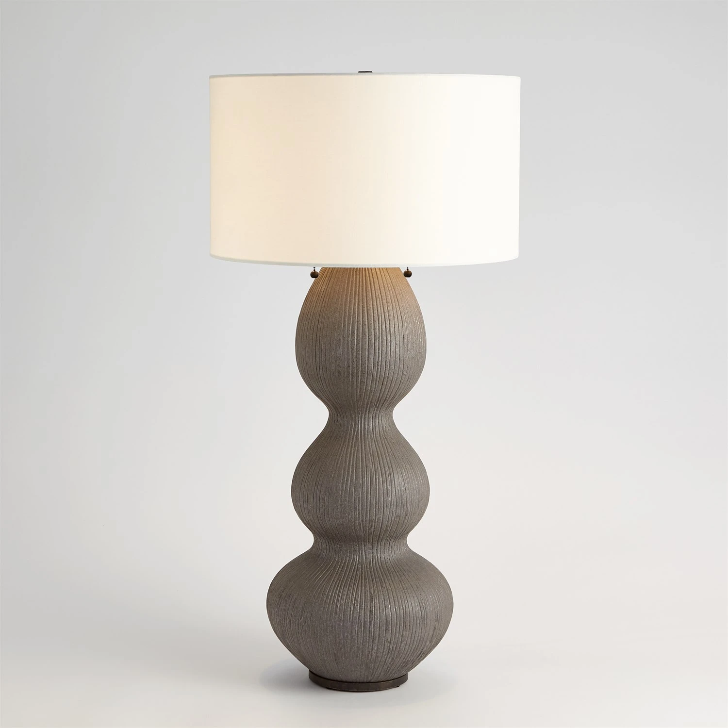 The Torch Table Lamp is made of earthenware by Portuguese artisans. Custom wired with “S” cluster socket and two chain pulls. Hardback fabric shade.