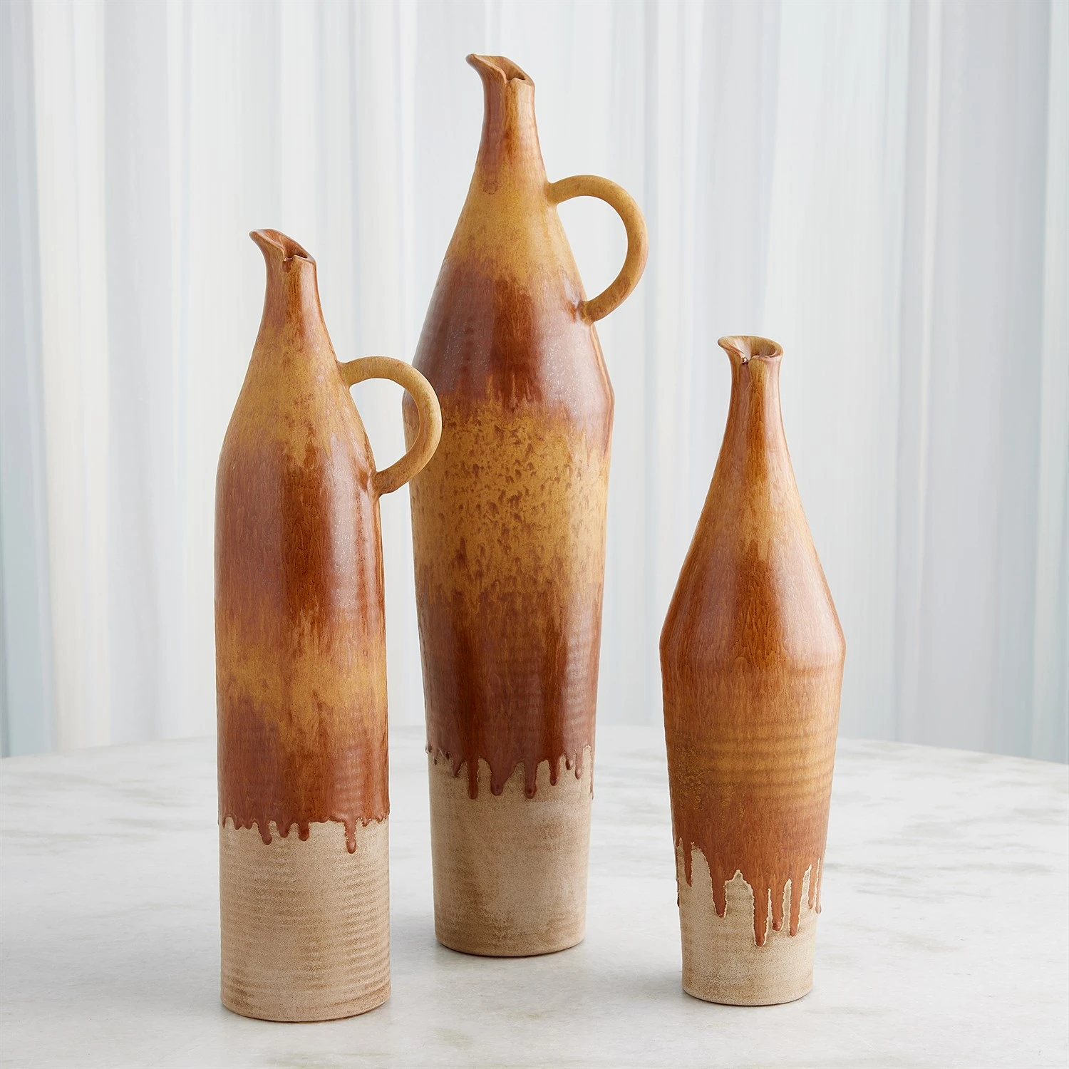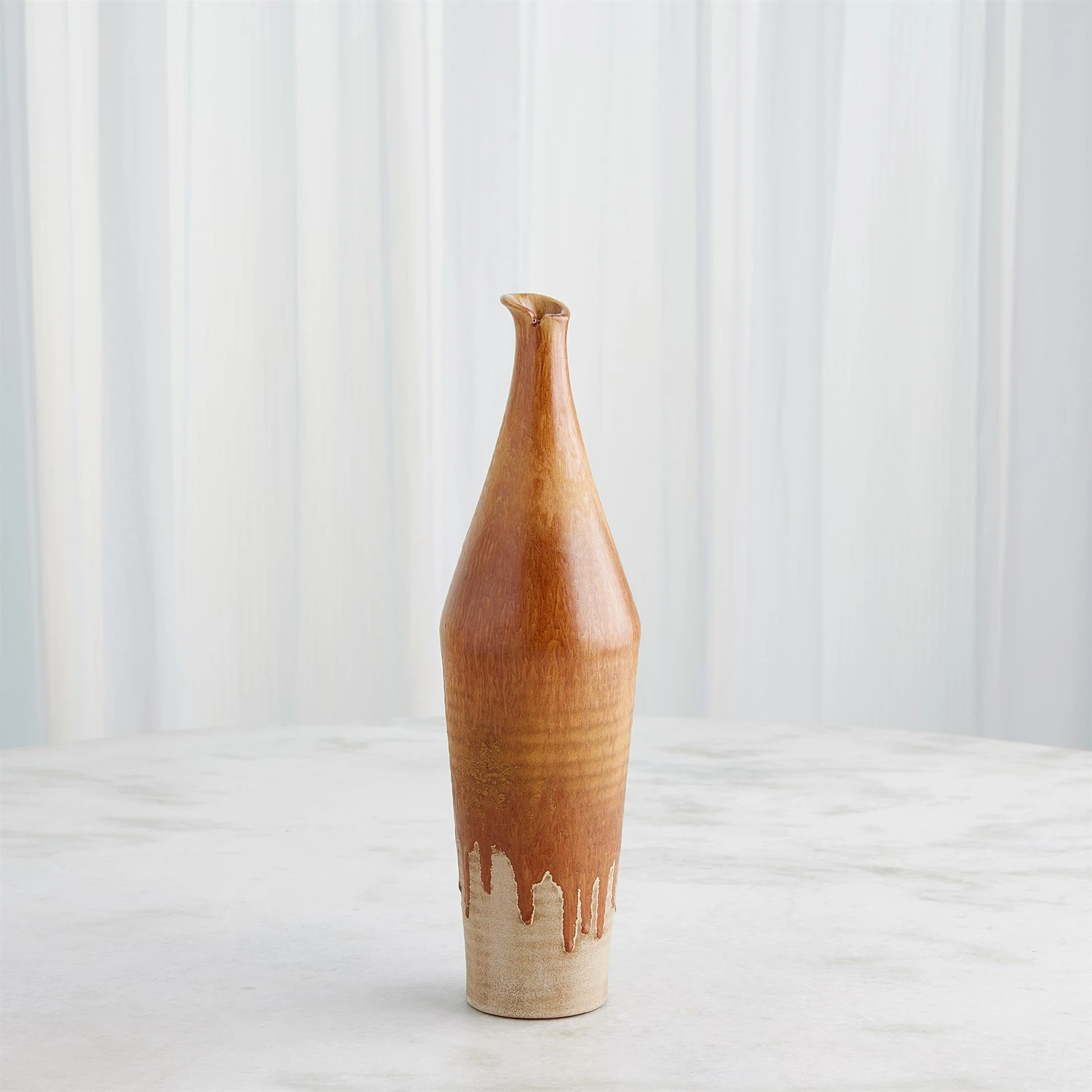 Beautifully crafted by Italian artisans, the Vintage Bottles are slip-molded ceramic and feature a hand-dipped golden reactive glaze. With the higher heat boiling process, the glaze reaction can never be predicted resulting in unique one-of-a-kind pieces of art.