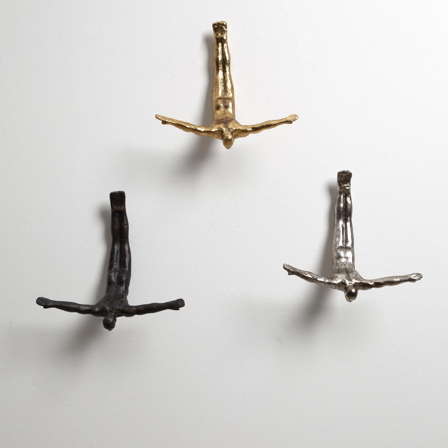 The strength and grace of the human form is beautifully captured in the iron Wall Diver – floating effortlessly and confidently towards his goal. Cover an entire wall to create a stunning design splash, or purpose a single figure as a holder for jewelry or guest towels. In any environment, the Wall Diver adds a dynamic sculptural element that will always score a perfect ten!