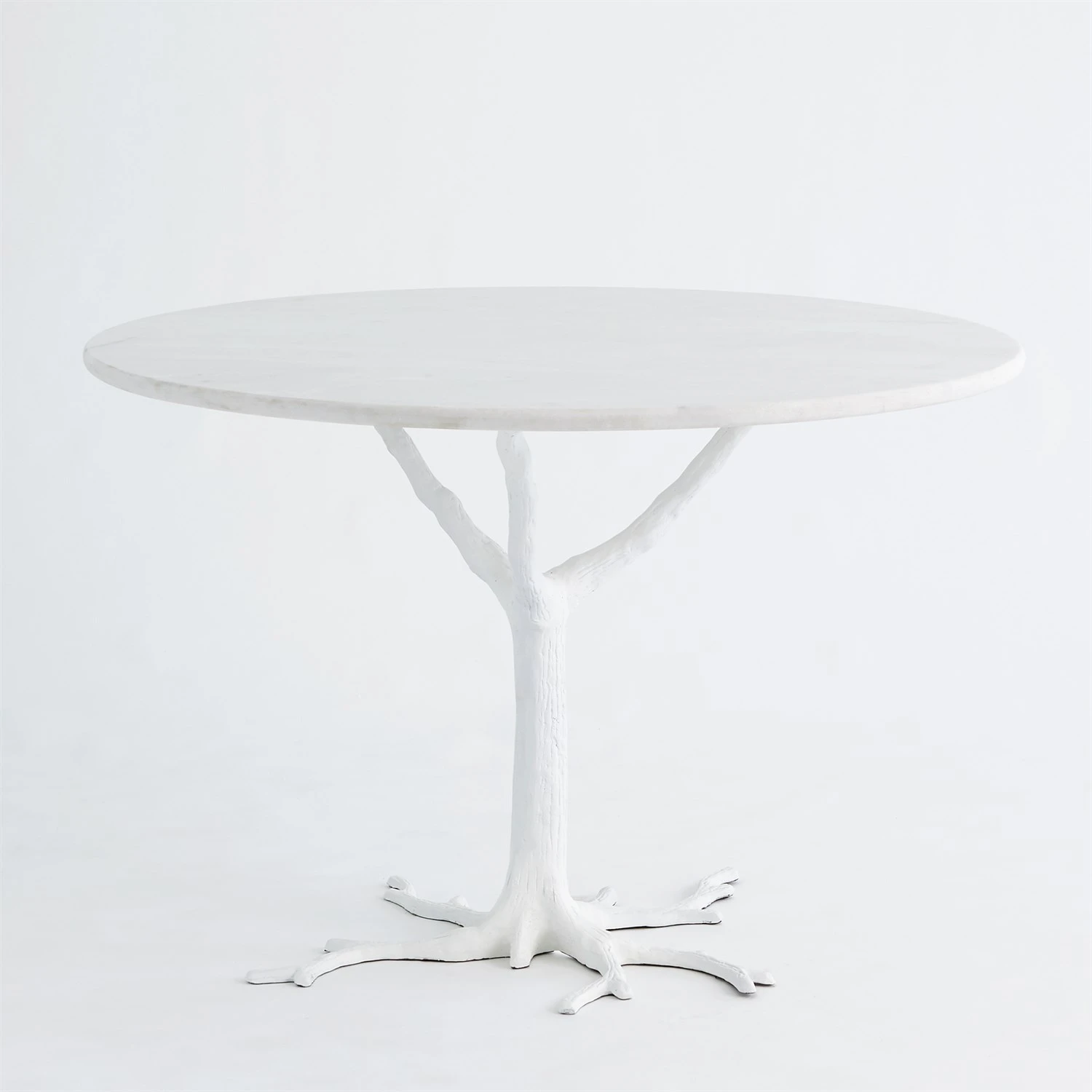 Bring the wonderful woodlands into your home with our Faux Bois Dining Table. The white iron tree base reaches up to the matching white marble table top.