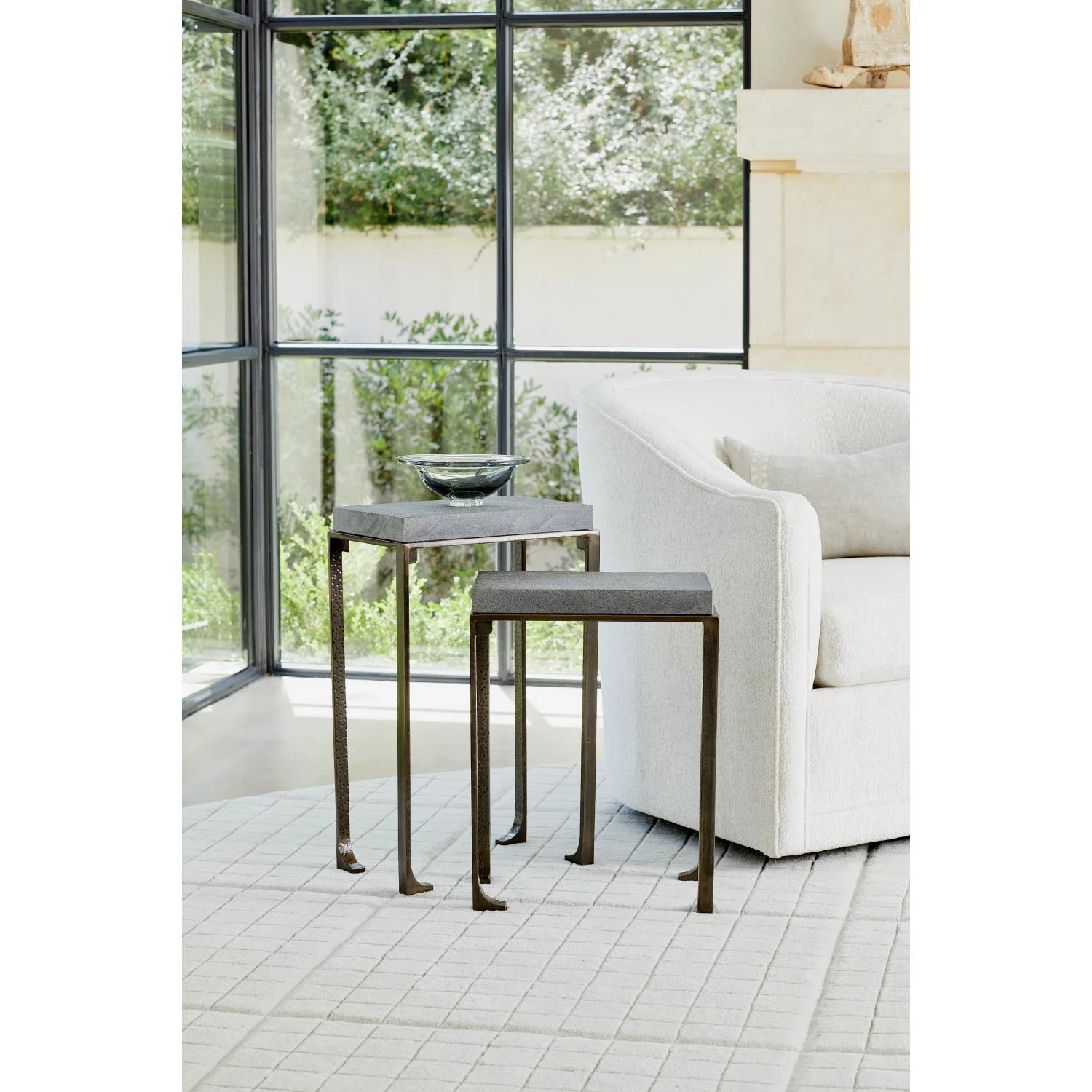 Need a little zen in your space? Our Zen Side Table features a bronze finished iron frame and a unique flamed granite top. Available in two sizes.